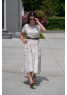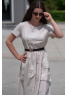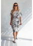 Dámské elegantní šaty s krátkým rukávem smetanové s potiskem
