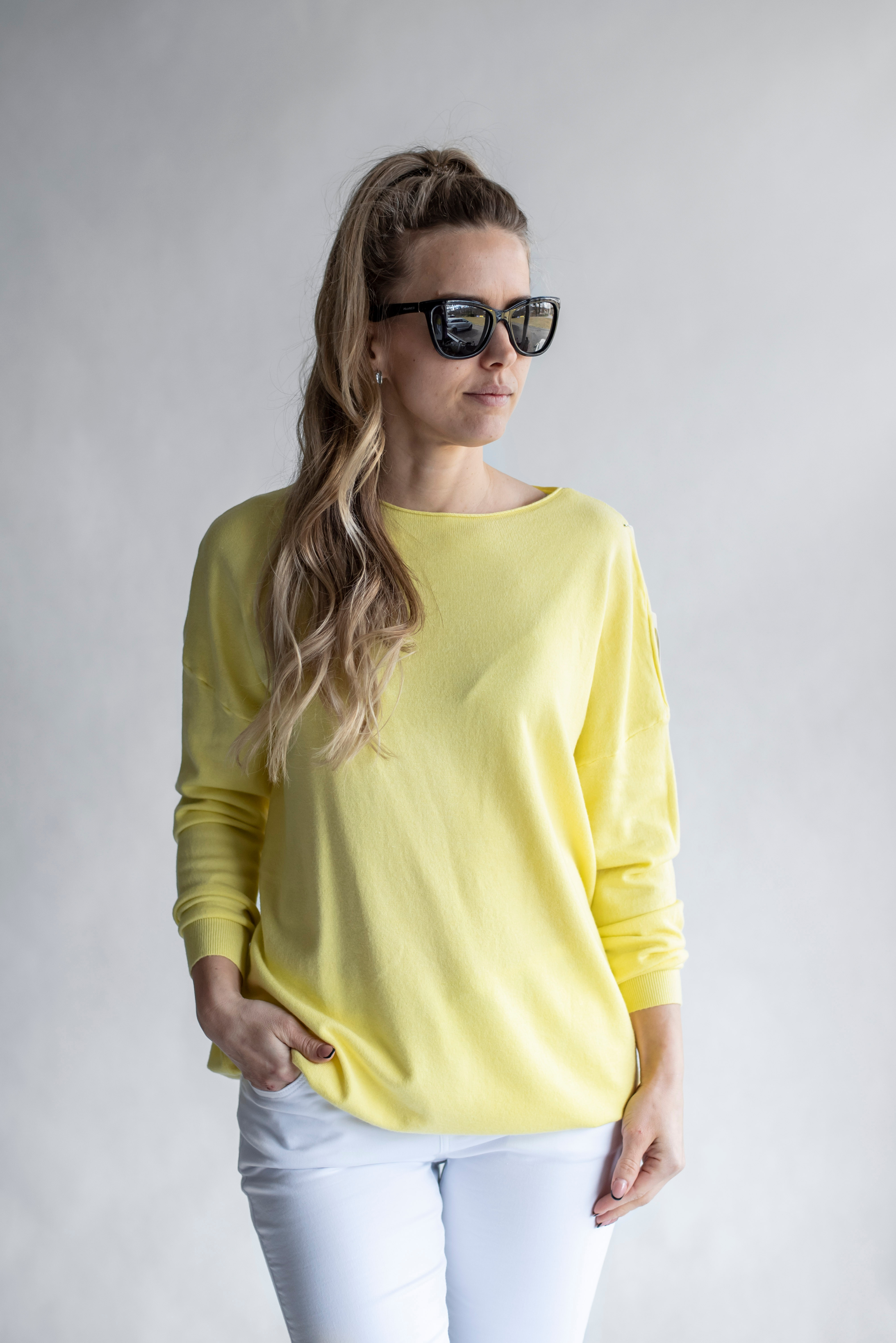 Módní svetřík volnějšího střihu