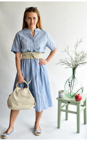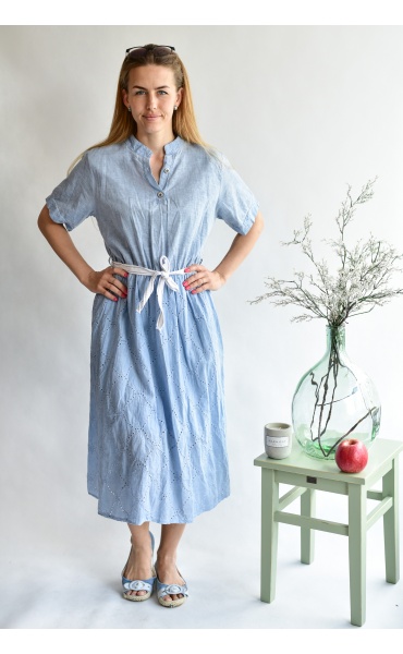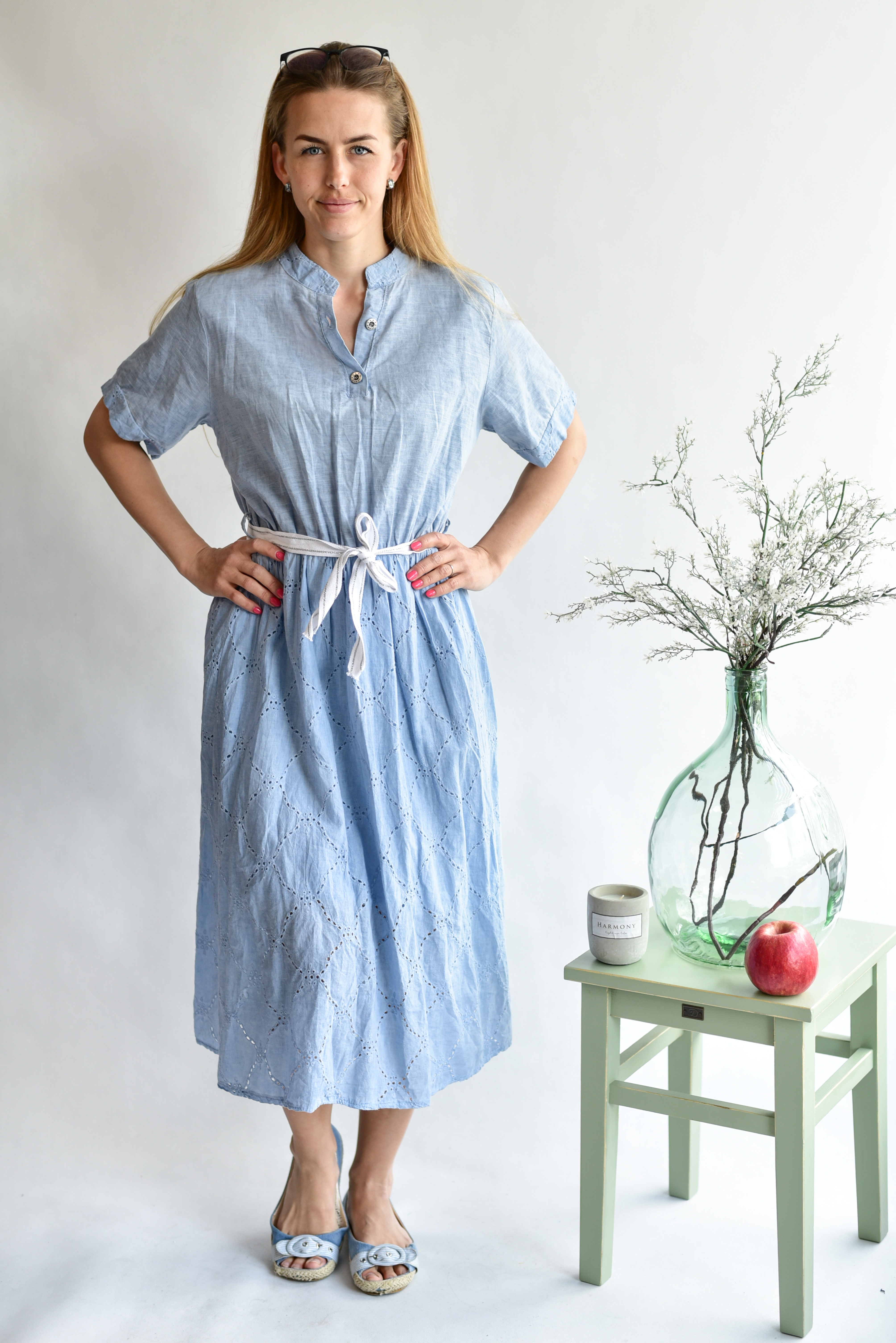 Módní batikované dlouhé dámské košilové šaty. Vyrobeno v Itálii