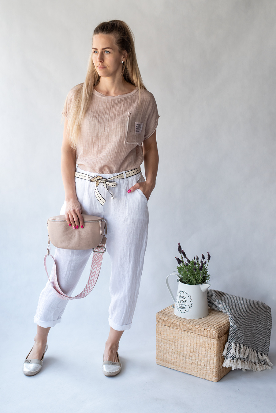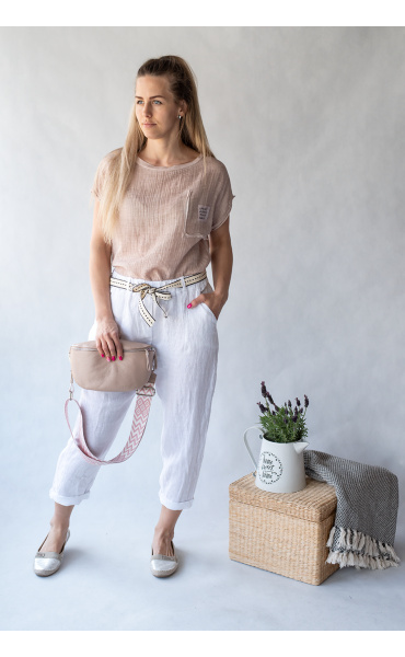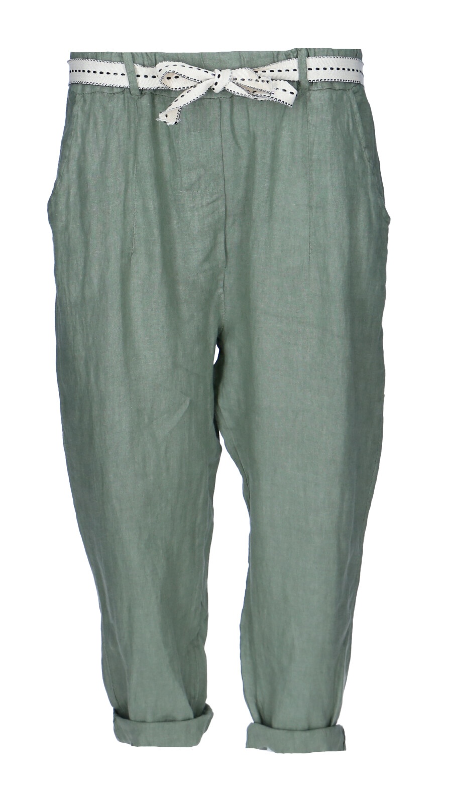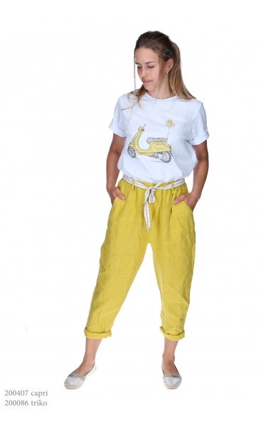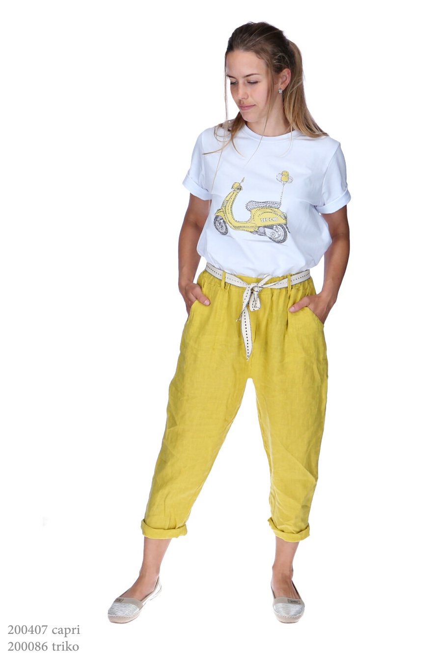 Módní lněné velice příjemné kalhoty typu capri . V pase do gumy ,rozměr šířky max 49cm