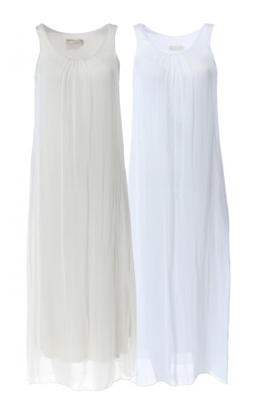 Dámské dlouhé hedvábné šaty bez rukávů.