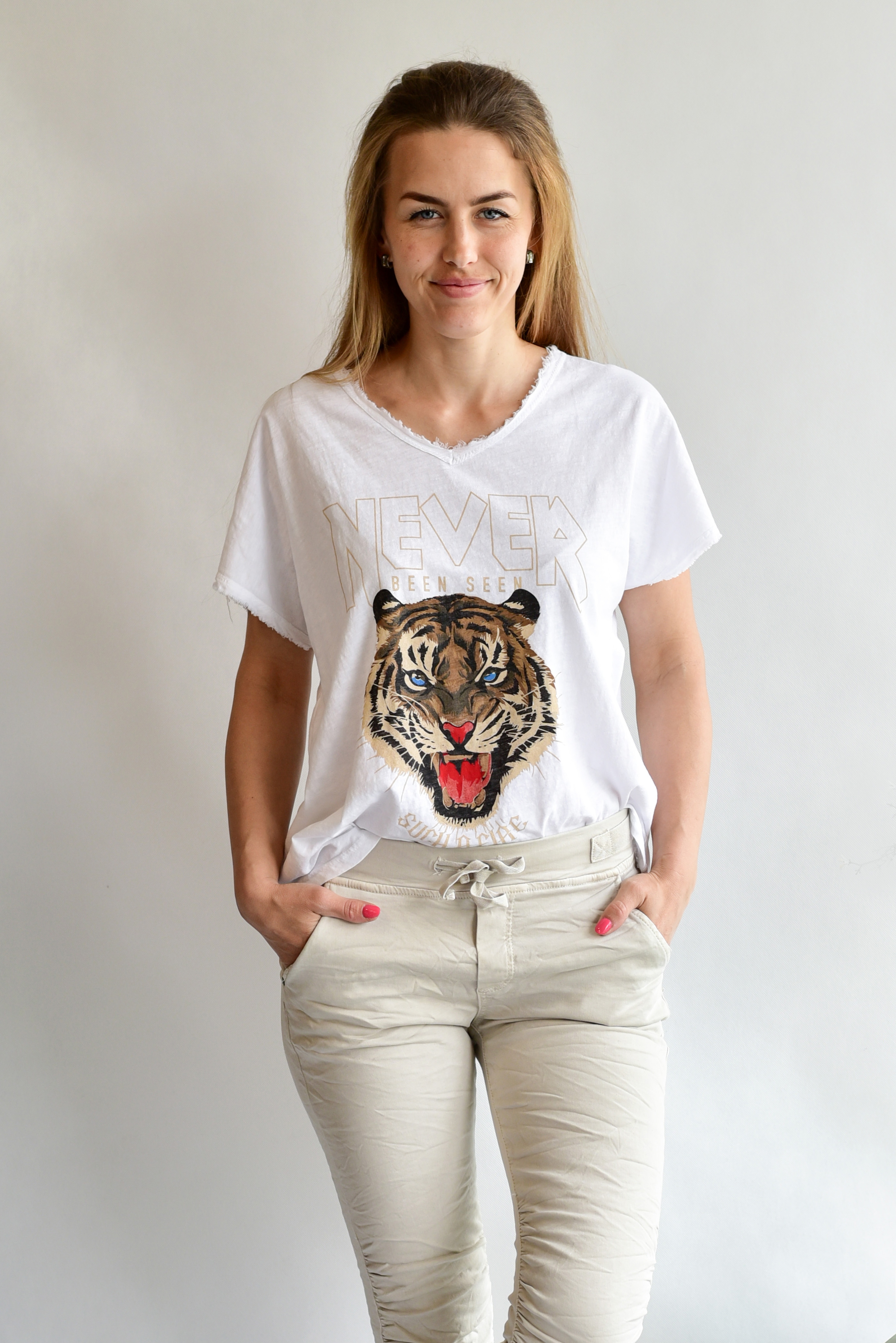 Triko s dlouhým rukávem, stylovým potiskem. Vyrobeno v Itálii