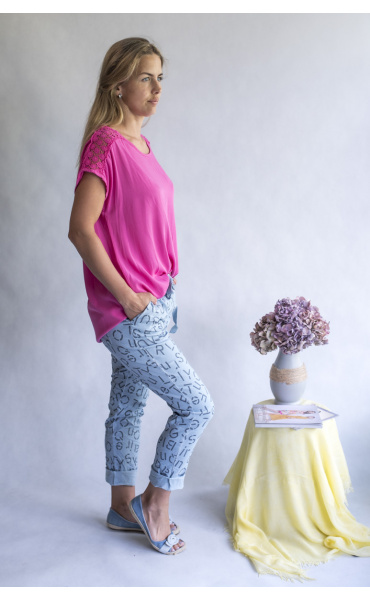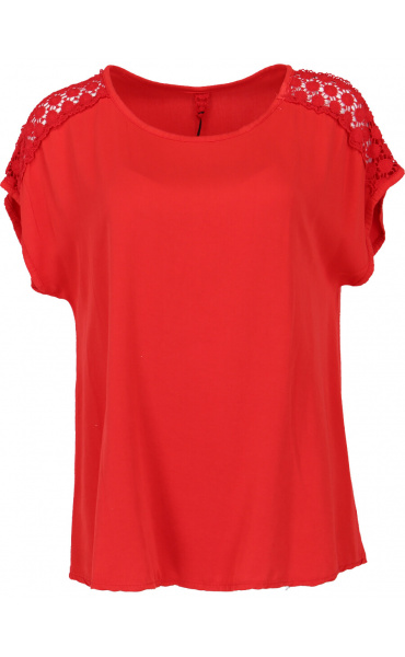 Triko s krátkým rukávem s krajkovou aplikací na rameni