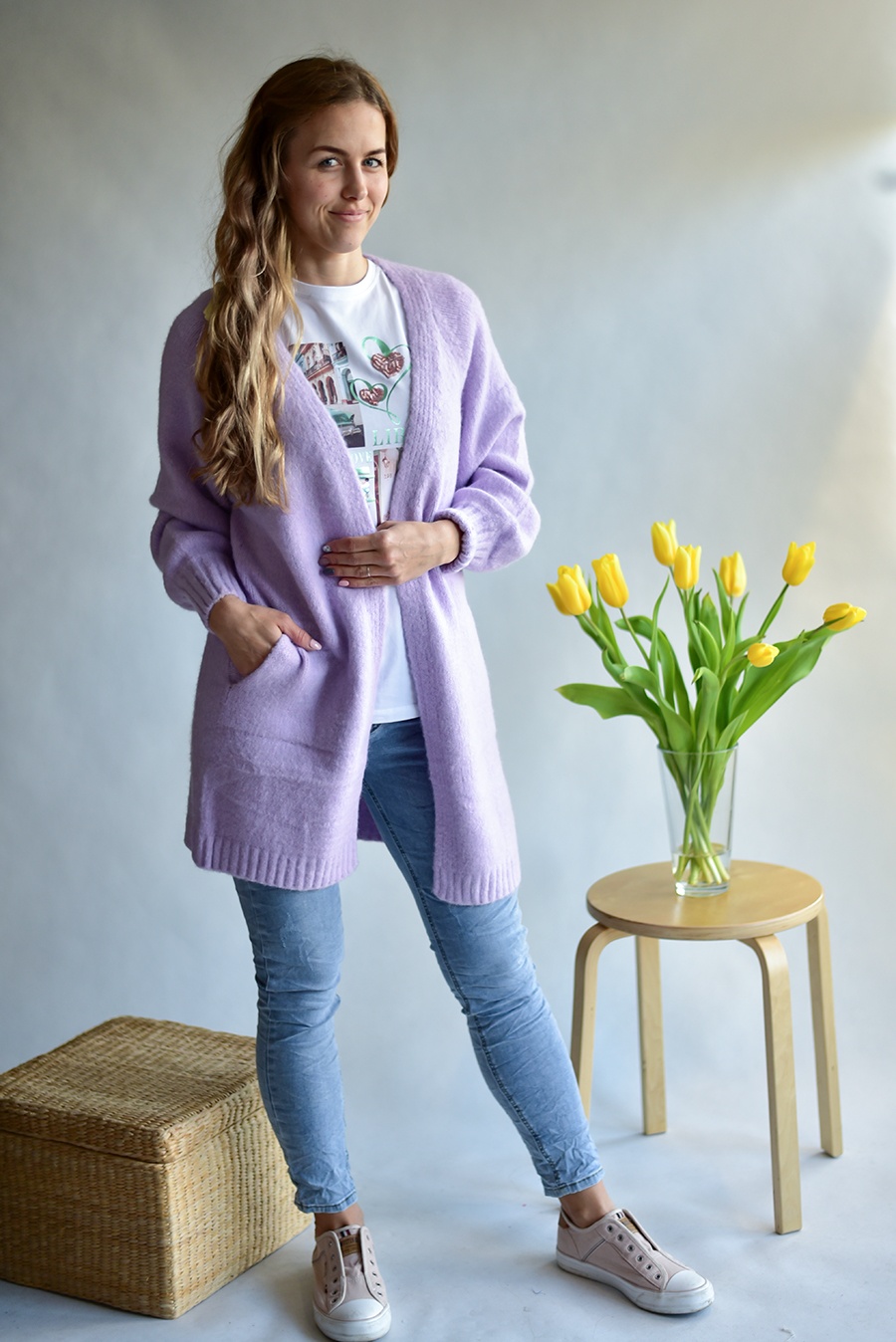 MódnÍ úpletový kabátek/kardigan s kapucí