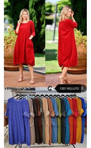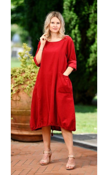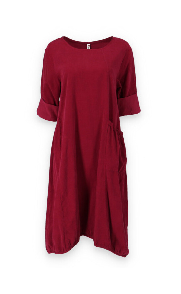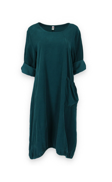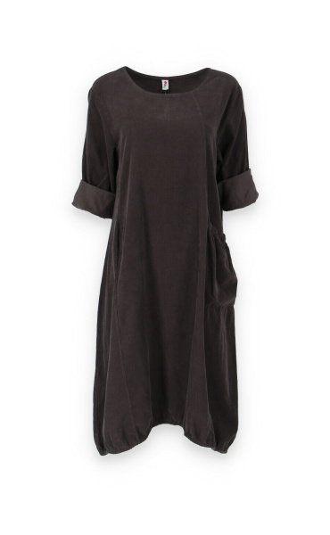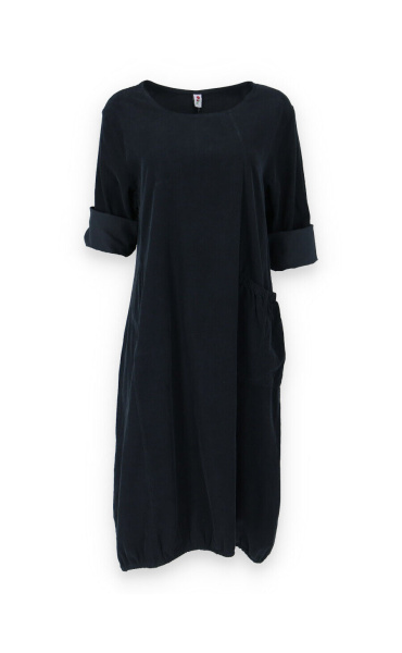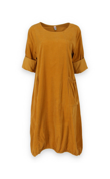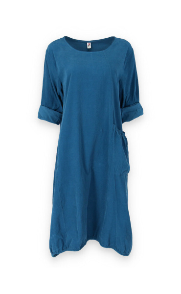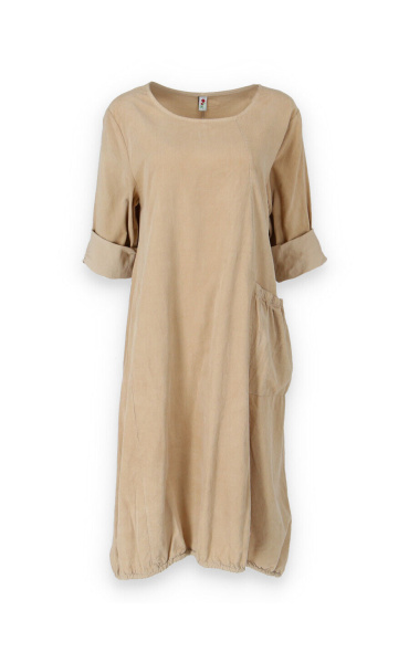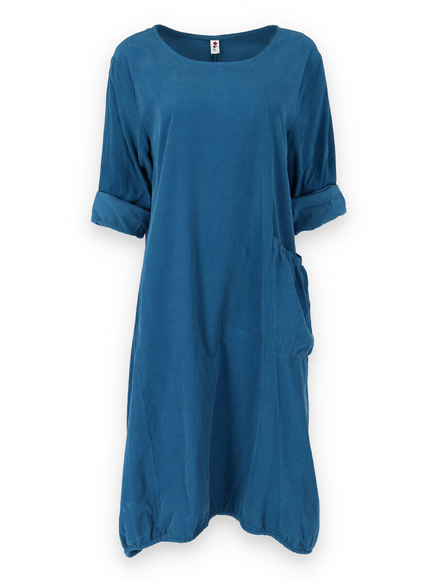 Bavlněná šatovka z bavlněného manšestru s dlouhým rukávem. Šatovka má na přední straně našitou kapsu a ve spodní části regulaci na utažení.