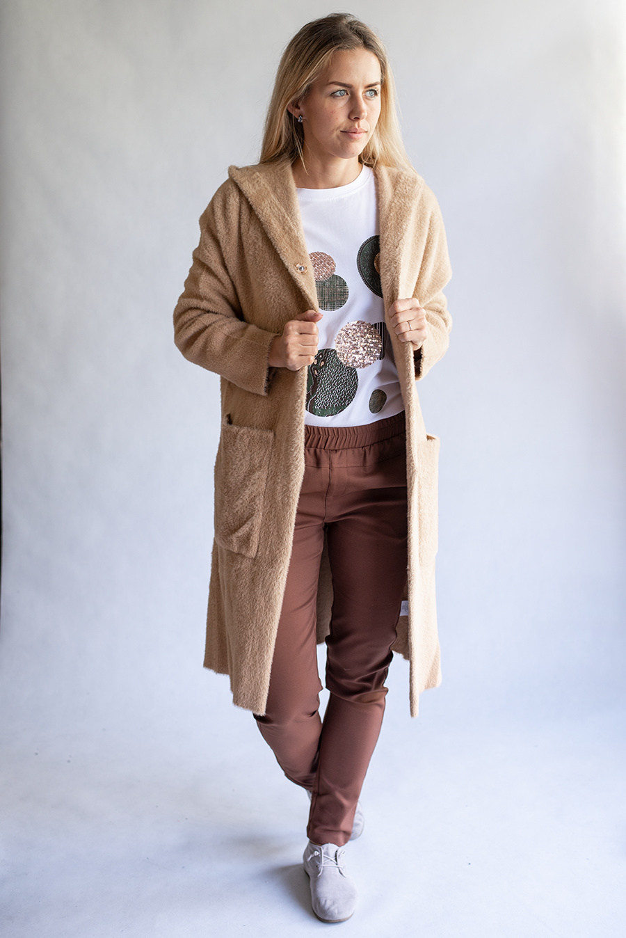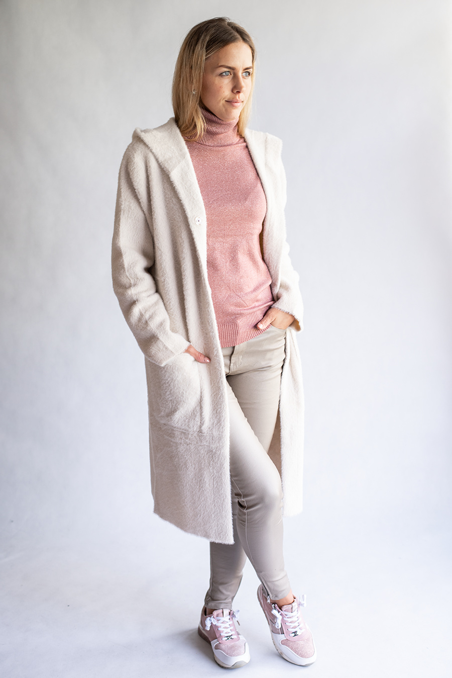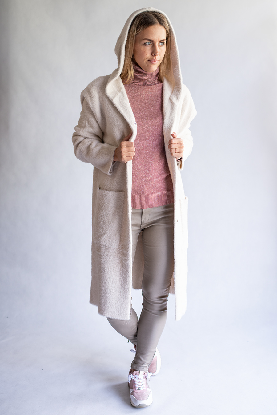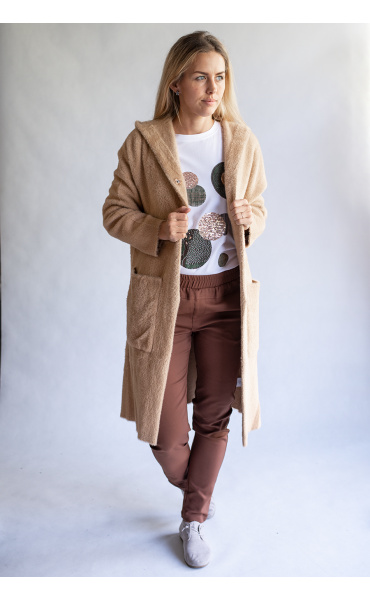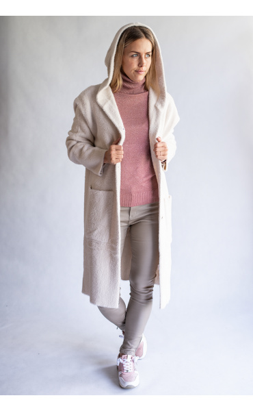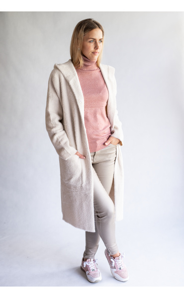 Módní úpletový kabátek/kardigan s kapucí, dovoz Itálie