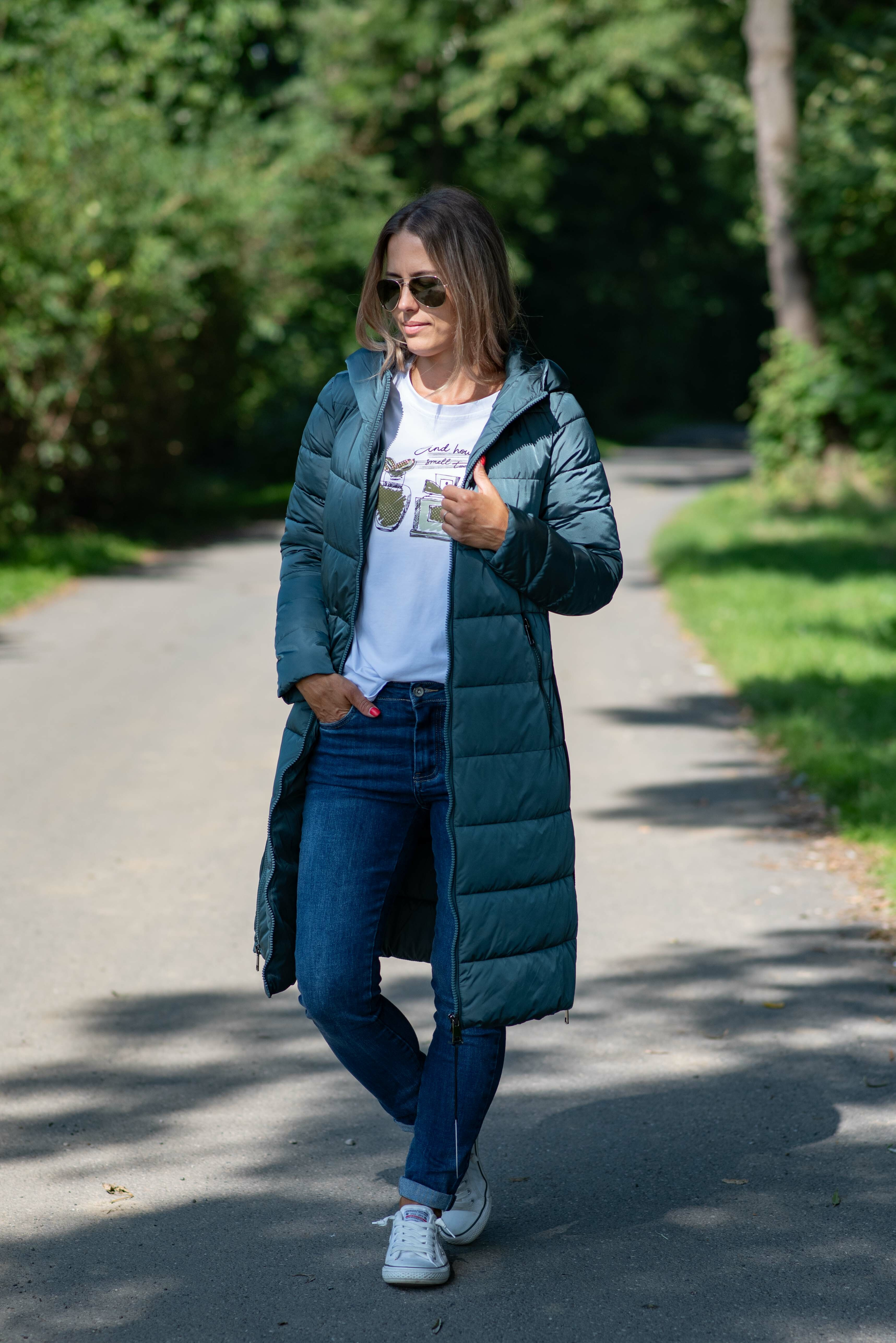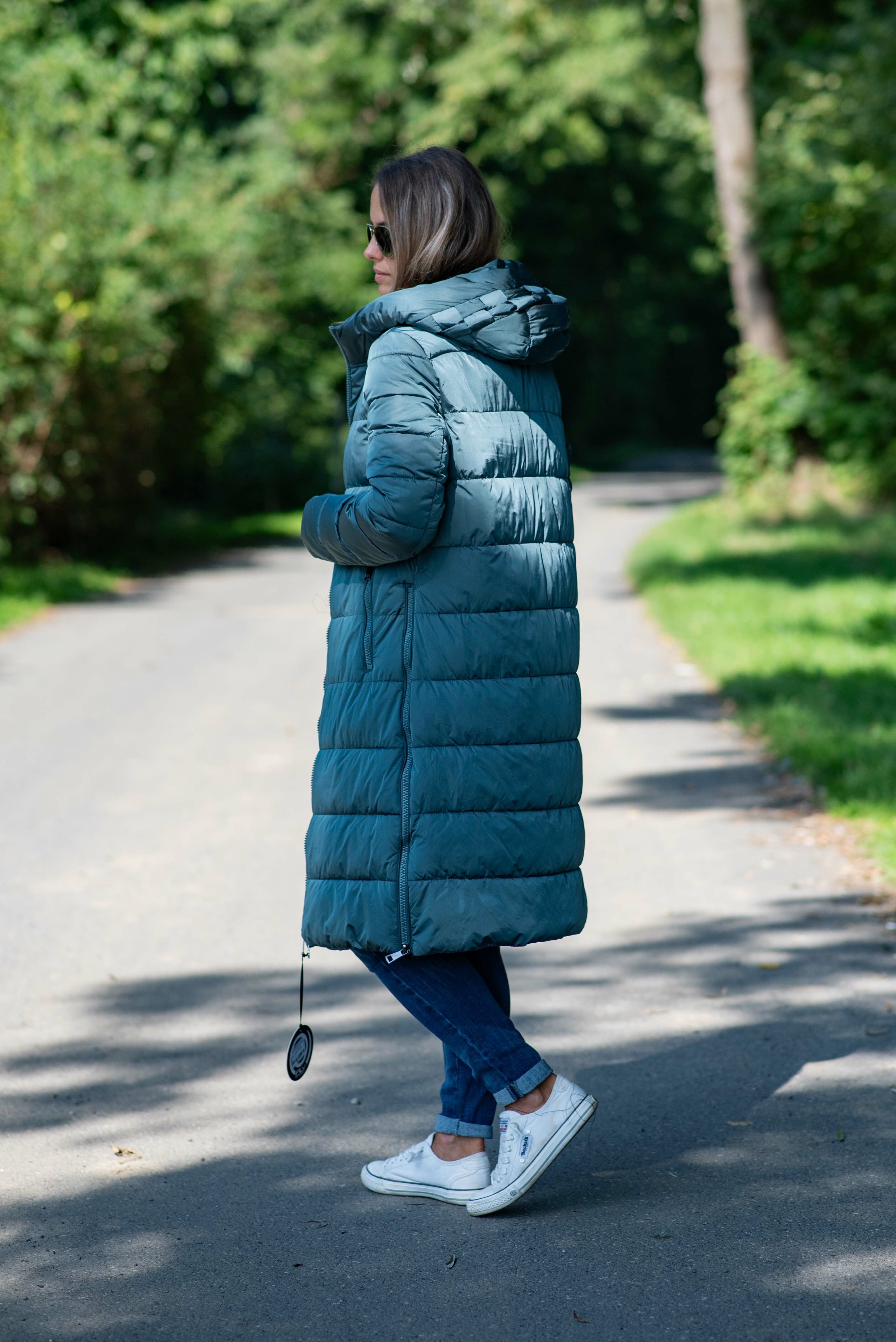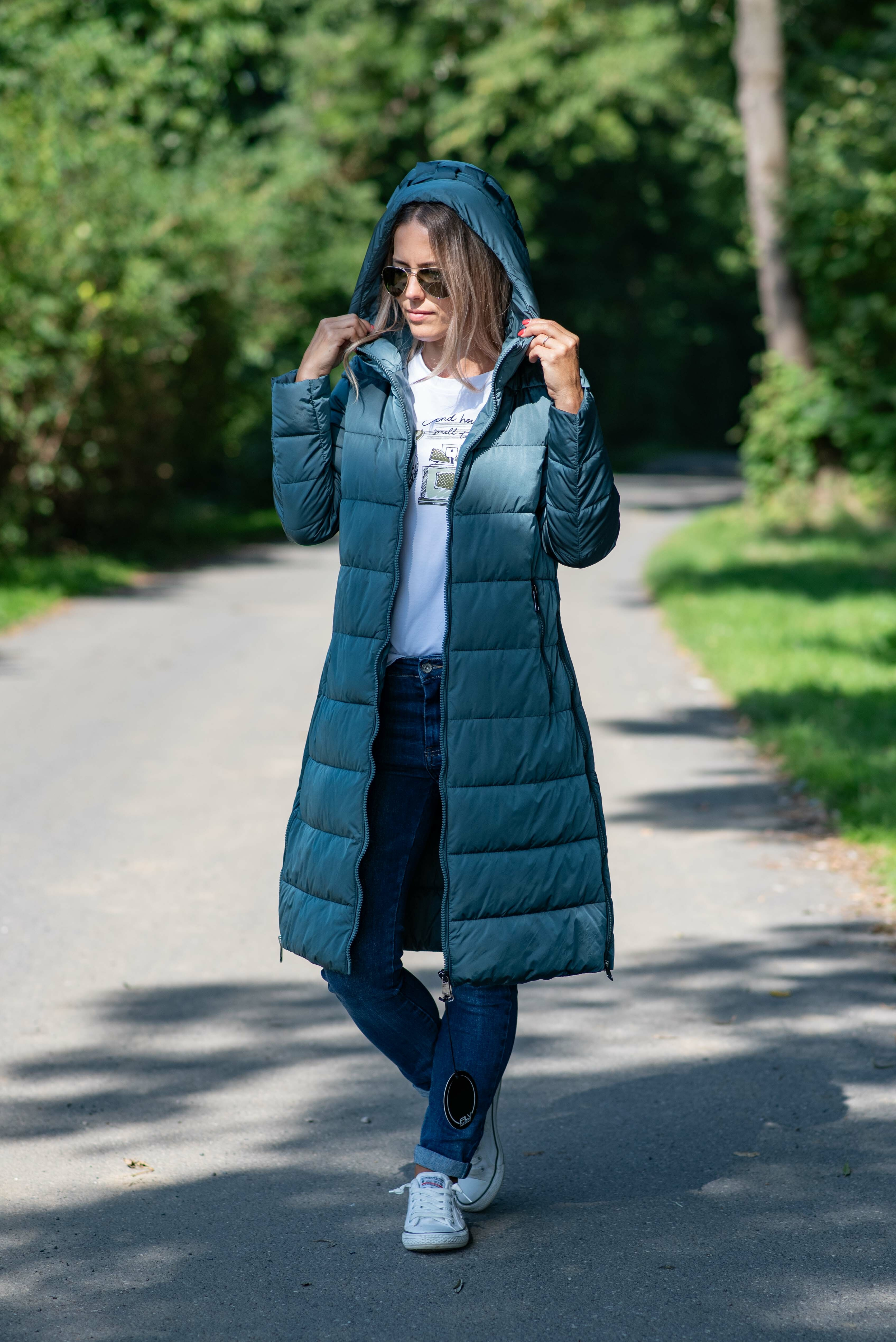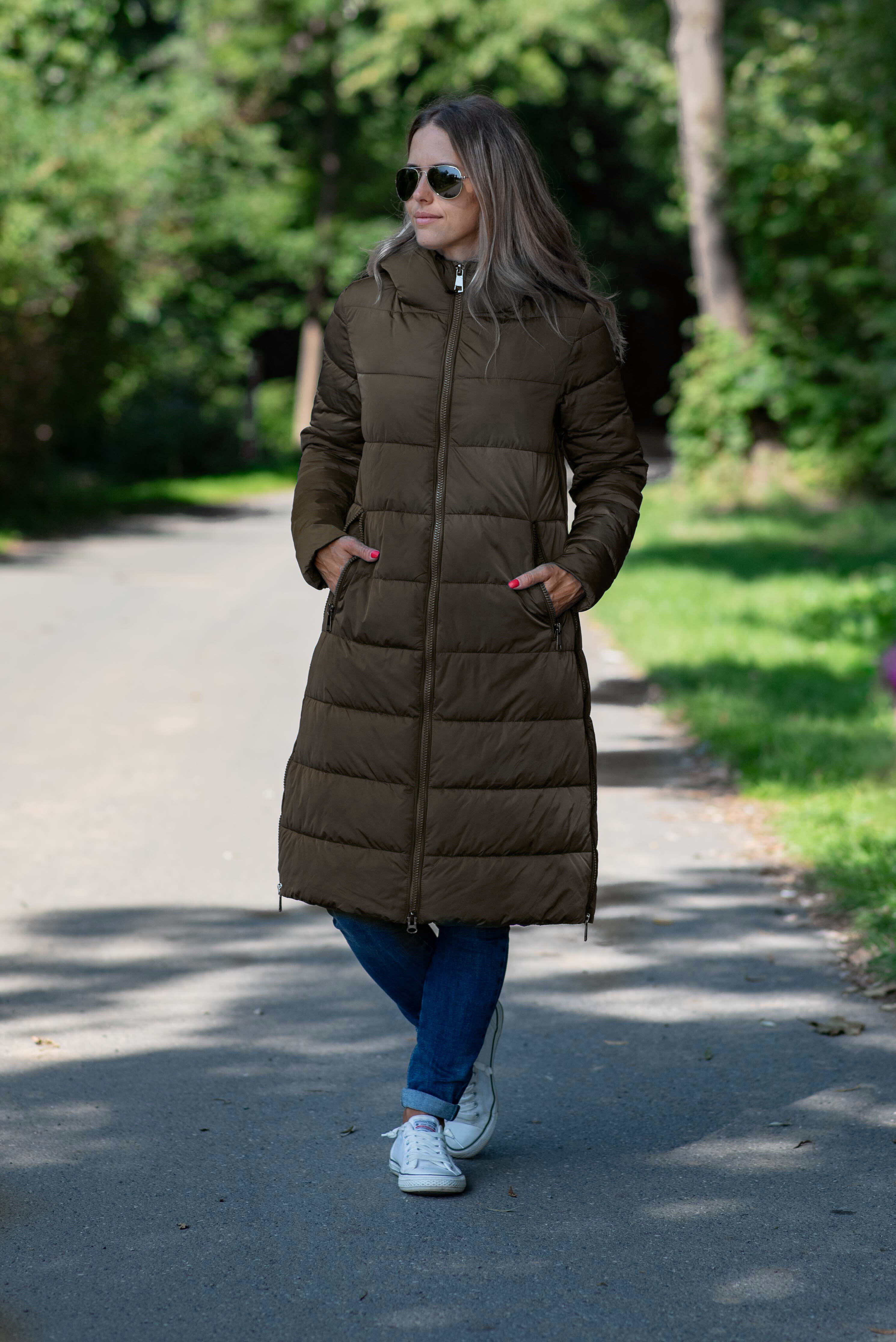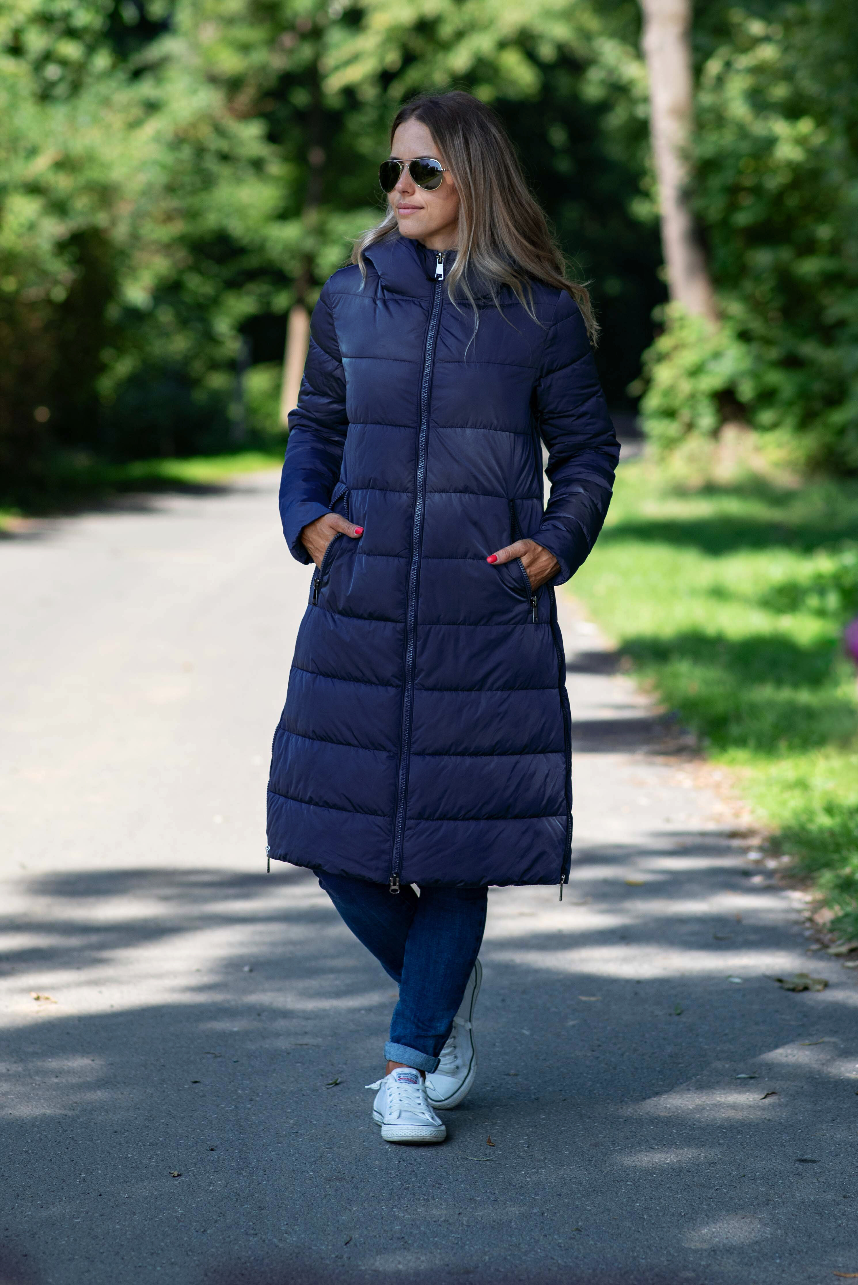 Módní delší zimní bunda kapucí , boční zipy. Itálie