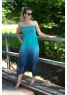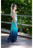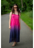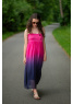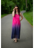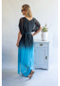 Letní dlouhé hedvábné šaty s krátkým rukávem ombré