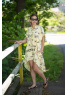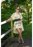 Letní hedvábné šaty s krátkým rukávem, Carmen střih