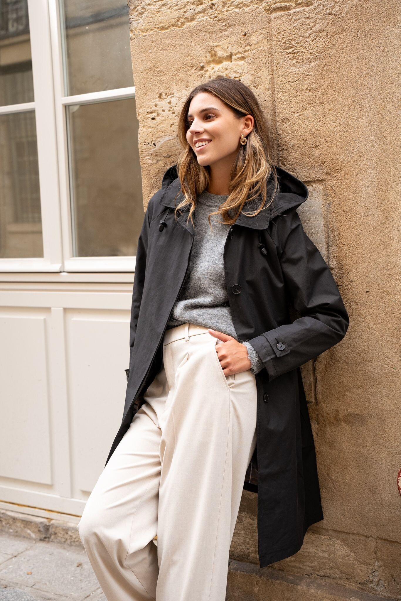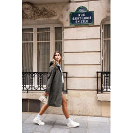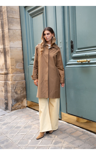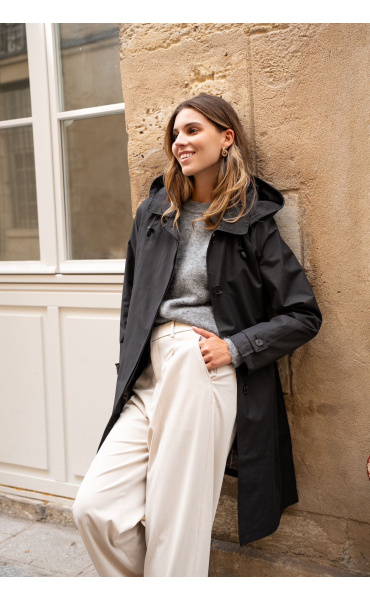 Stylový dámský kabátek se všitými kapsami po stranách. Jedná se o velice módní kousek, který je vhodný i do deště. Kabát má odnímatelnou kapucí.