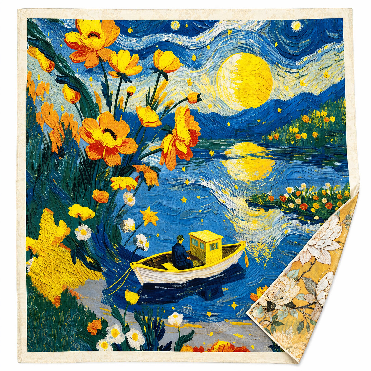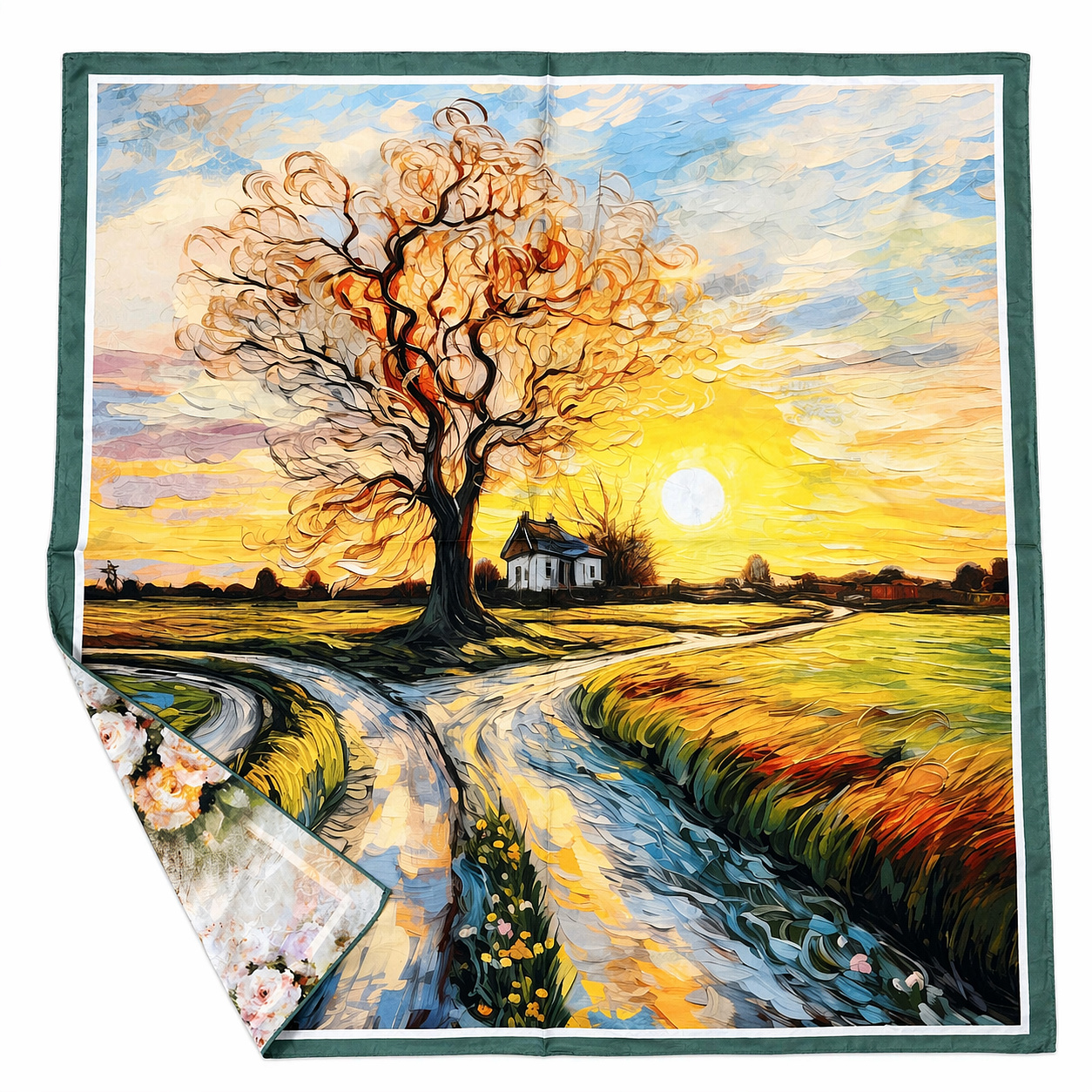 Dámský elegantní šátek s potiskem, který je oboustranný s potiskem na každé straně jiným.