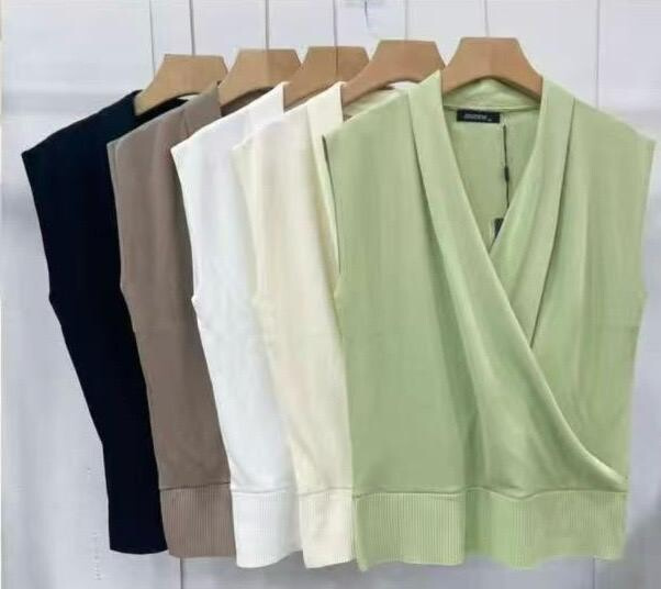 Dámský elegantní top překládaný. Top/halenka je bez rukávu, ve spodní části do patentu.