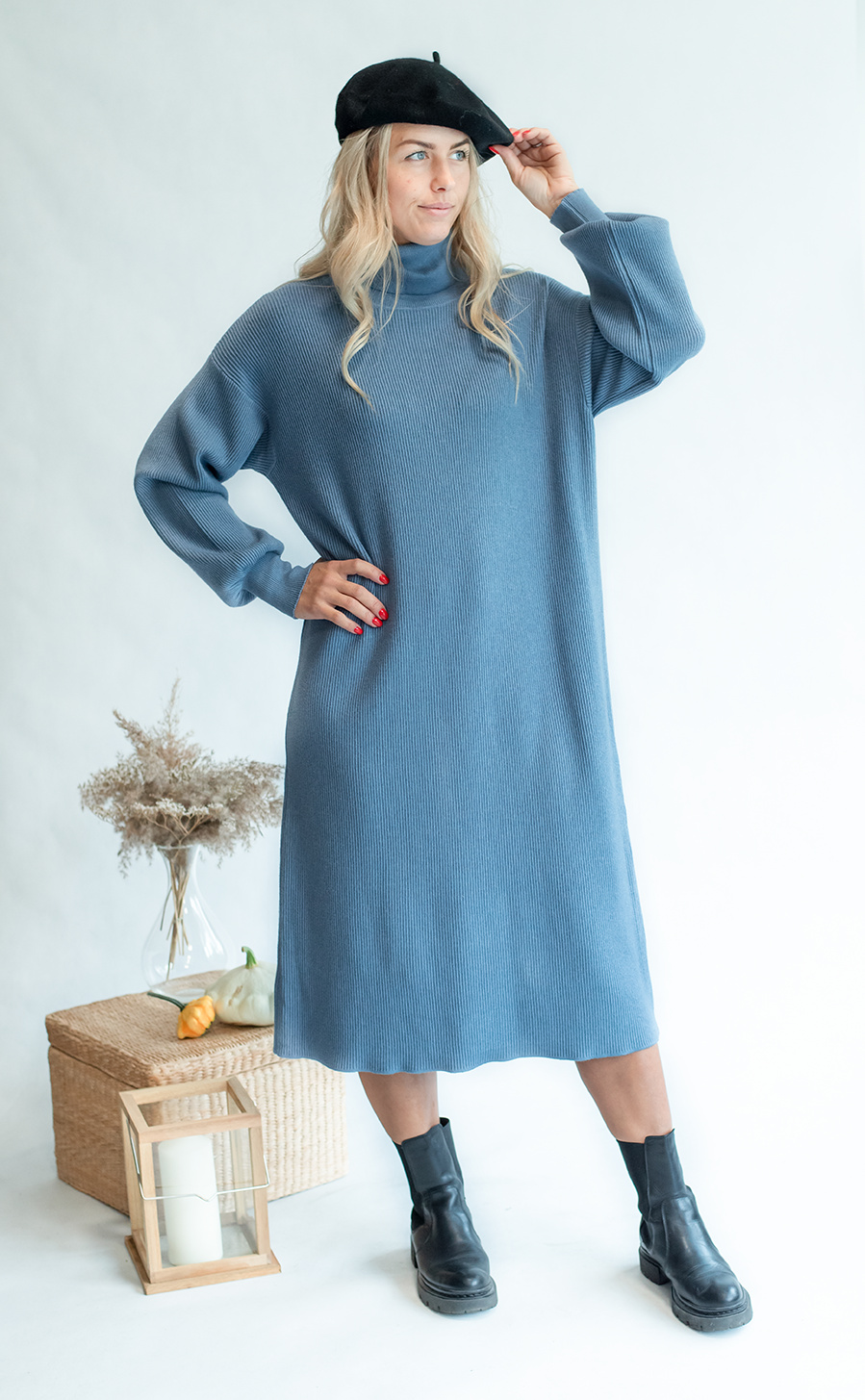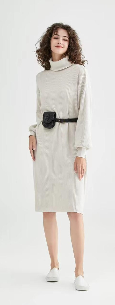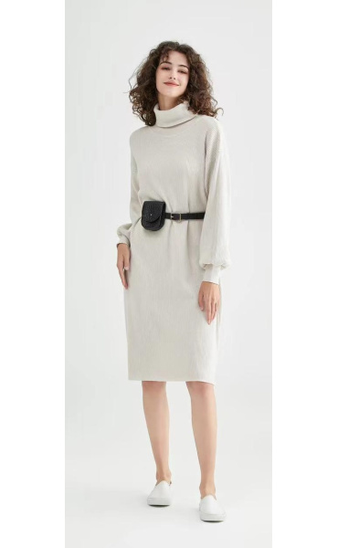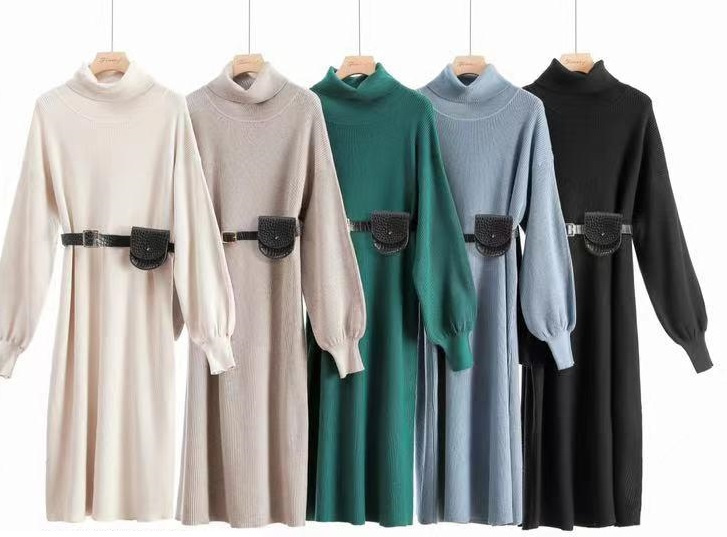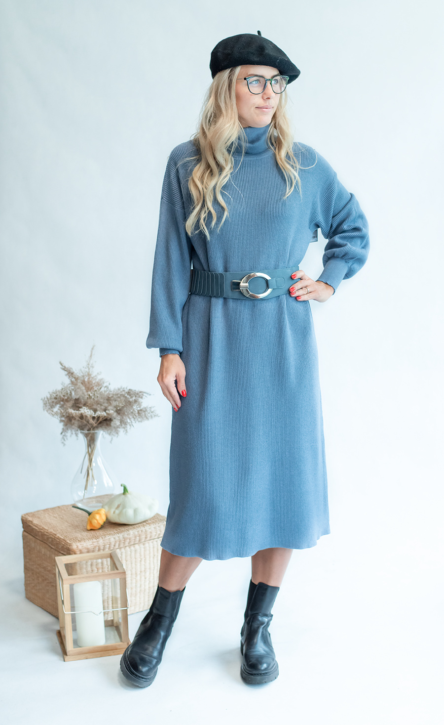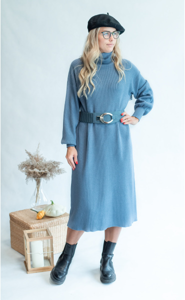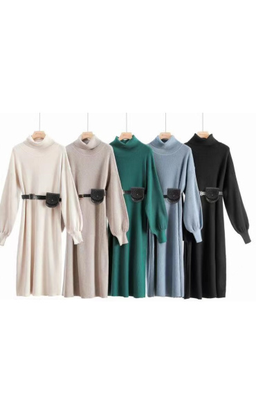 Delší úpletové šaty s opaskem a stylovou kapsičkou Itálie