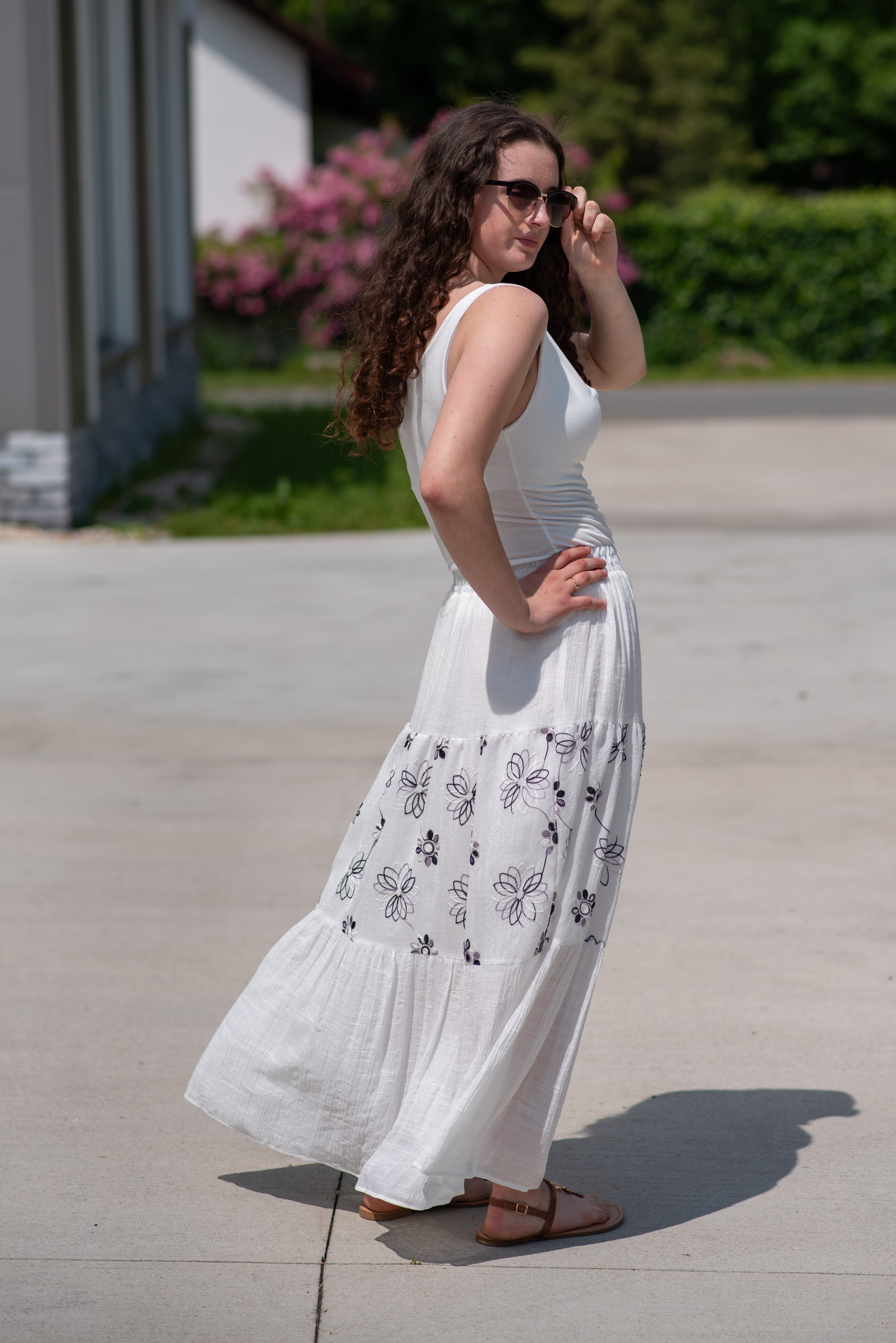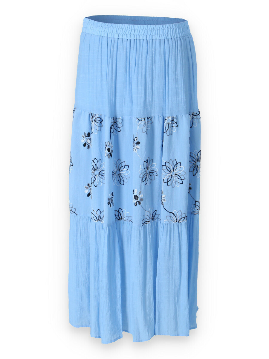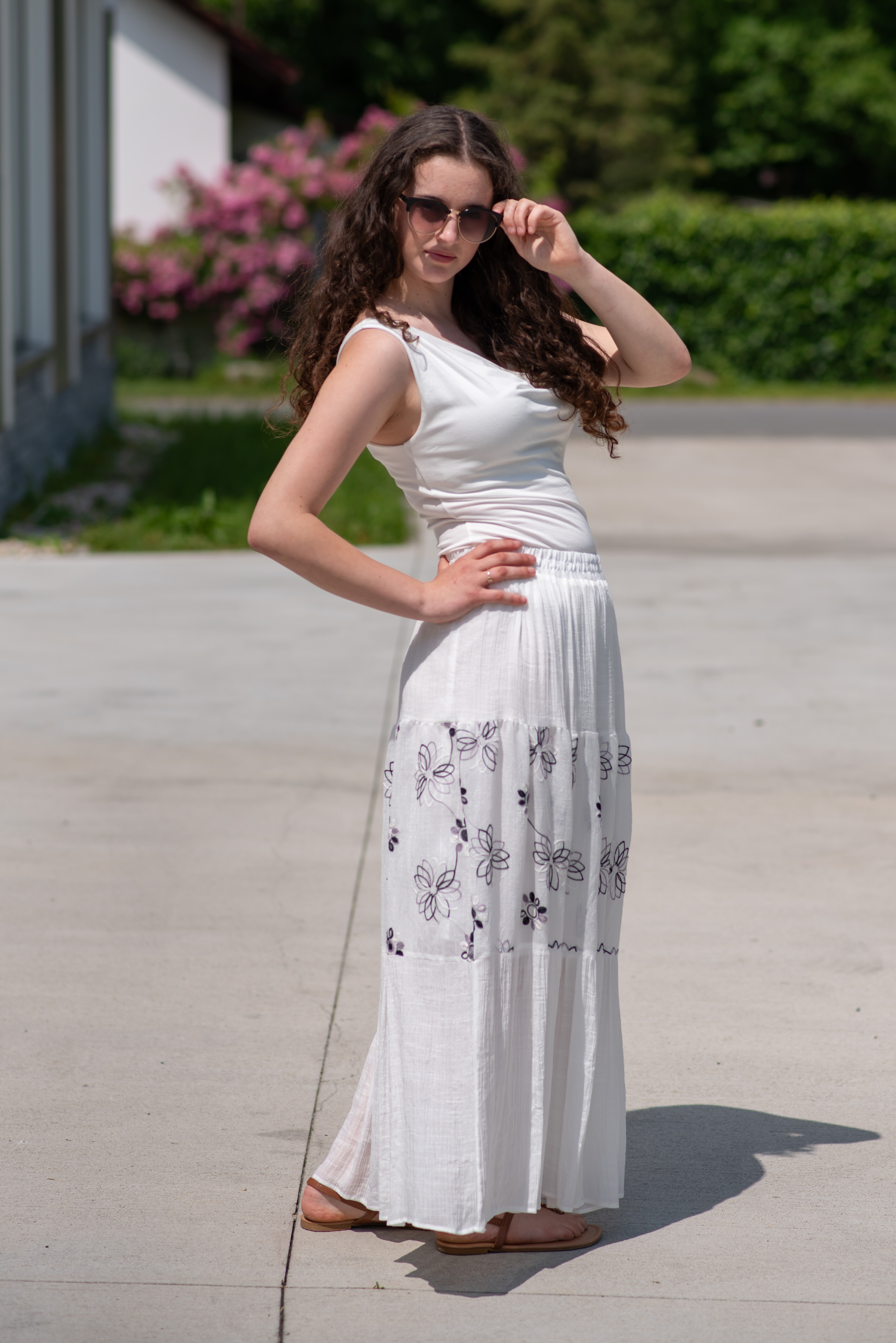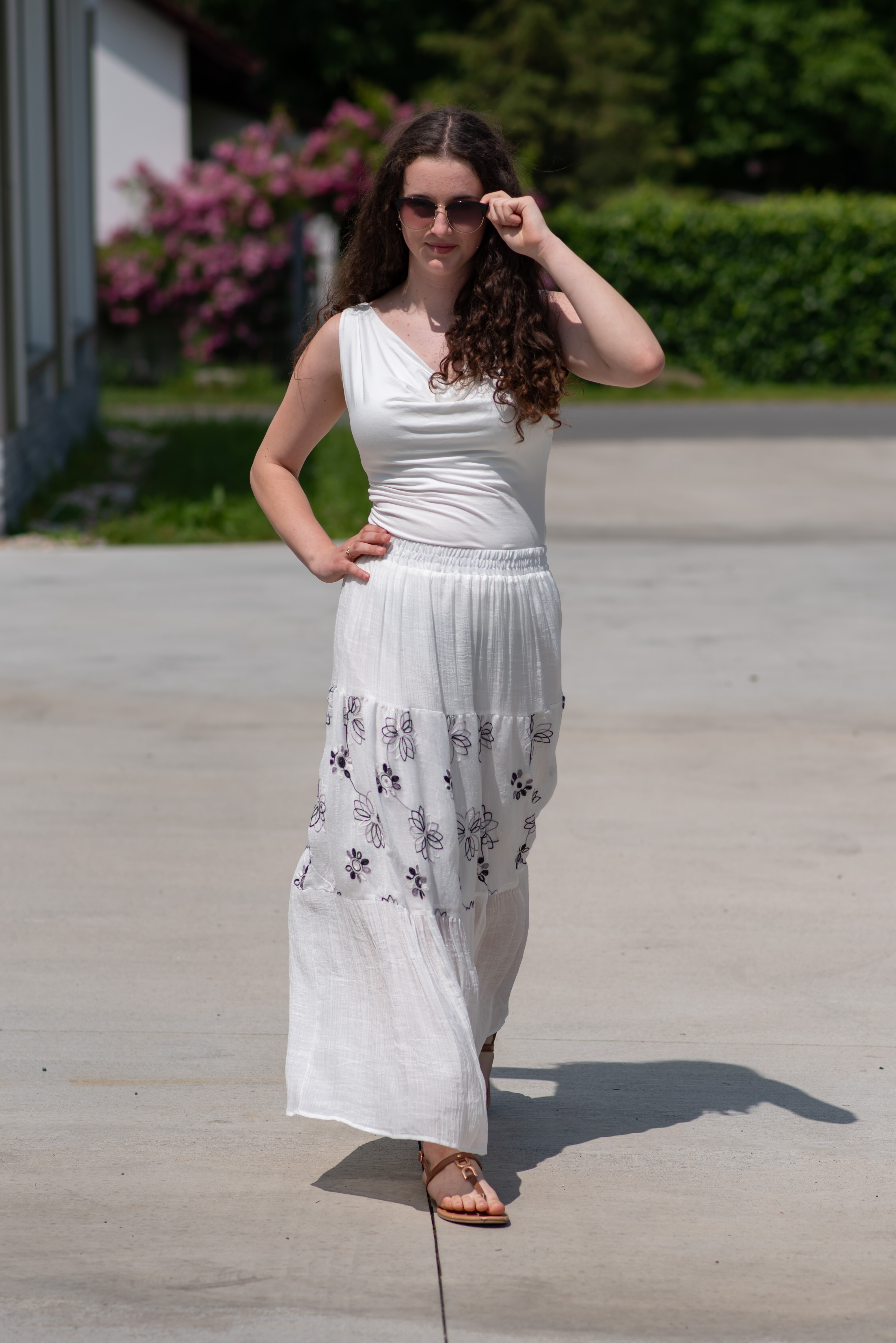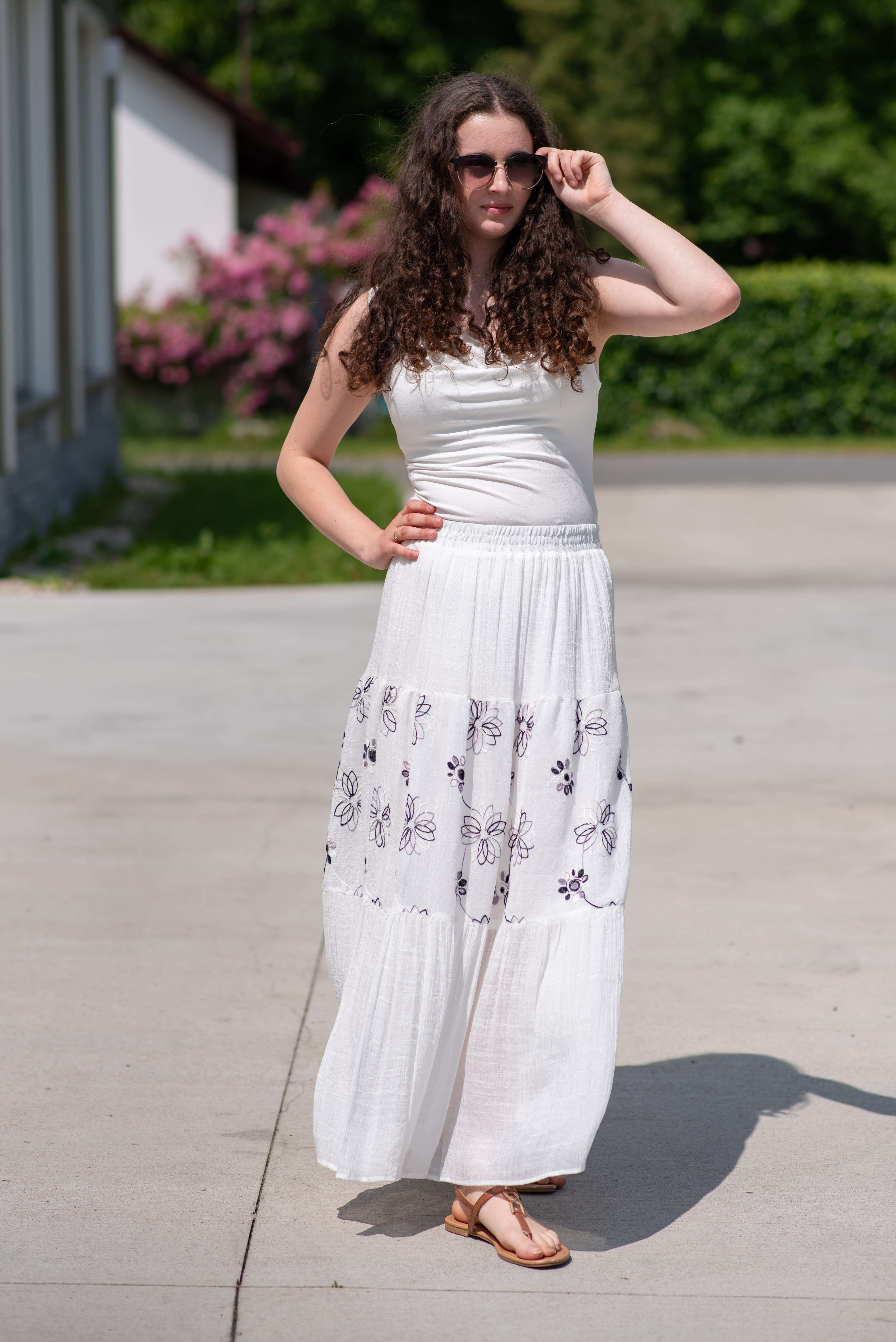 Dlouhá letní sukně v pase do gumy, s podšívkou. Ideální letní kousek, který by neměl chybět v žádném šatníku.