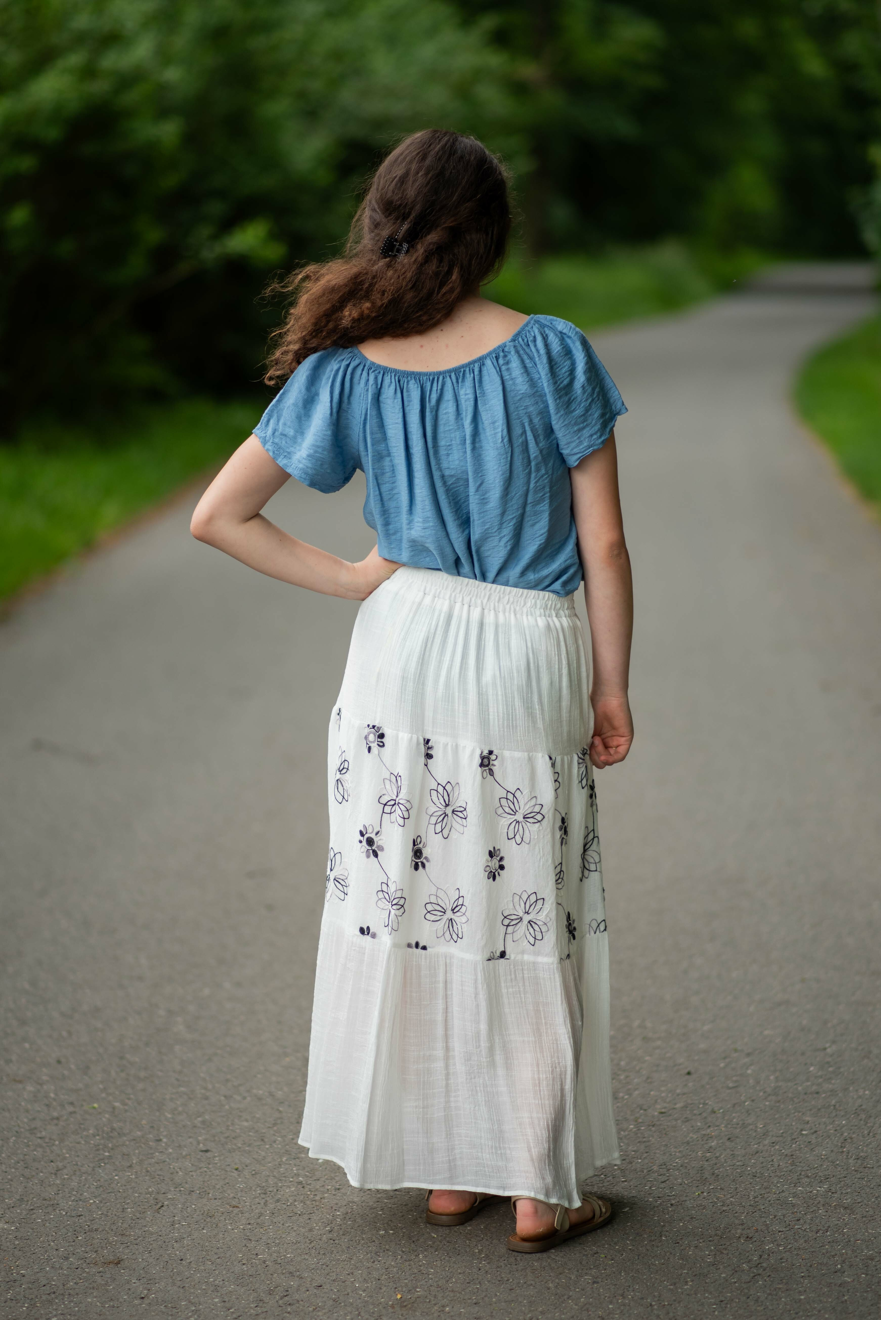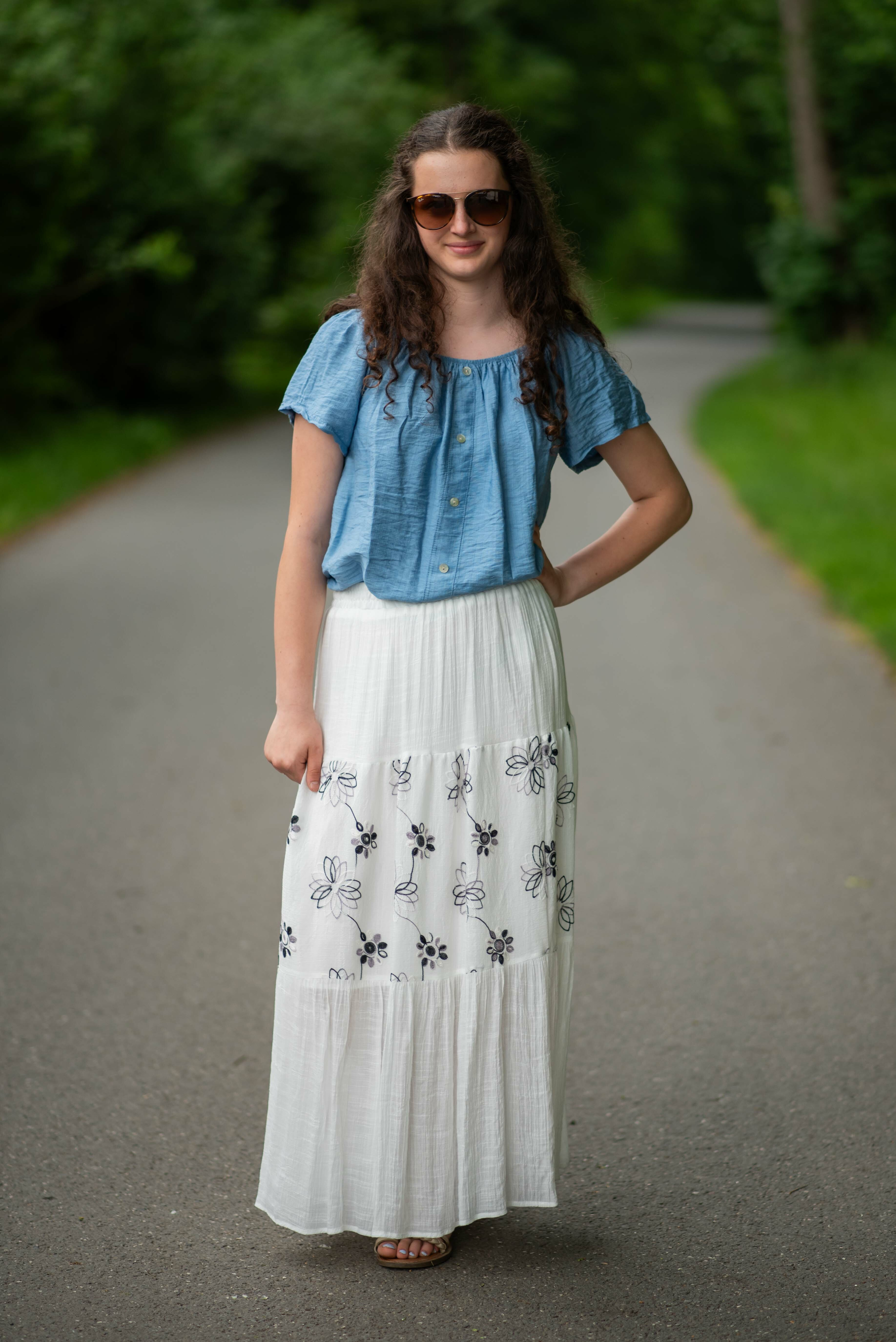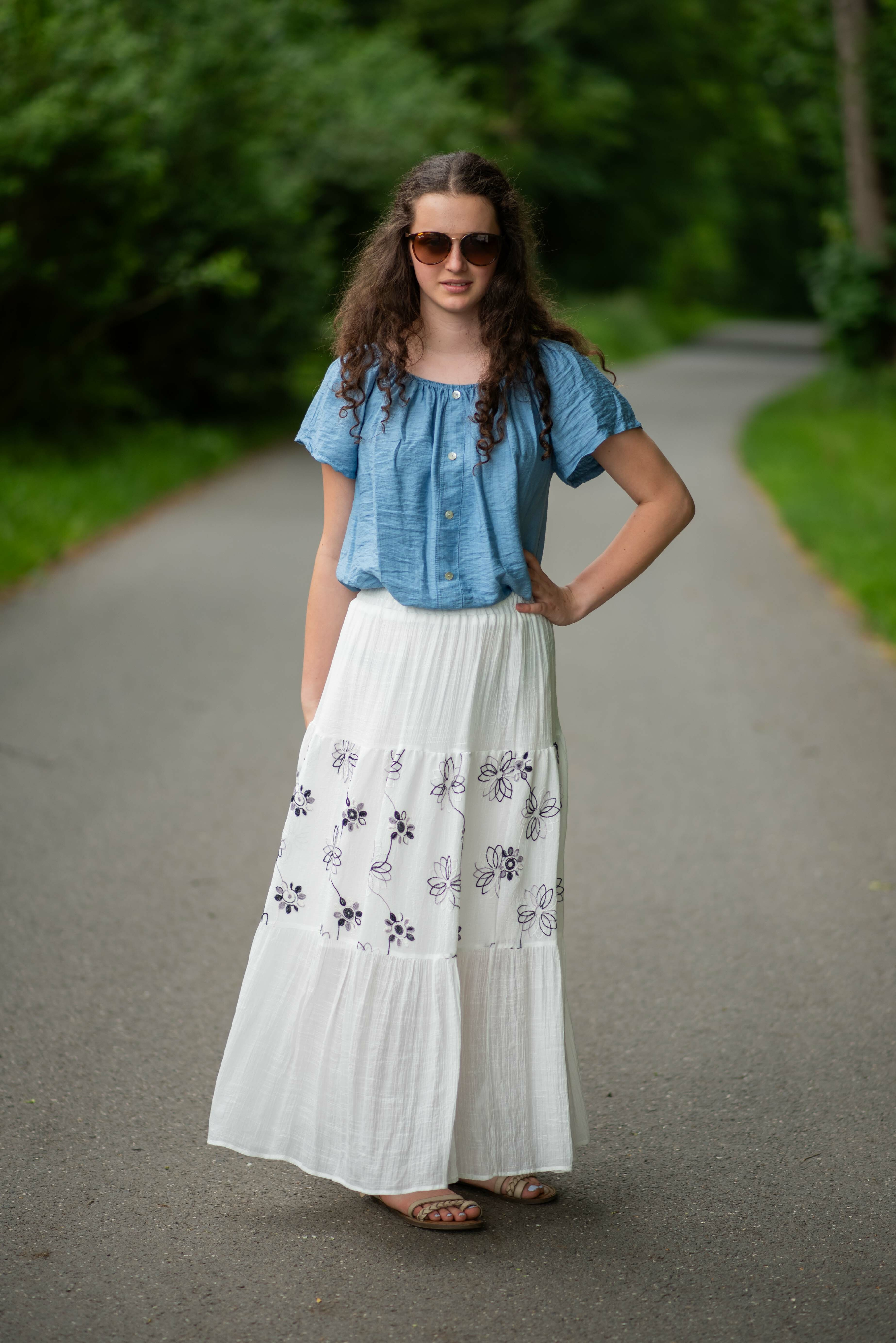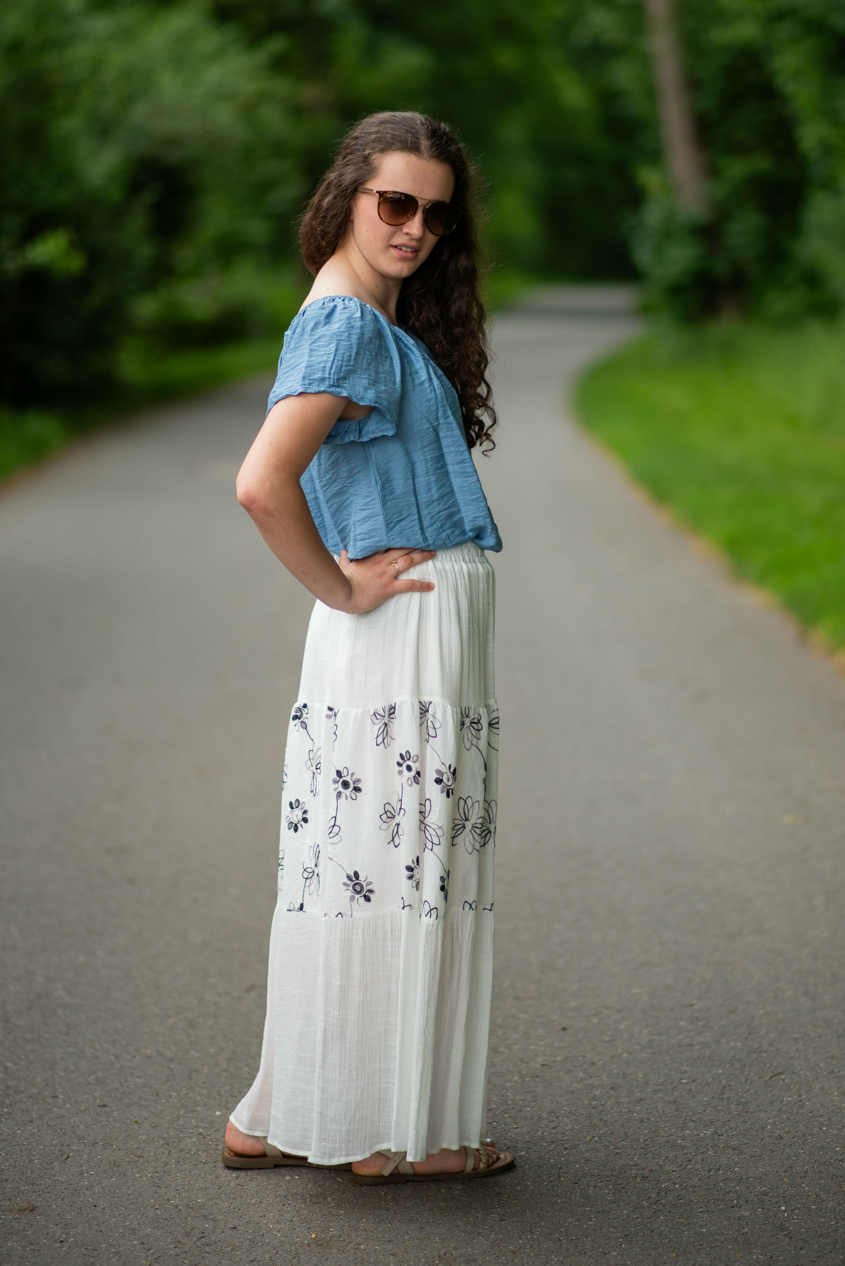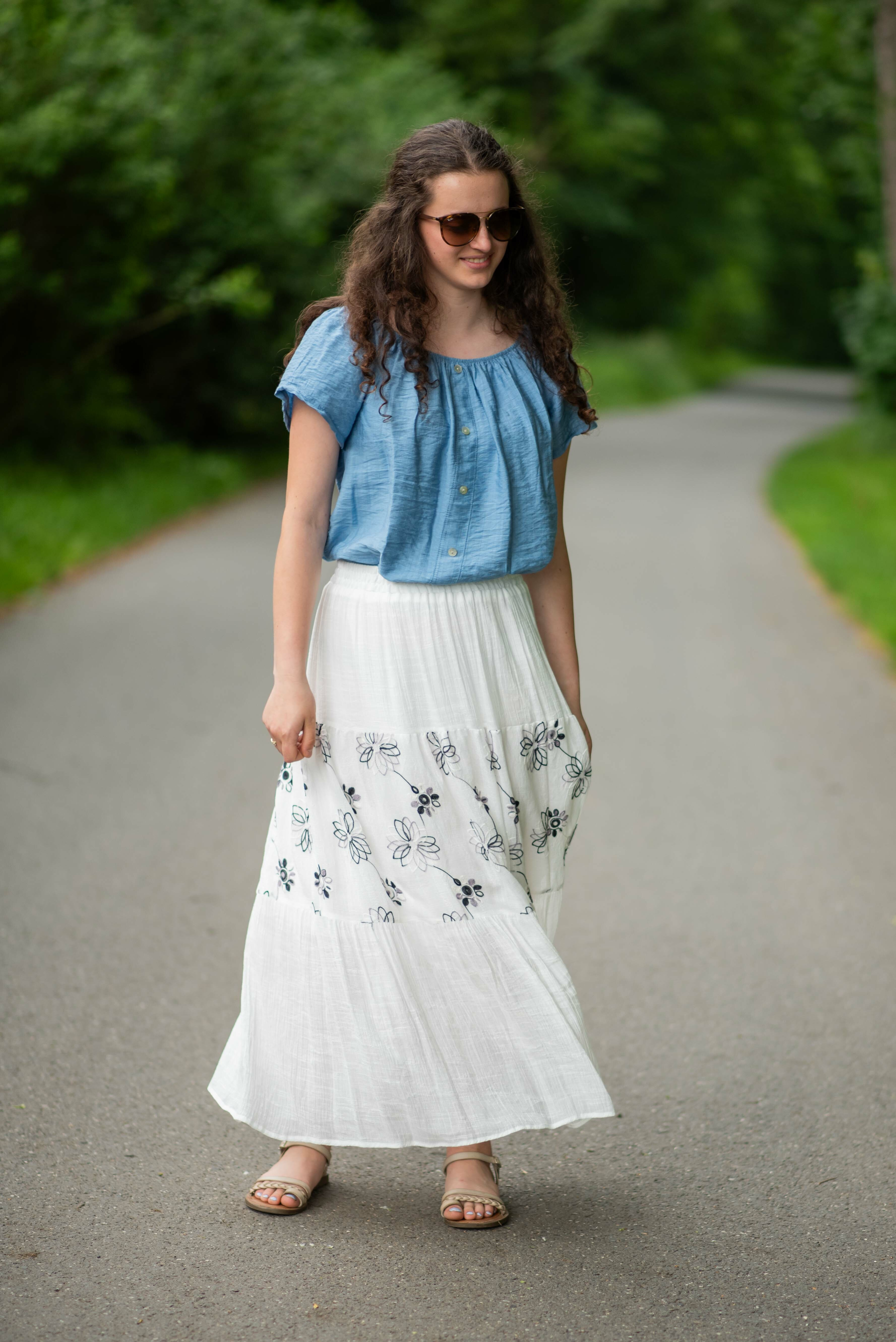 Dlouhá letní sukně v pase do gumy, s podšívkou. Ideální letní kousek, který by neměl chybět v žádném šatníku.