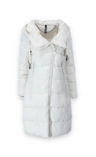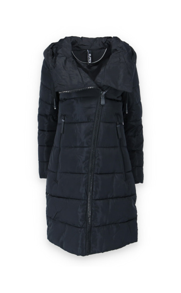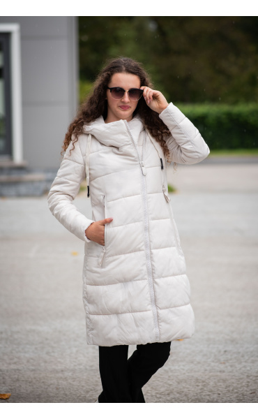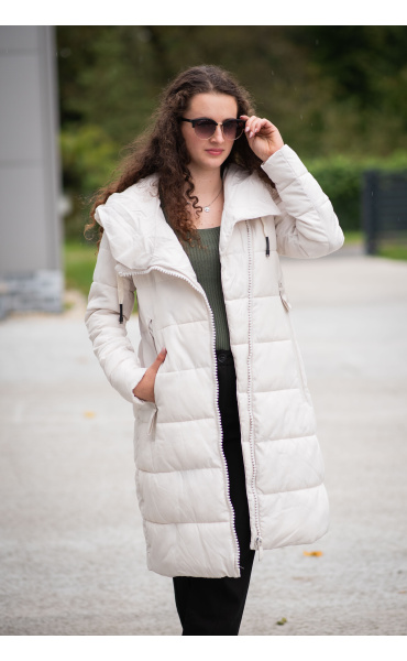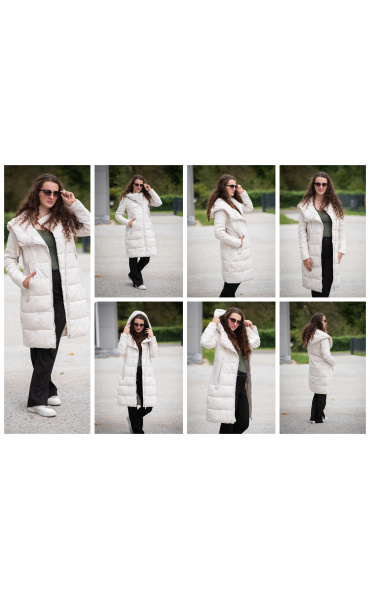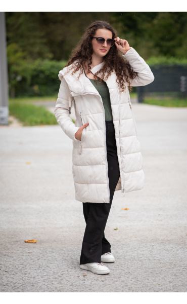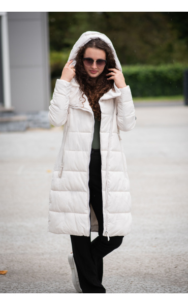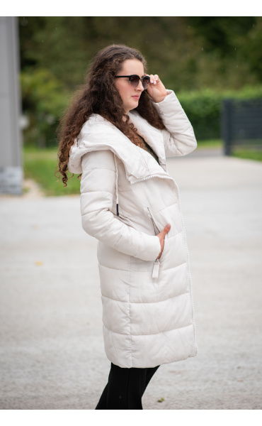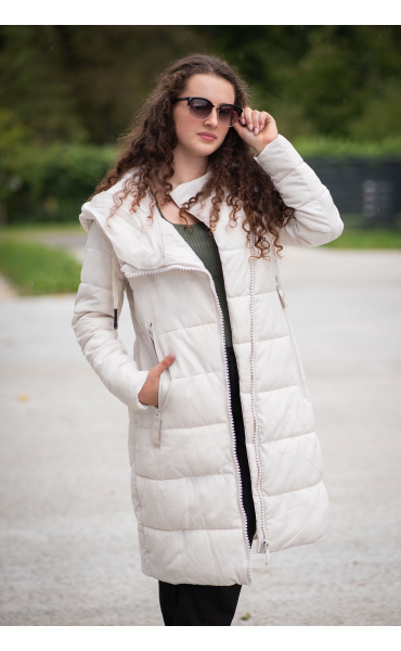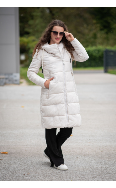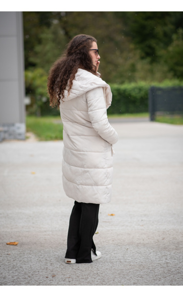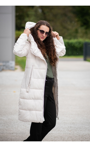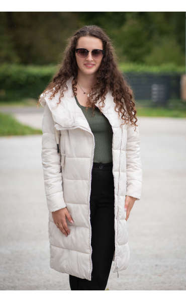Dlouhá zimní bunda s kapucí, zapínání i kapsy na zip. Dovoz Itálie