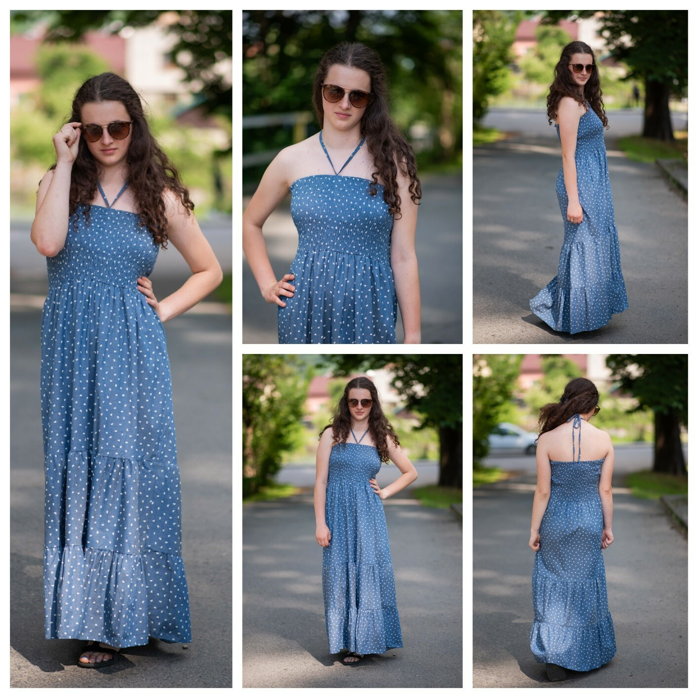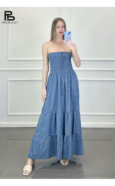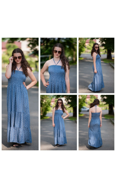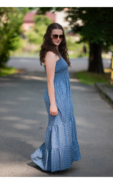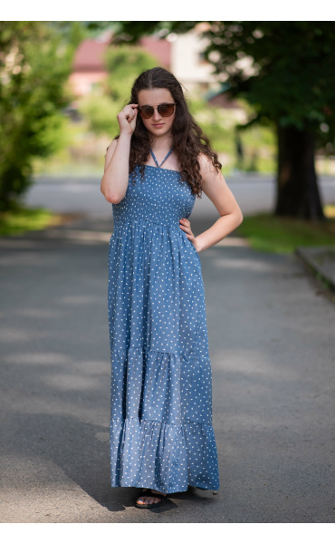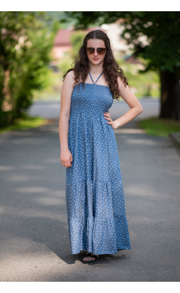 Dlouhé džínové šaty 35253 Itálie barva: modrá džínová, velikost: Univerzální-jedna velikost