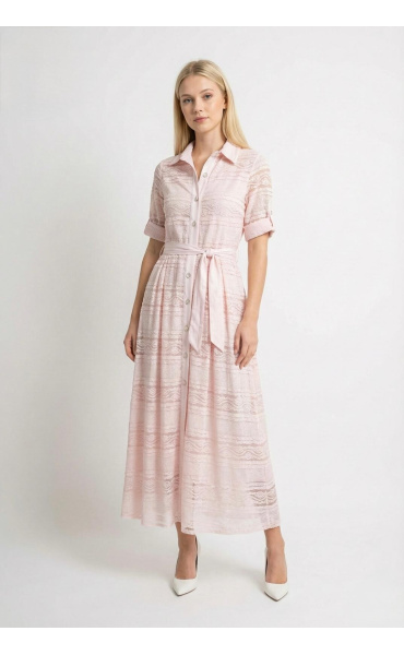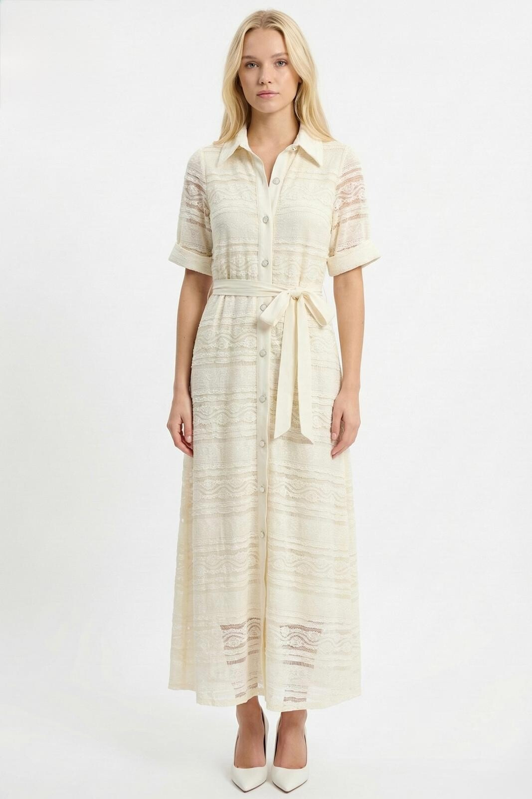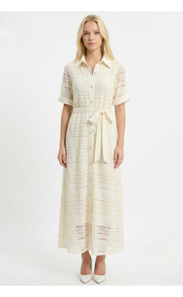Elegantní krajkové dlouhé šaty. Šaty jsou košilové, propínací, mají krátký rukáv a podšívku.