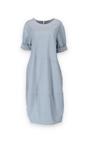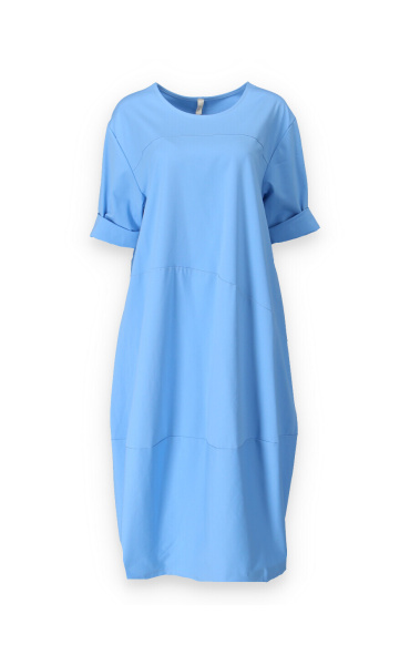 Dlouhé šaty balónového střihu pro každodenní nošení. Šaty mají po stranách všité kapsy a 3/4 rukáv.