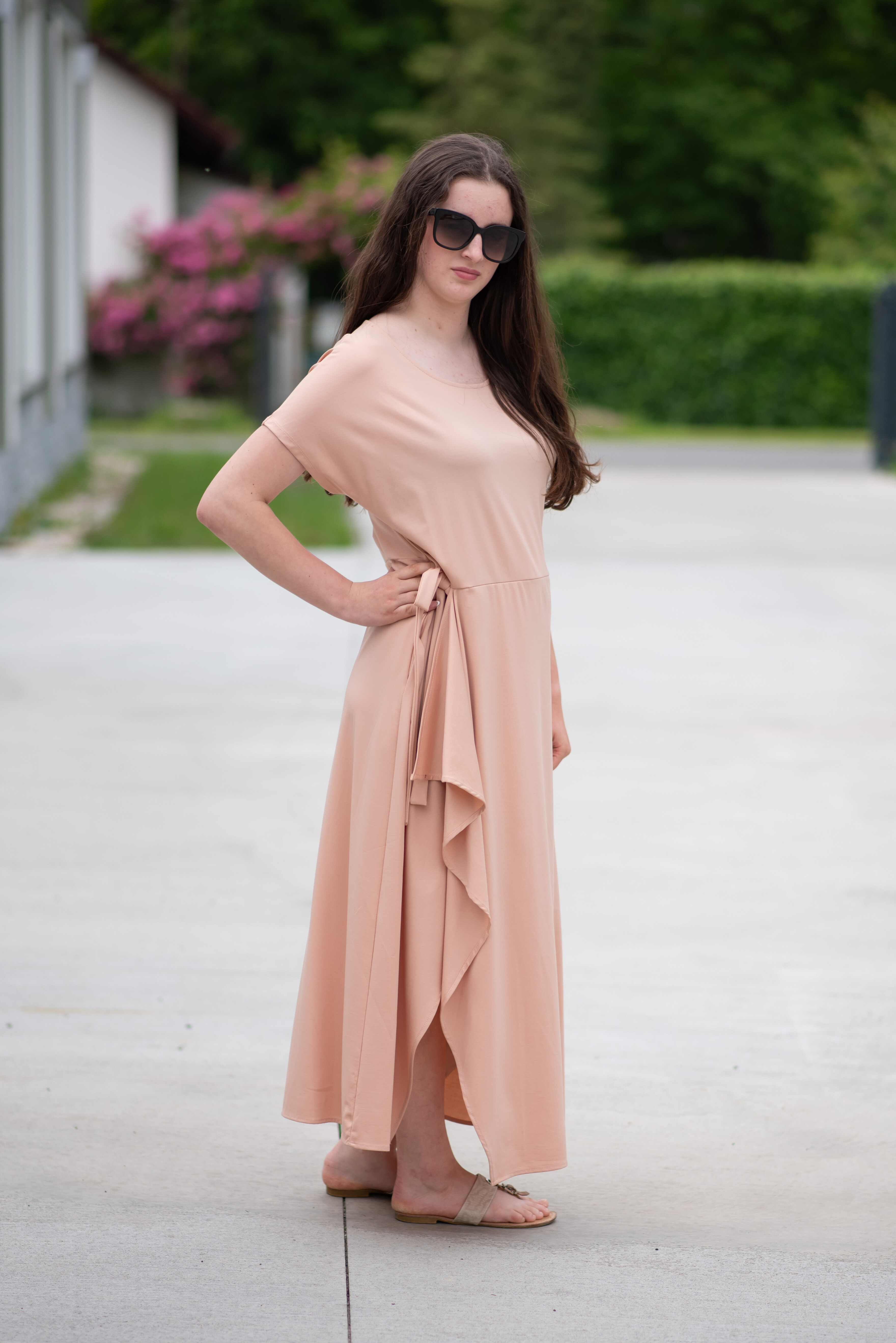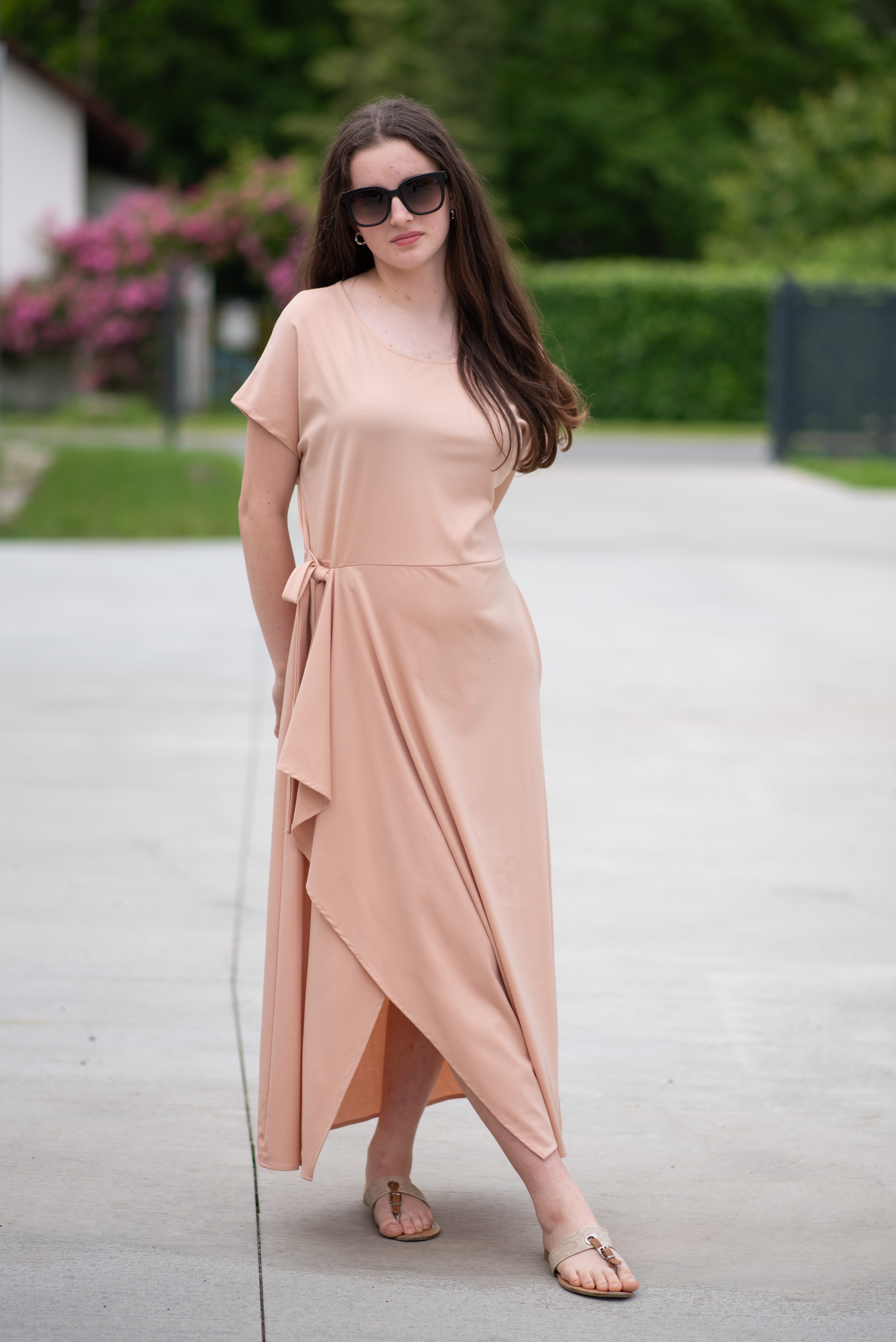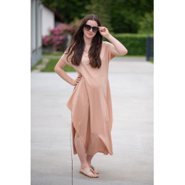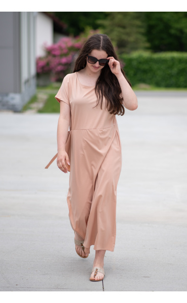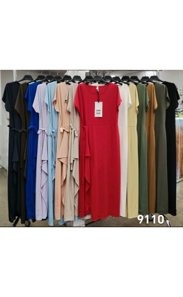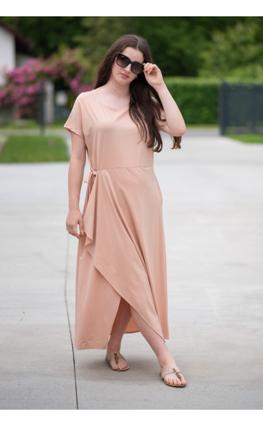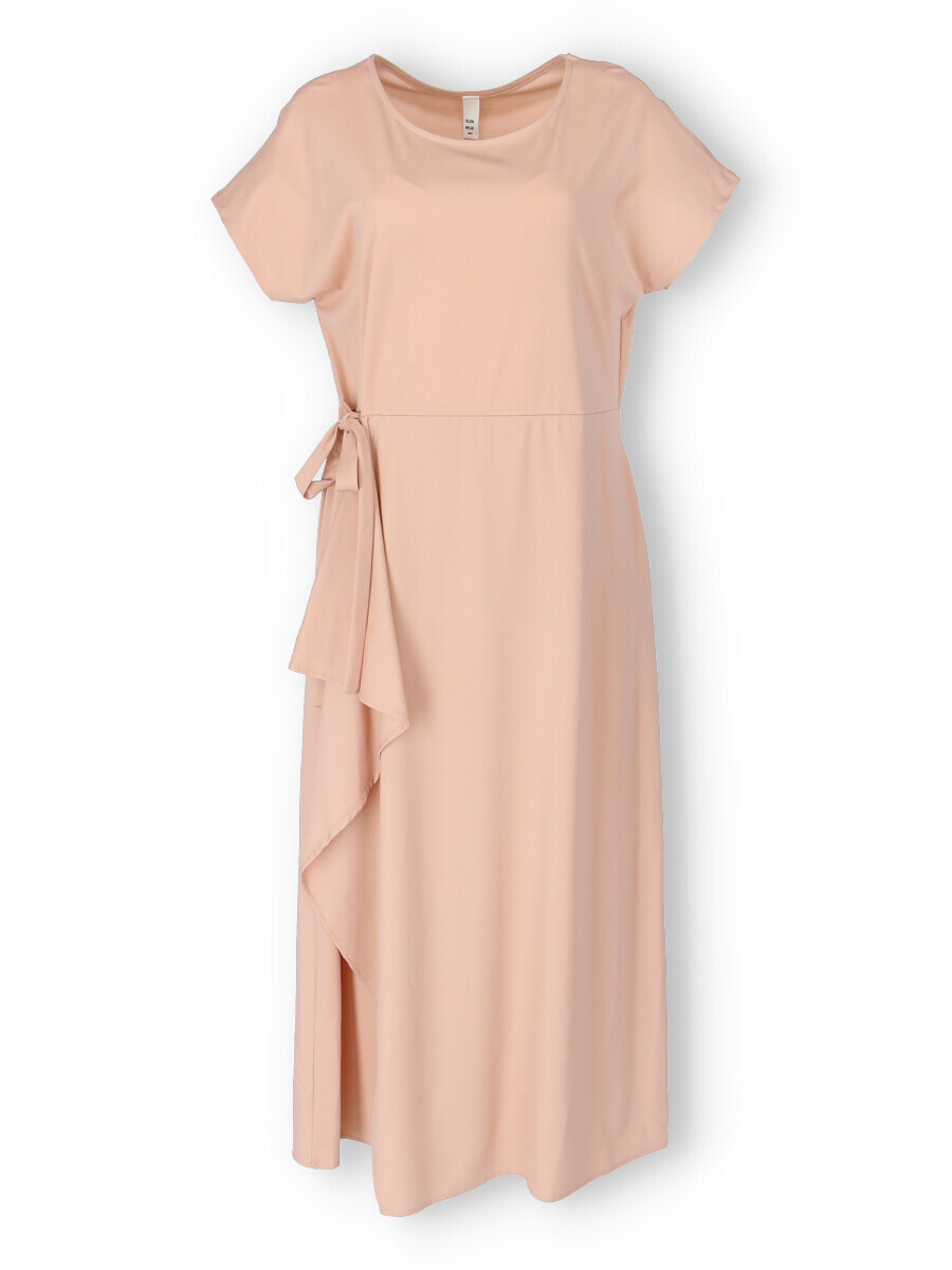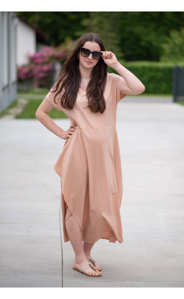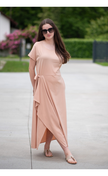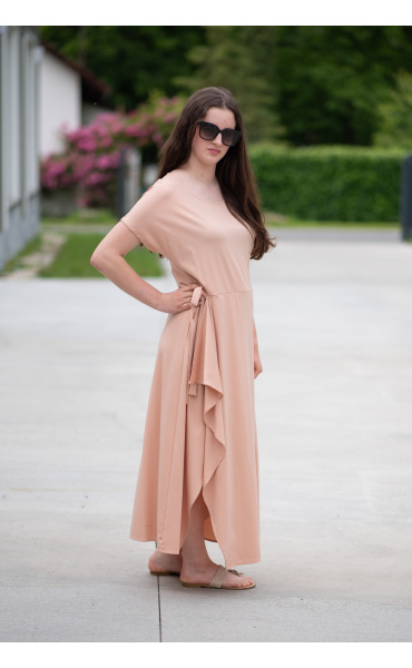 Dámské dlouhé šaty s volánem. Šaty mají kulatý výstřih a  krátký výstřih. Vyrobeno v Itálii.