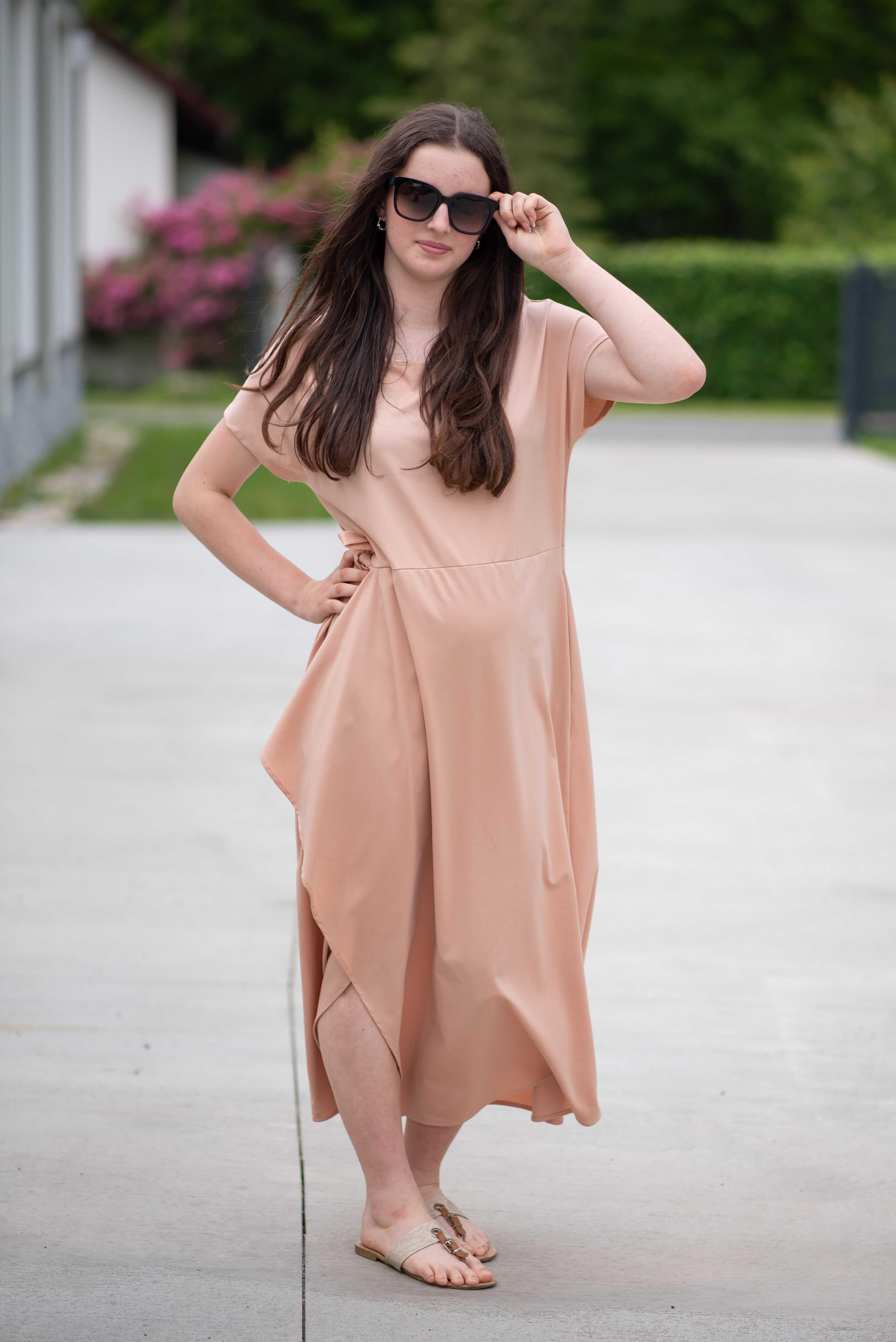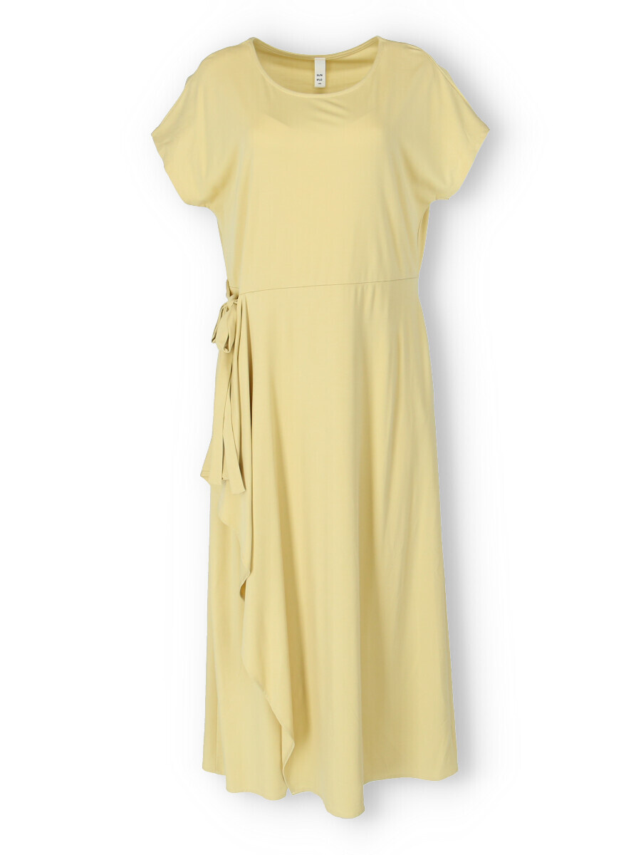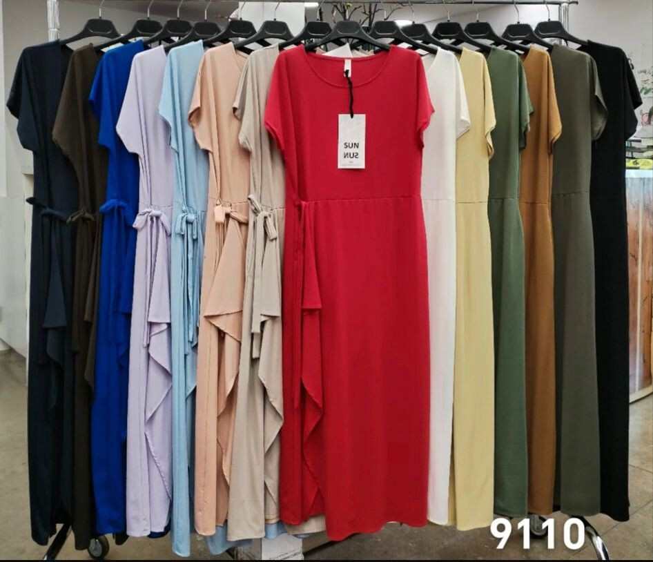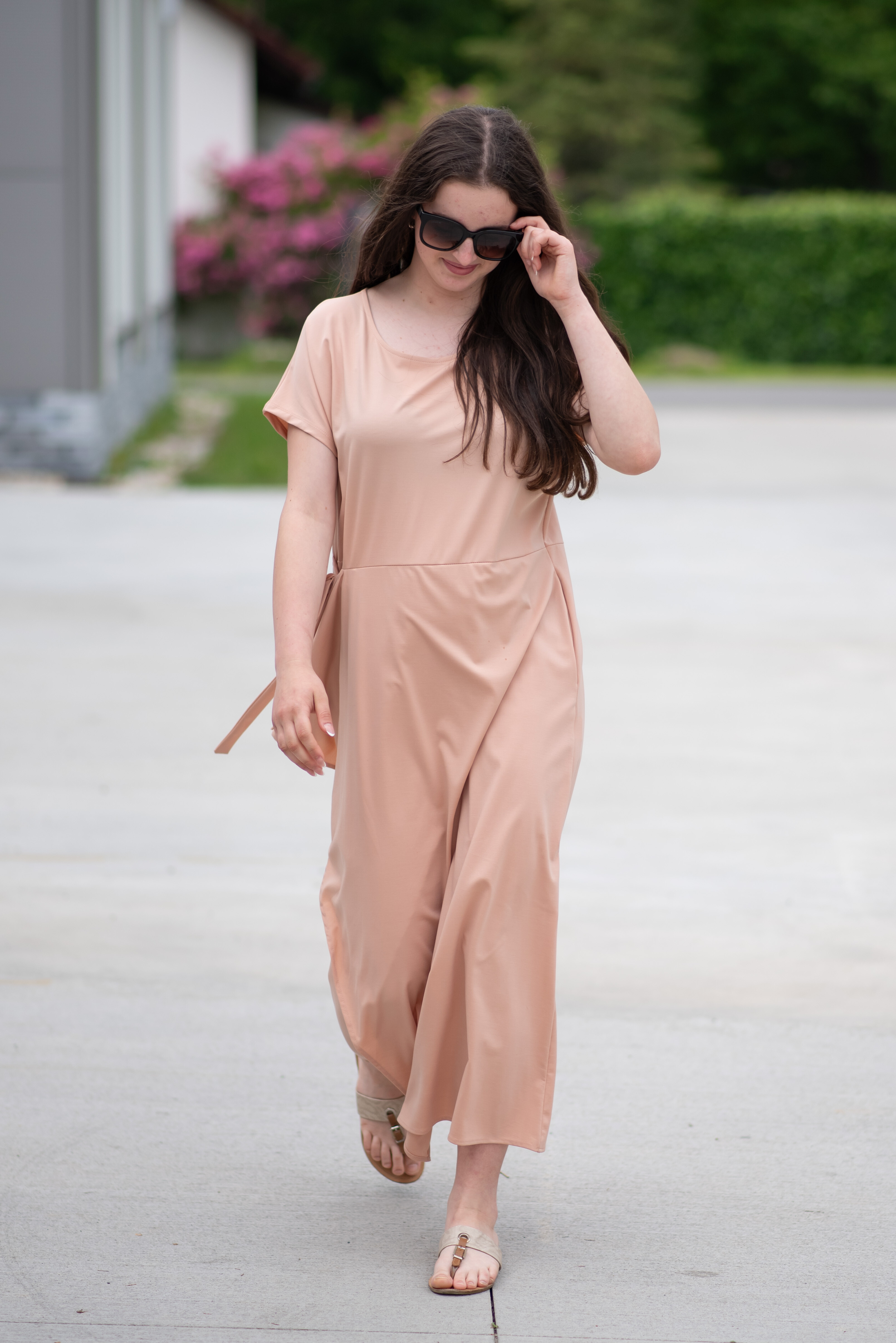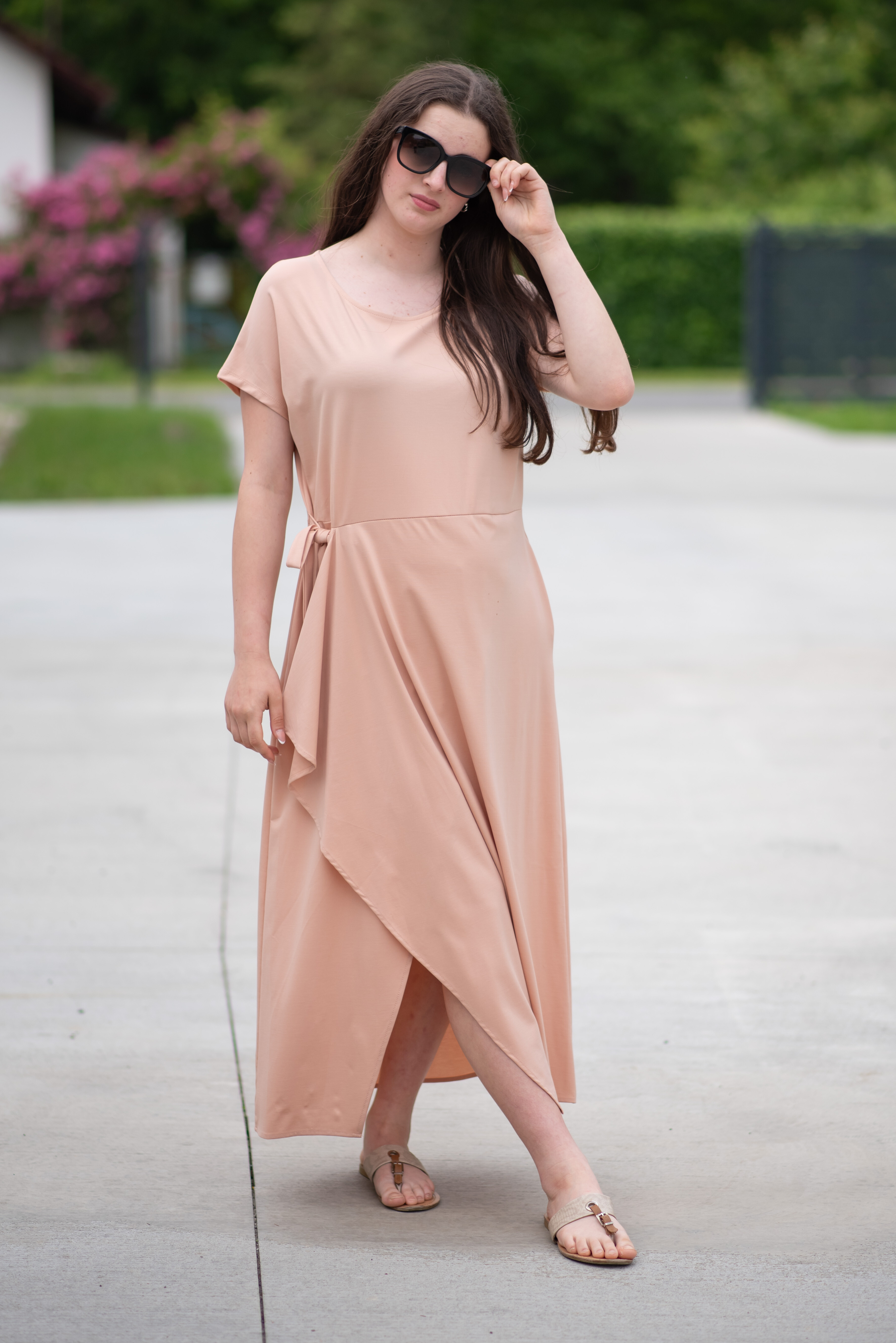 Dámské dlouhé šaty s volánem. Šaty mají kulatý výstřih a  krátký výstřih. Vyrobeno v Itálii.