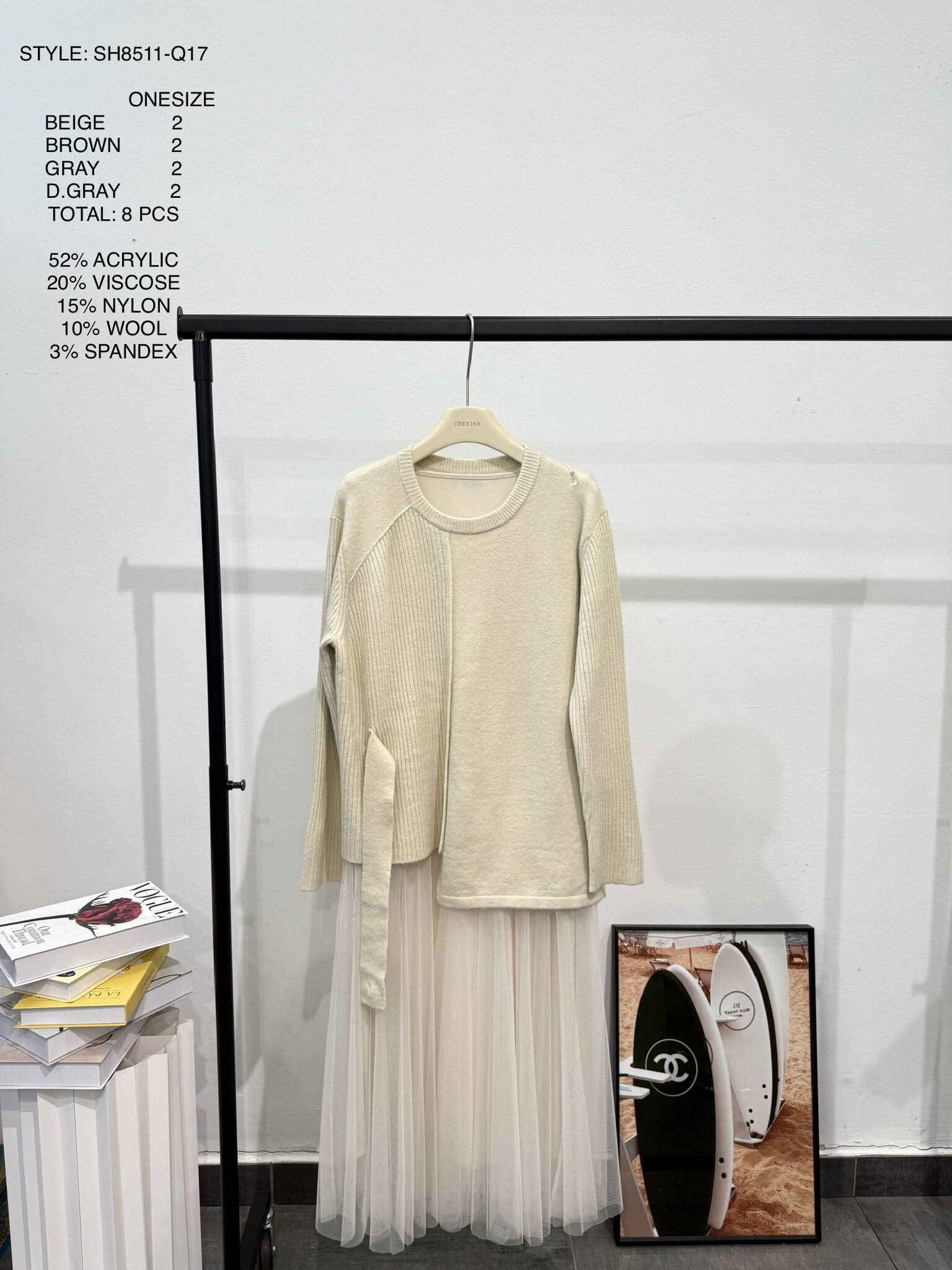 Složení materiálu: 47% viskóza, 28% polyester, 15% polyamid, 10% angora