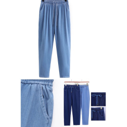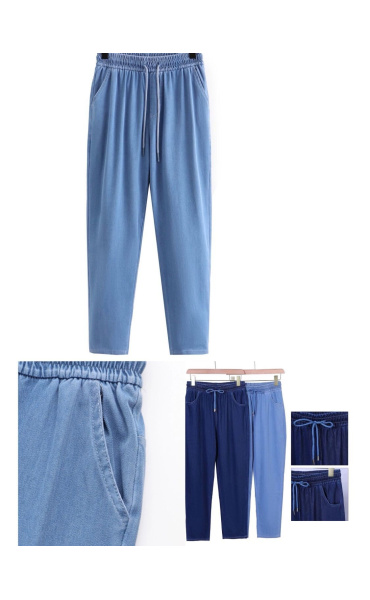 Dámské džínové kalhoty v pase do gumy. Kalhoty jsou z odlehčeného materiálu. Dovoz Itálie