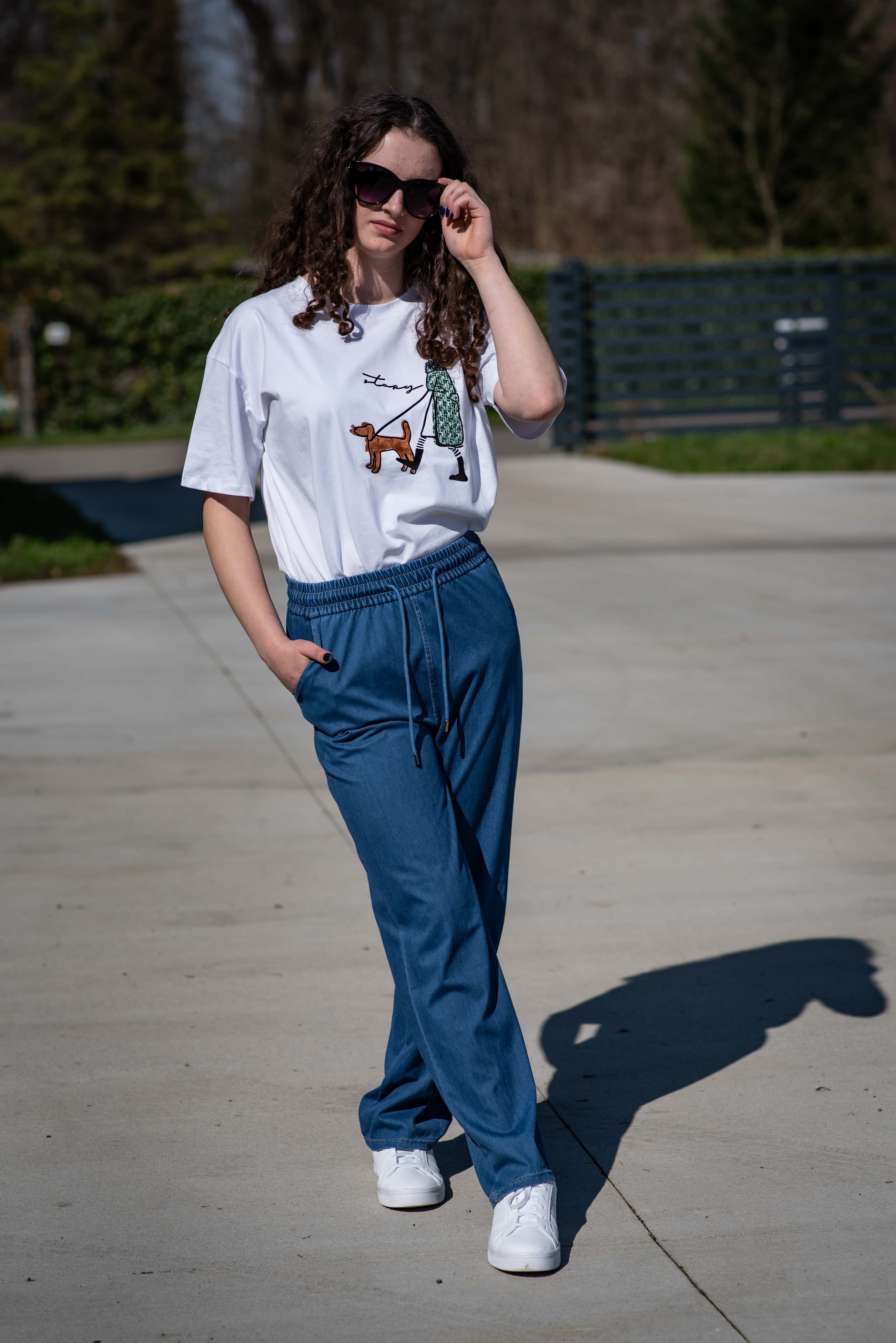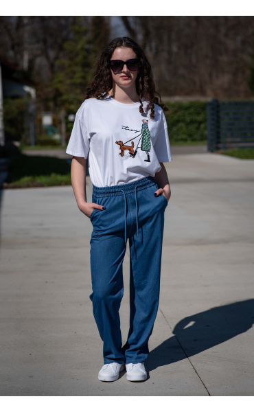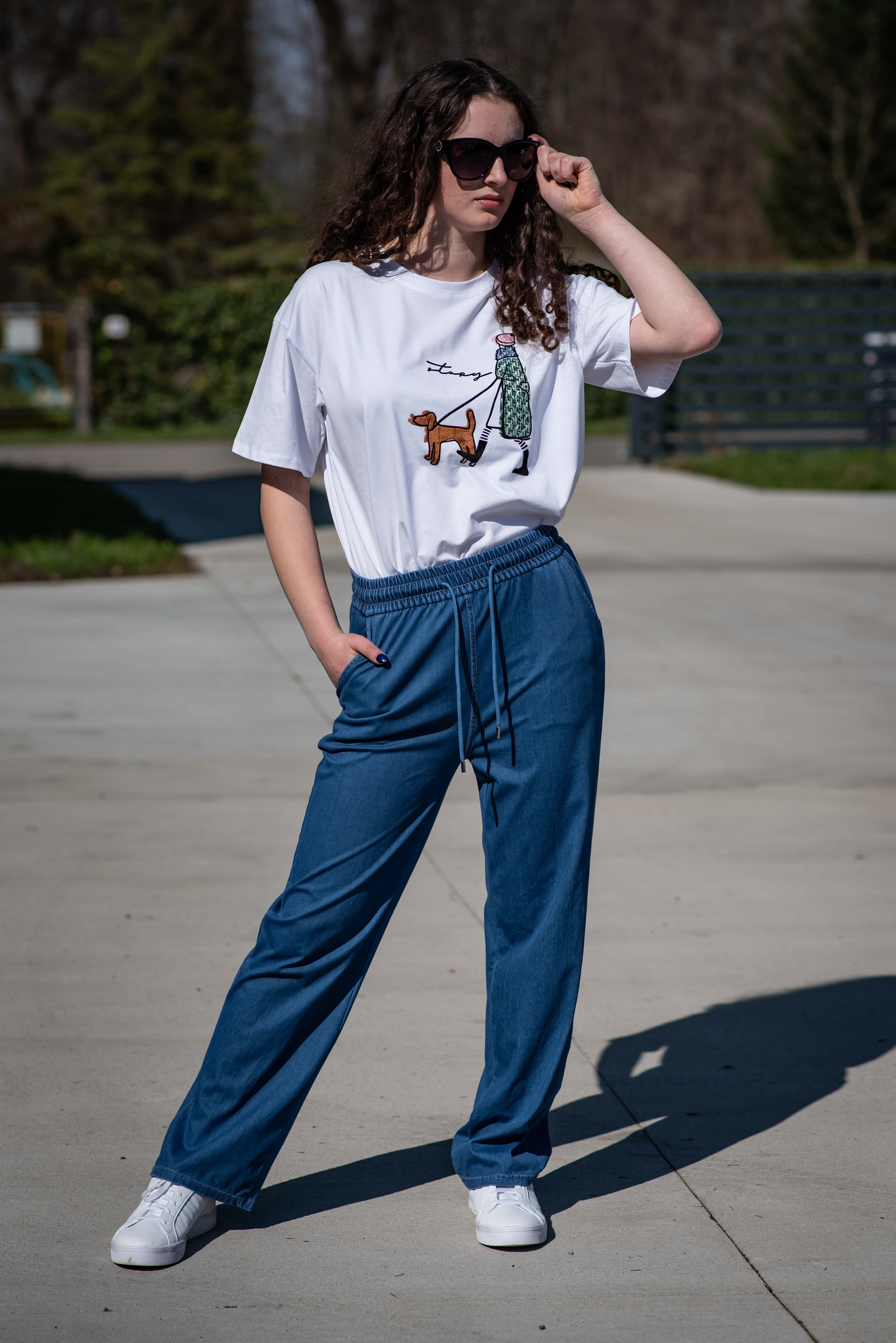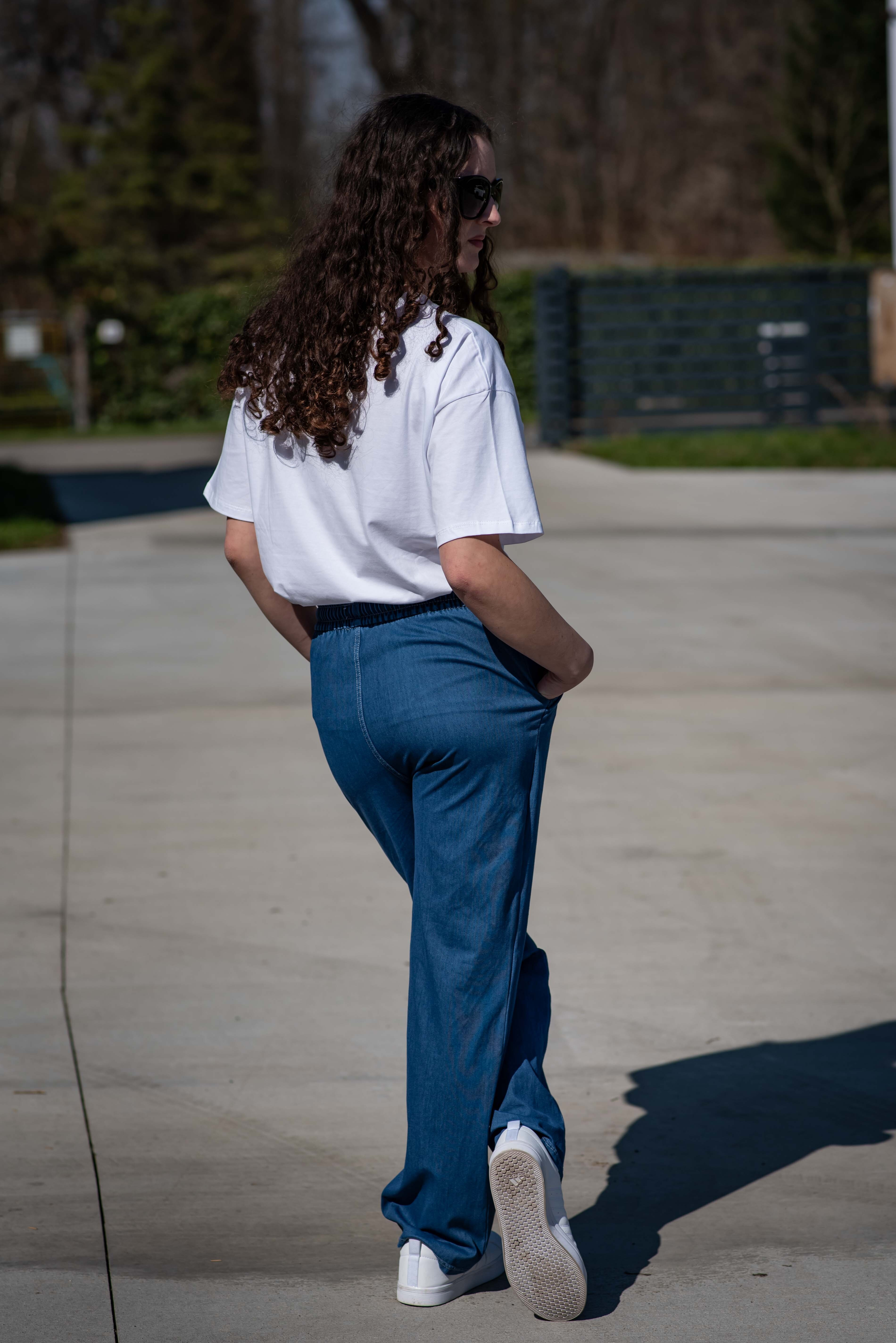 Dámské džínové široké kalhoty v pase do gumy. Dovoz Itálie