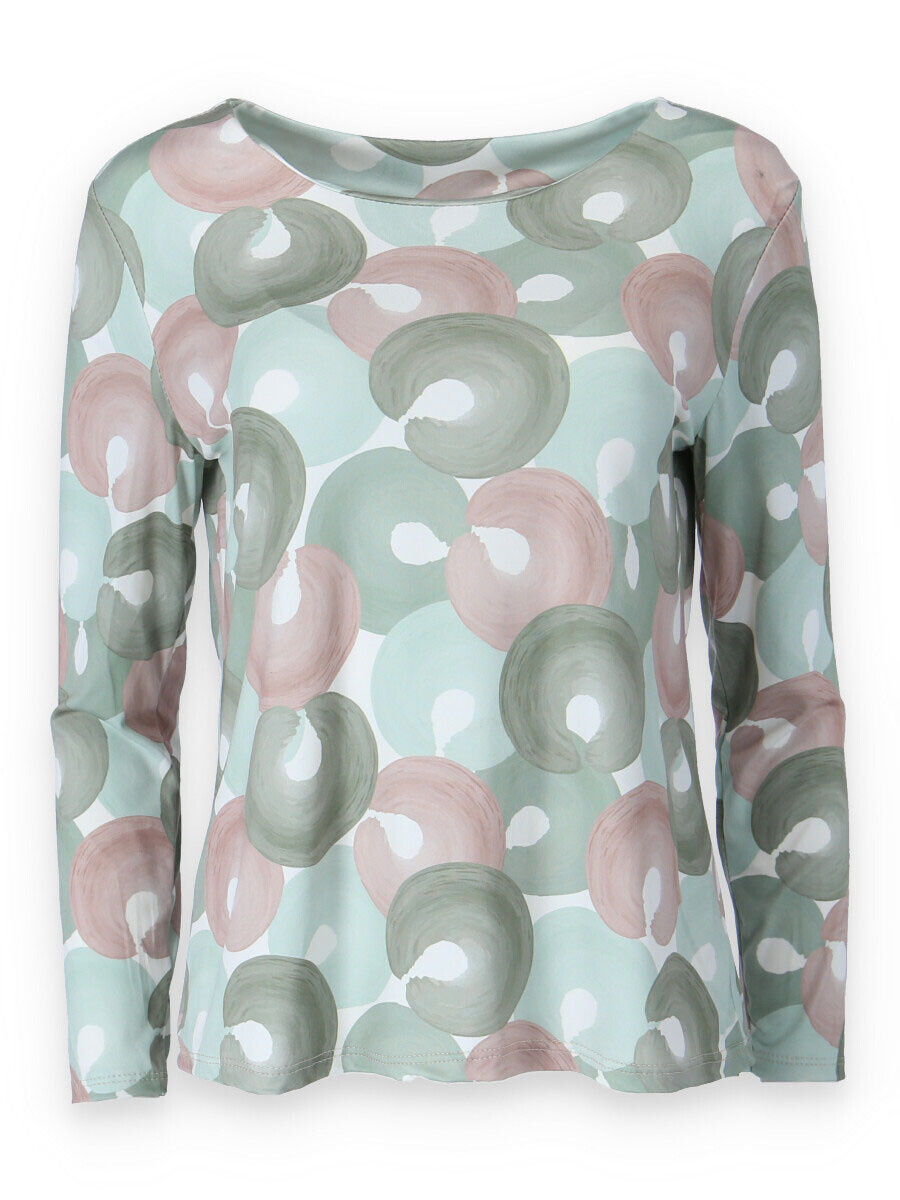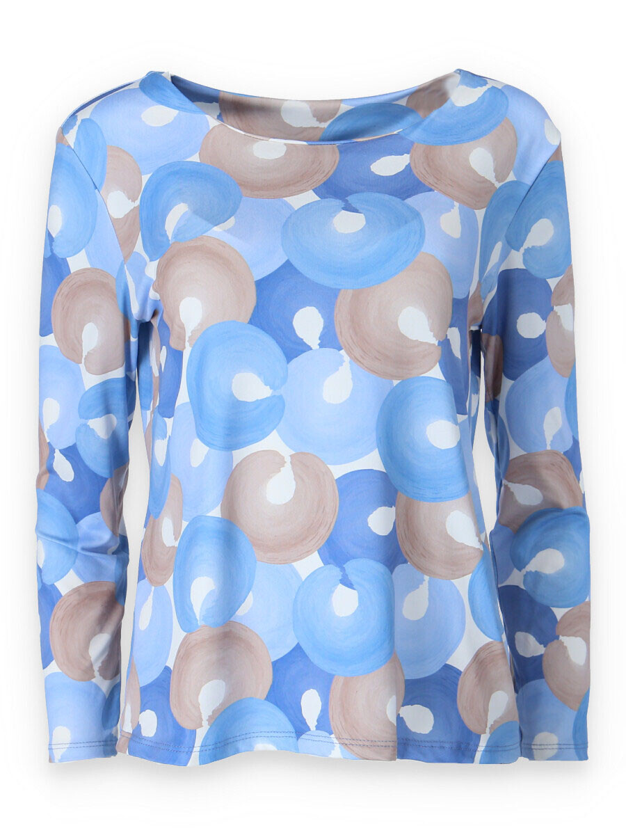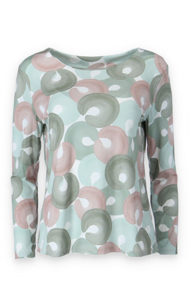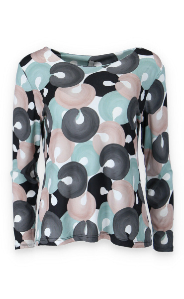Elegantní halenka s potiskem. Halenka má dlouhý rukáv a kulatý výstřih.