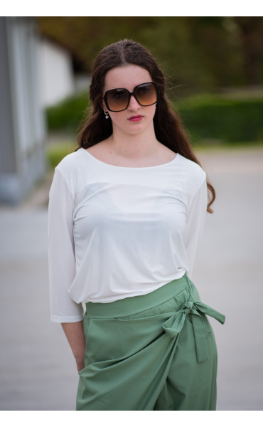 Módní halenka jednobarevná. Halenka má 3/4 rukáv a kulatý výstřih, dovoz Itálie