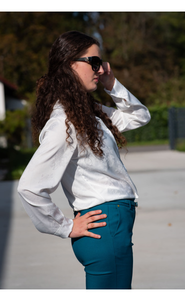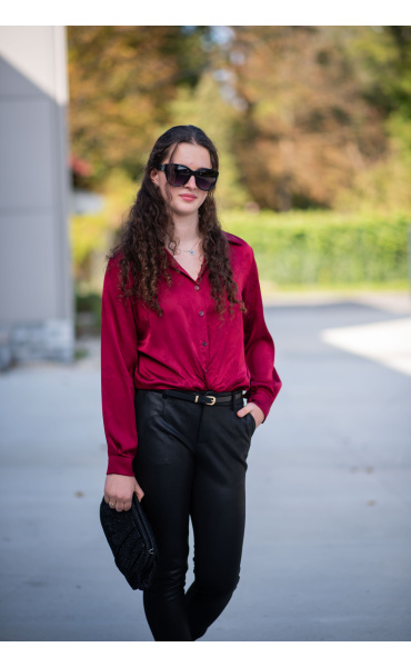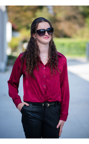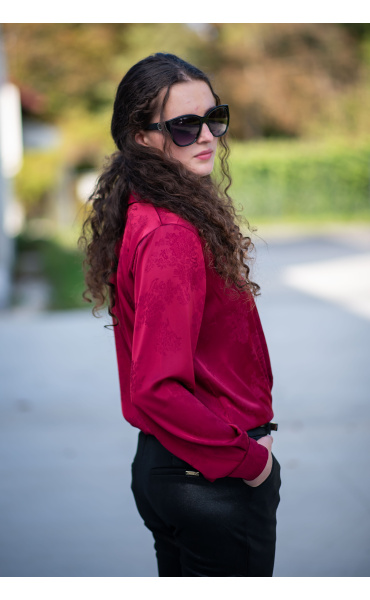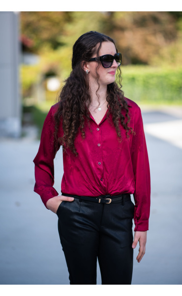 Elegantní košile na uzel s výšivkou. Košile má lesklý vzhled, vhodná ke slavnostním příležitostem.