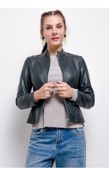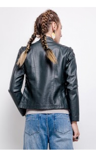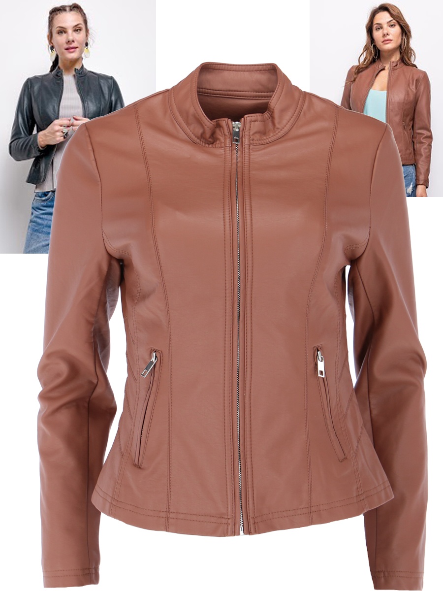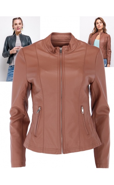 Foto z běžné velikosti. Módní koženková bunda se stojáčkem Lady velikost(nadměr)