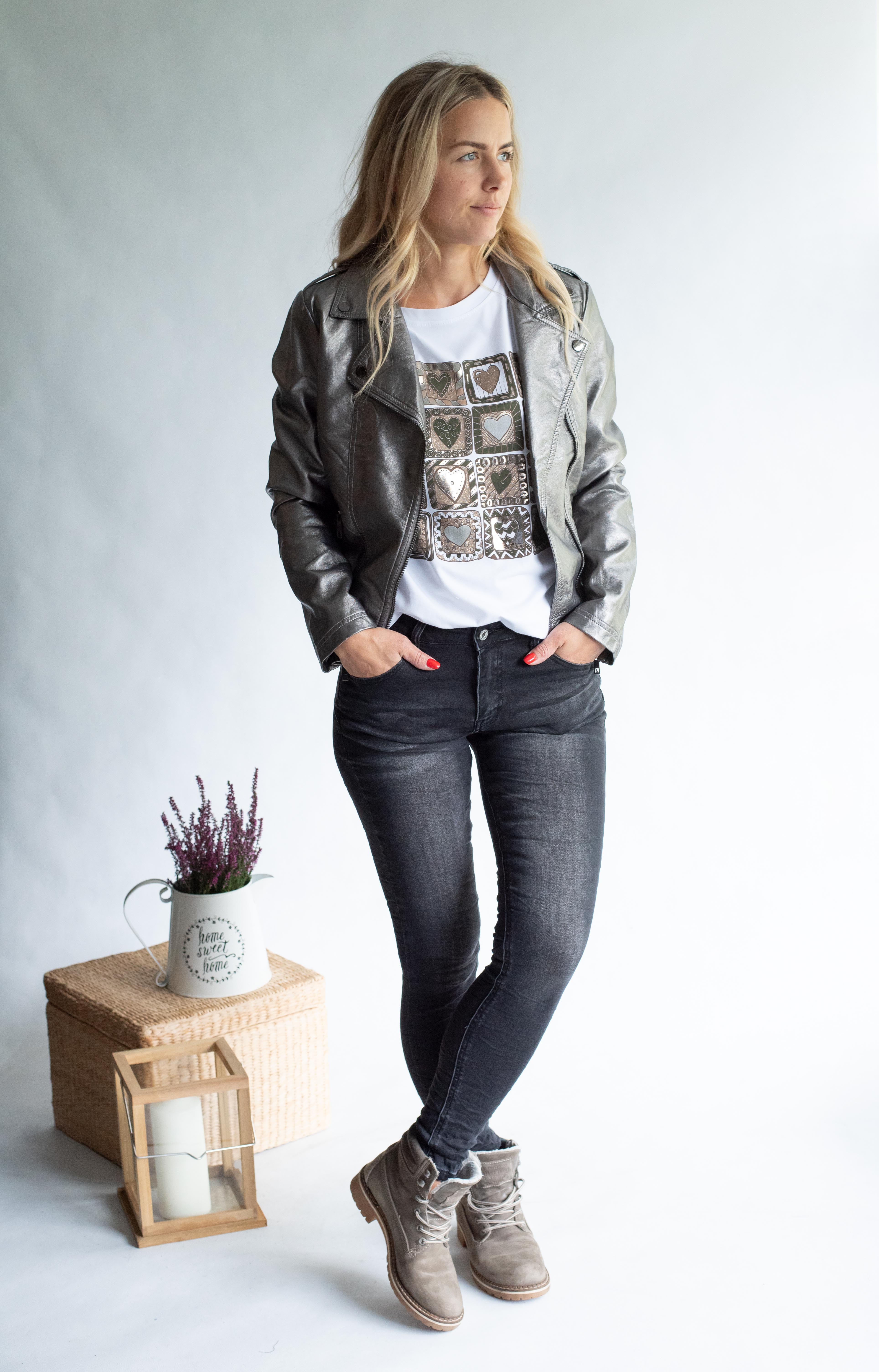 Módní koženková bunda se stojáčkem