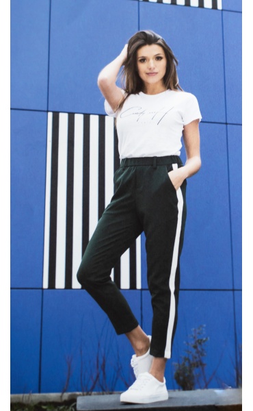 Kalhoty teplákového typu s kontrastním bočním pruhem