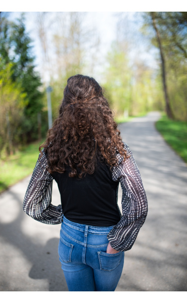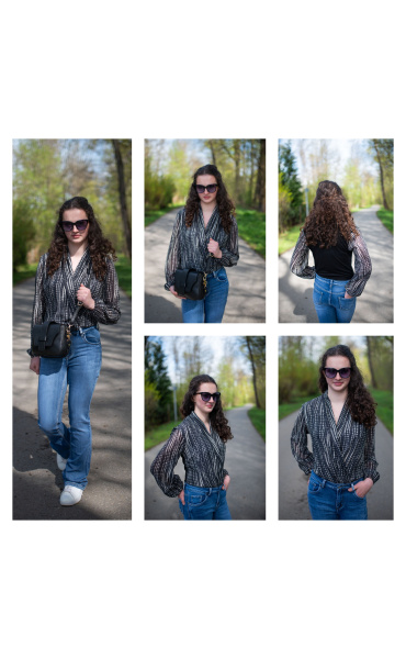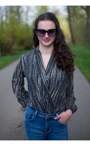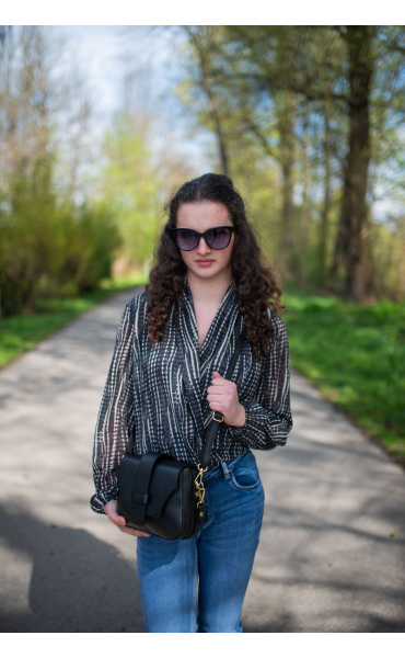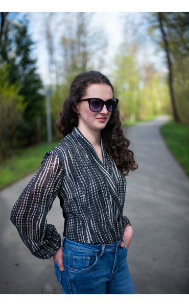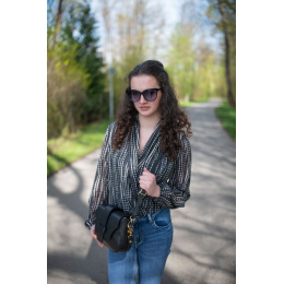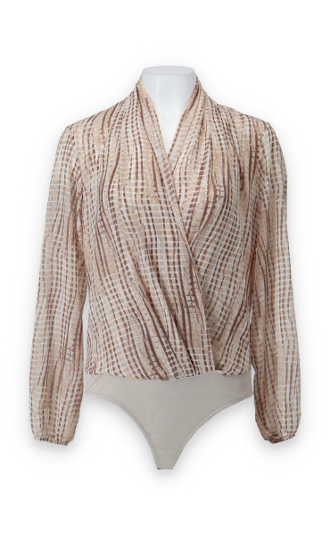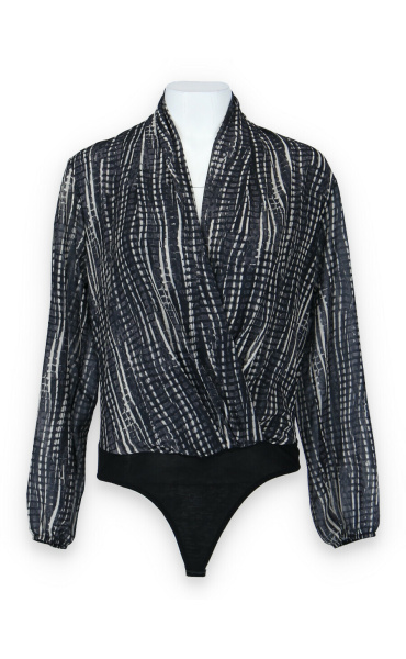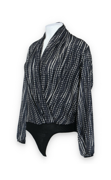 Dámské elegantní body s překladem v přední části. Dlouhý rukáv zakončený do gumy.