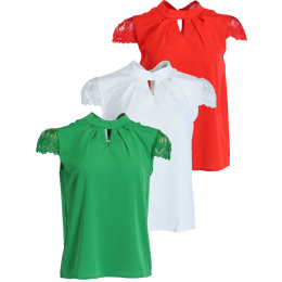 Dámská elegantní halenka s krátkým rukávem ,příjemný a vzdušný materiál, od francouzské značky Chic et Jeune Dovezeno z Francie . Velikosti a rozměry: 36,38,40,42,44,. Složení materiálu: bavlna 52% ,elastan 8% ,polyester 40% .