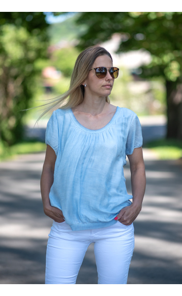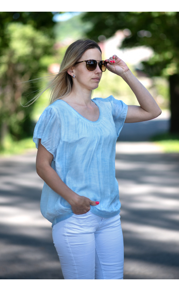 Halenka hedvábí, krátký rukáv kulatý výstřih, velice oblíbený model.