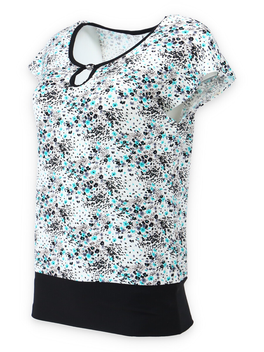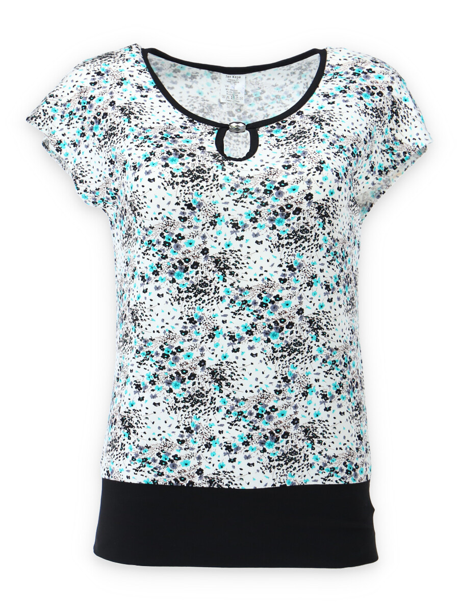 Vzorovaná halenka českého výrobce Kepa style s krátkým rukávem a elegantní aplikací ve výstřihu.