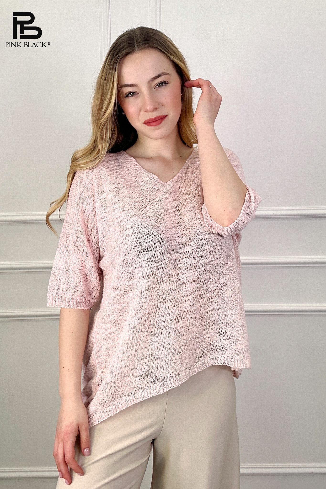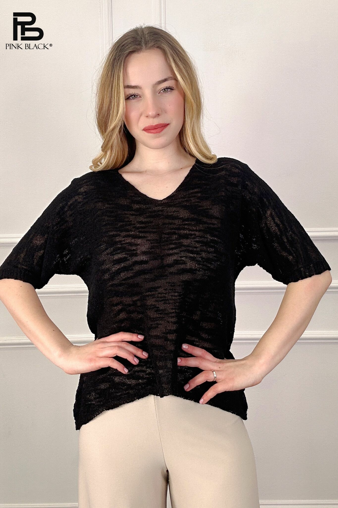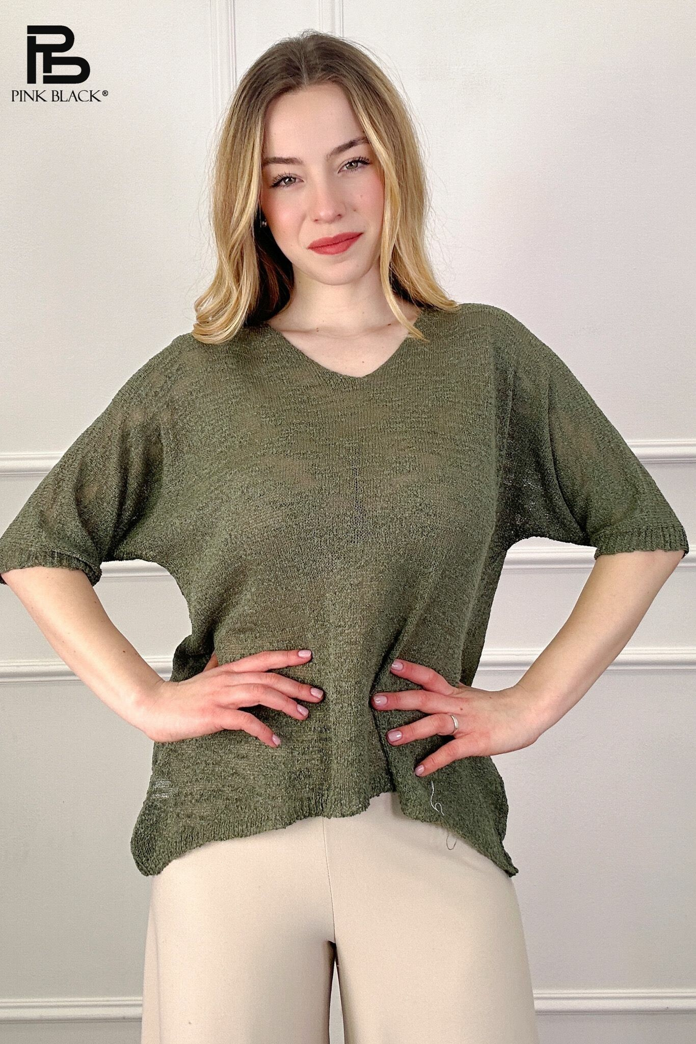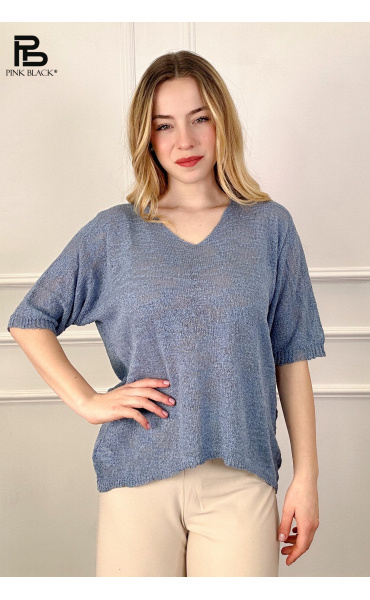 Halenka s krátkým rukávem a výstřihem do V. Jednoduchá halenka z příjemného lehkého materiálu a volnějšího střihu.