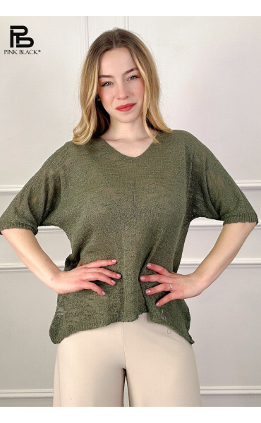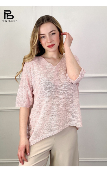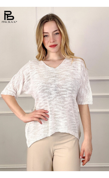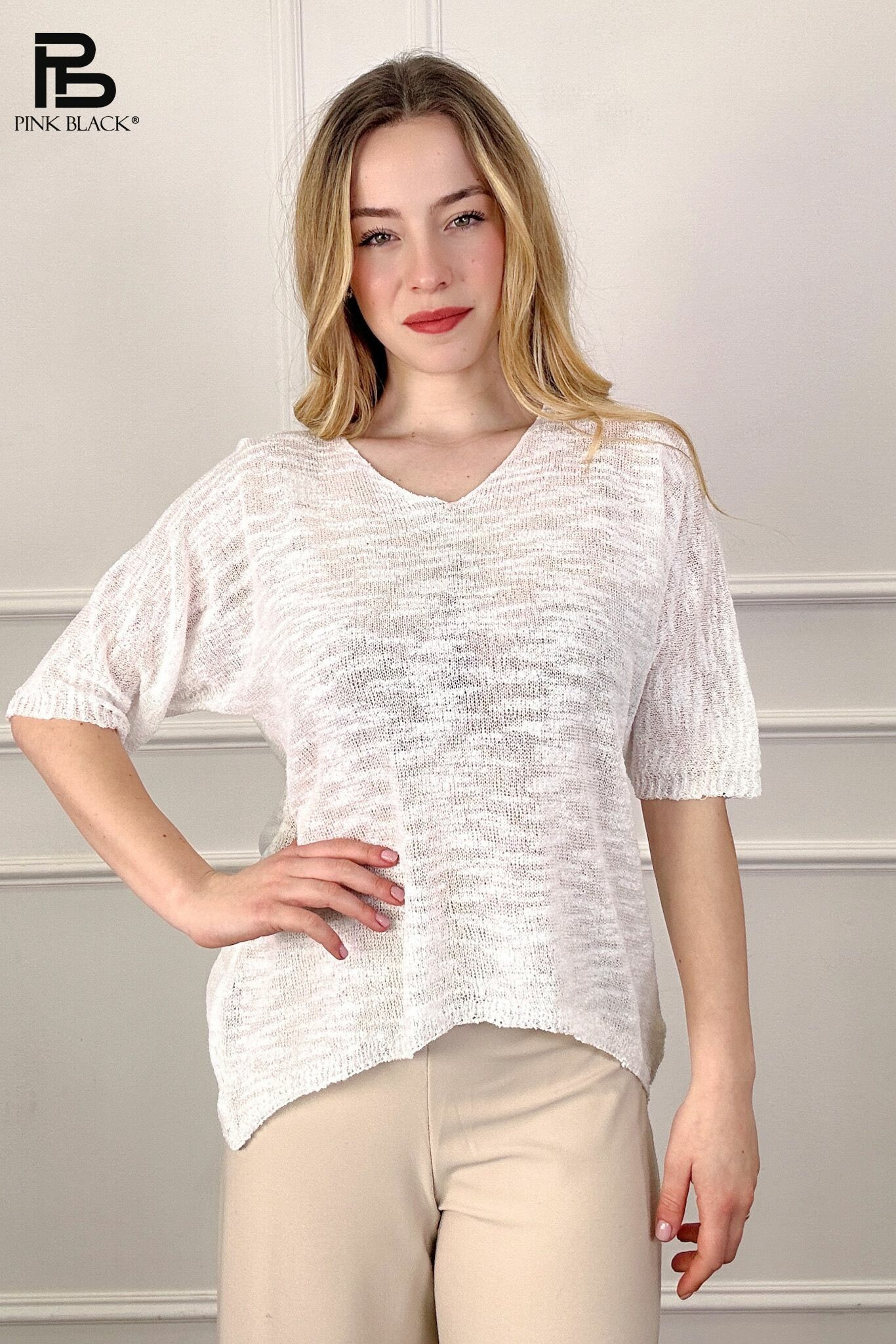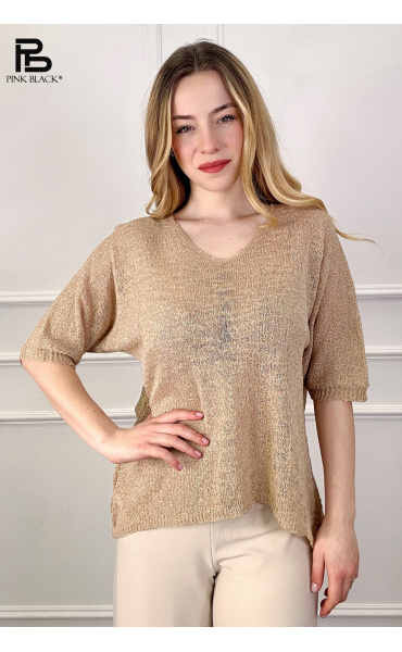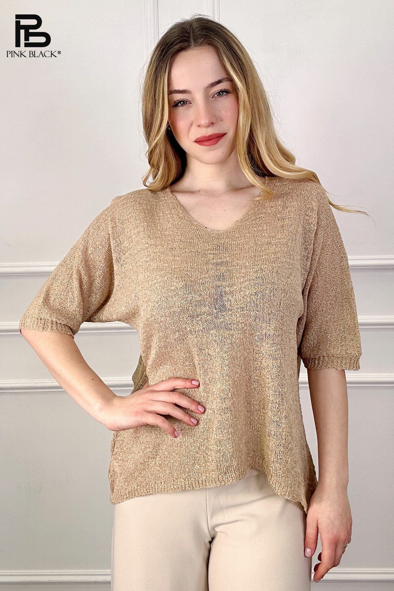 Halenka s krátkým rukávem a výstřihem do V. Jednoduchá halenka z příjemného lehkého materiálu a volnějšího střihu.