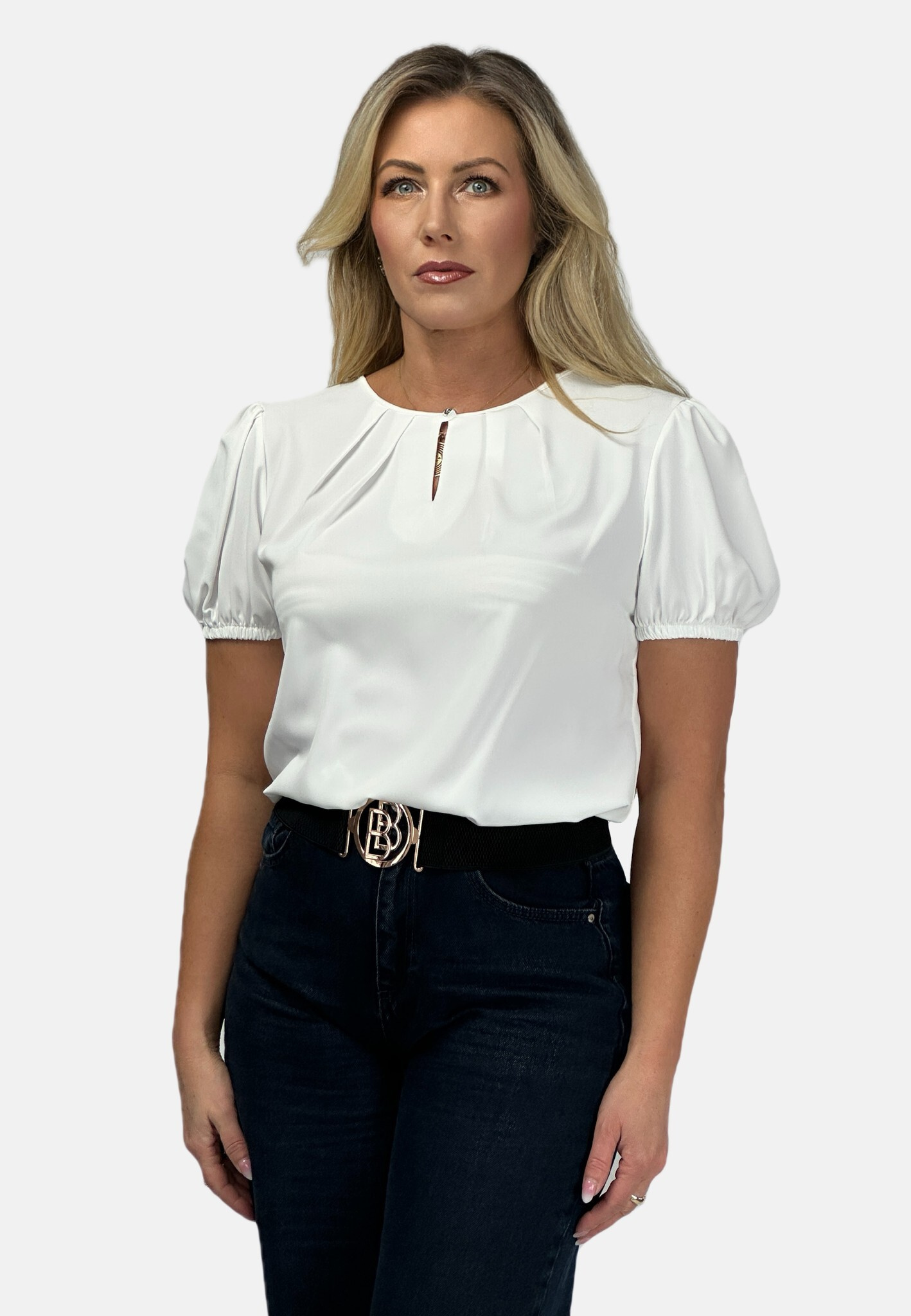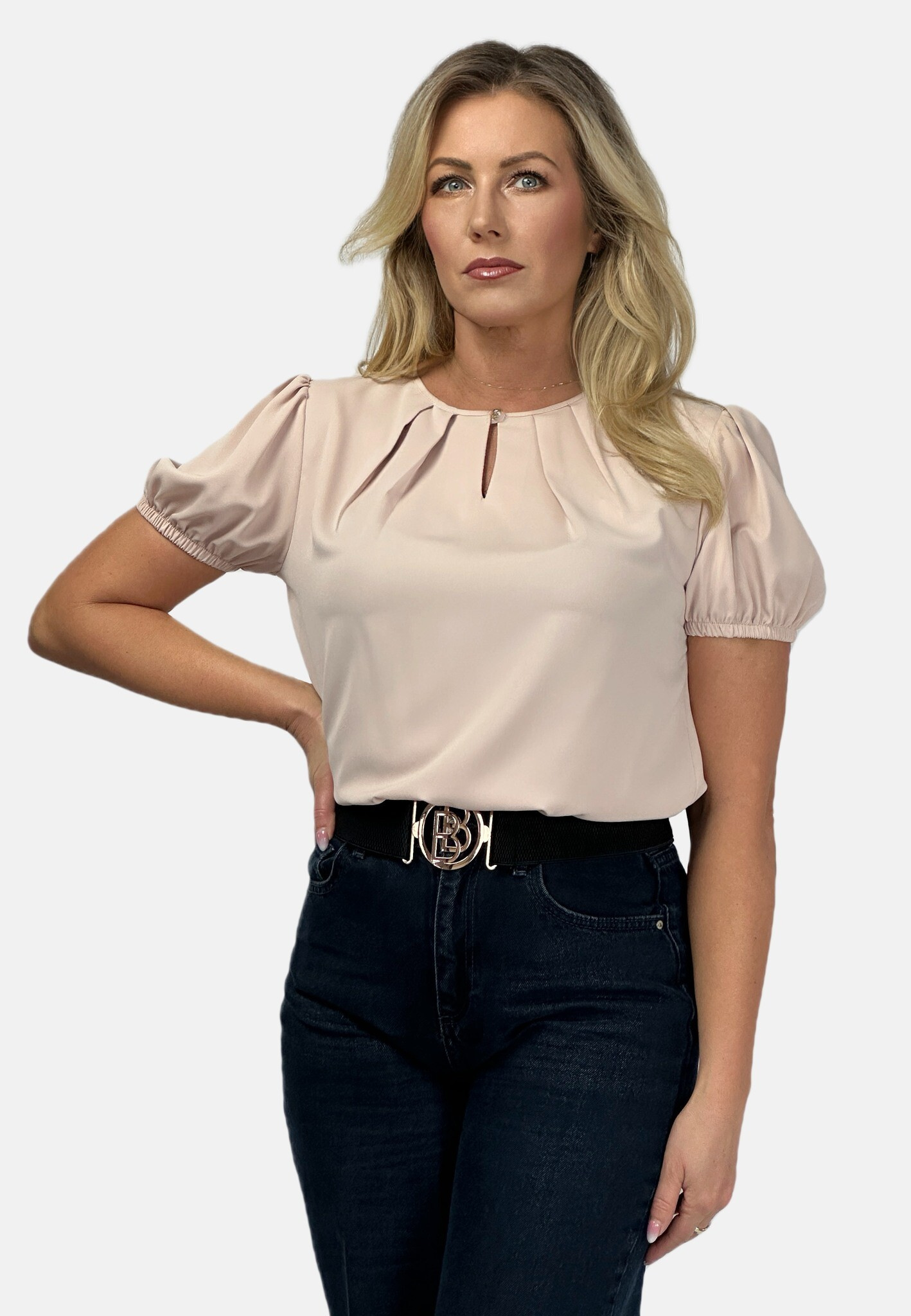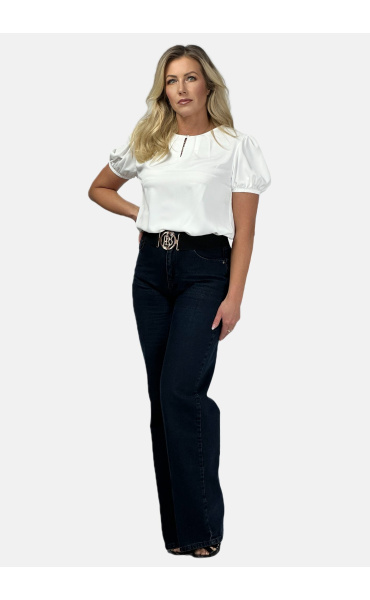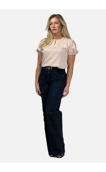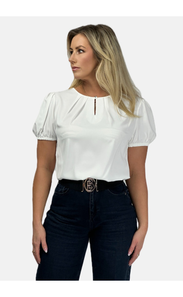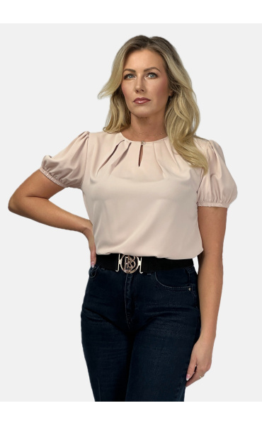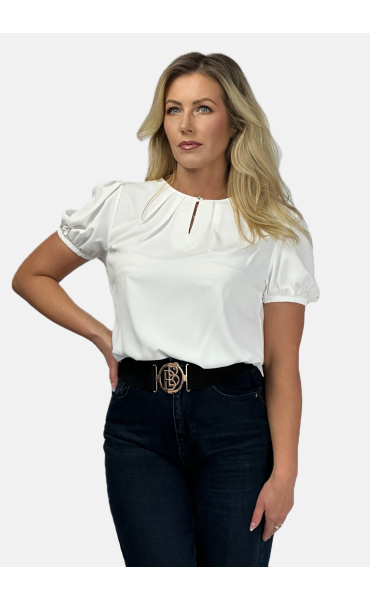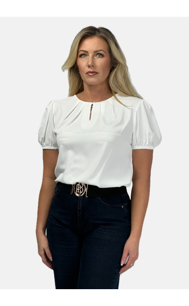 Halenka s krátkým rukávem ozdobný výstřih a ozdobným knoflíkem na zapínání vzadu