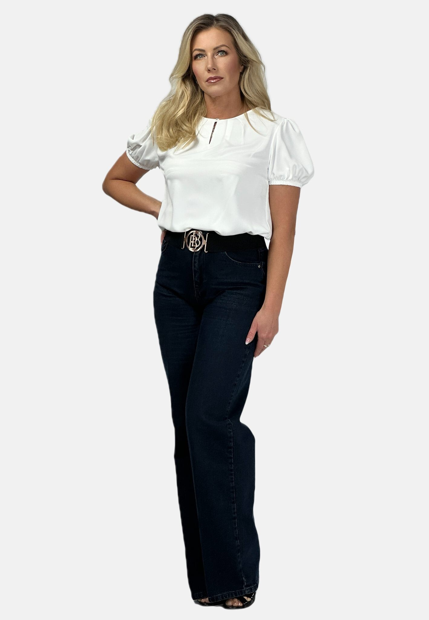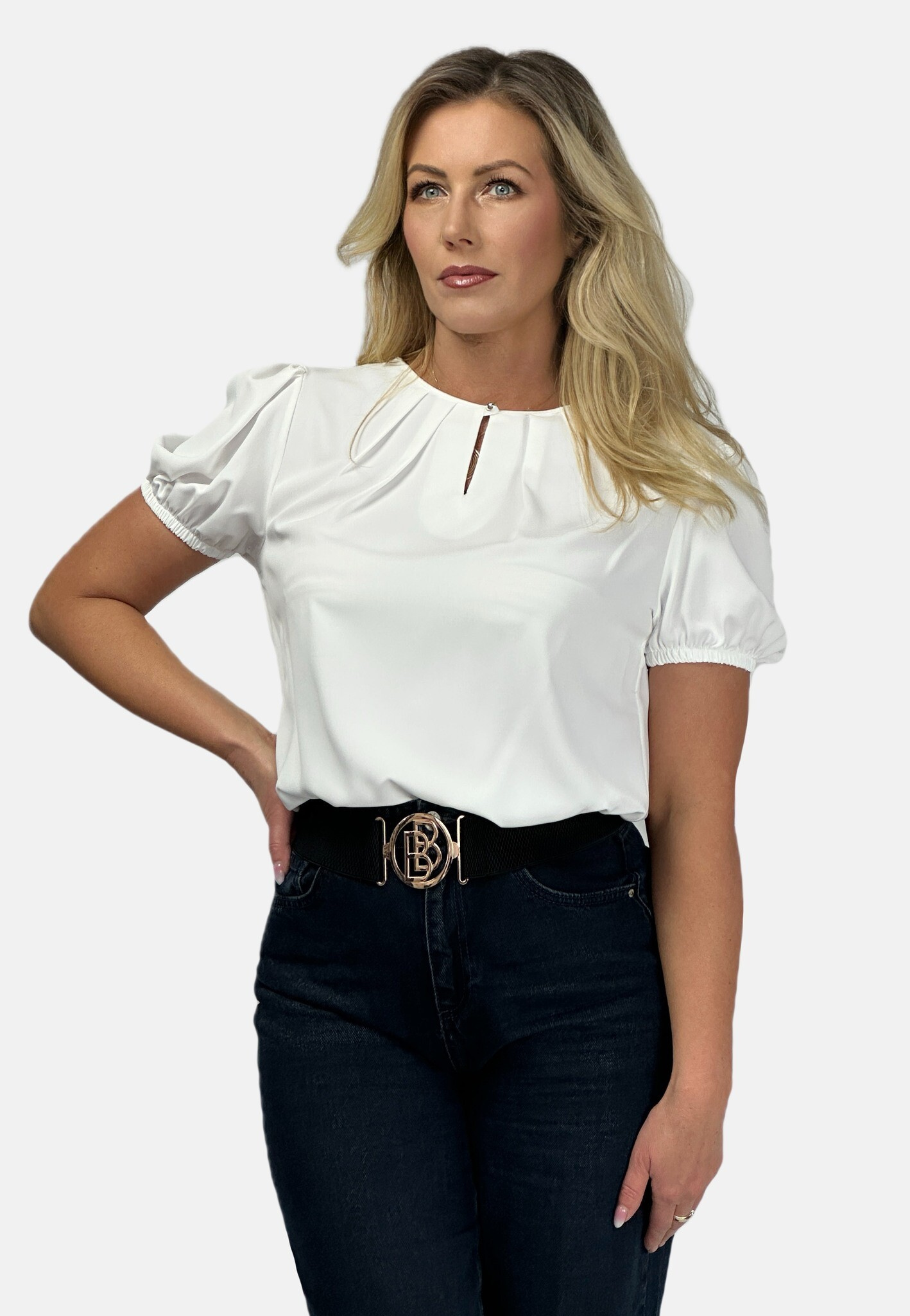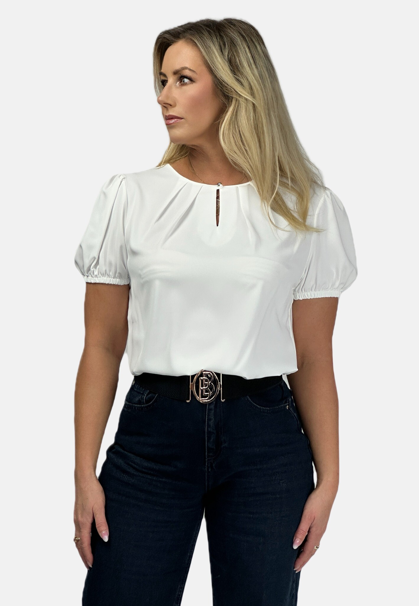 Halenka s krátkým rukávem ozdobný výstřih a ozdobným knoflíkem na zapínání vzadu