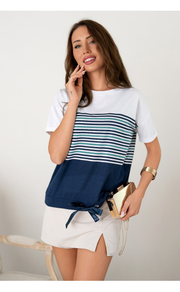 Elegantní a pohodlná halenka s krátkým rukávem z příjemné tkaniny s vázačkou v pase. Módní vzhled a pohodlí v blůze nejvyšší kvality.