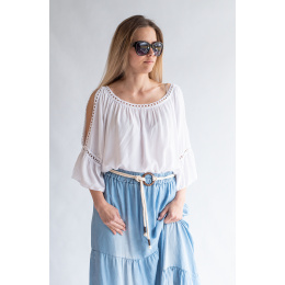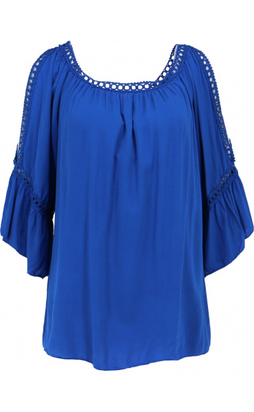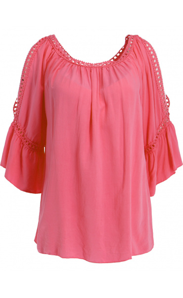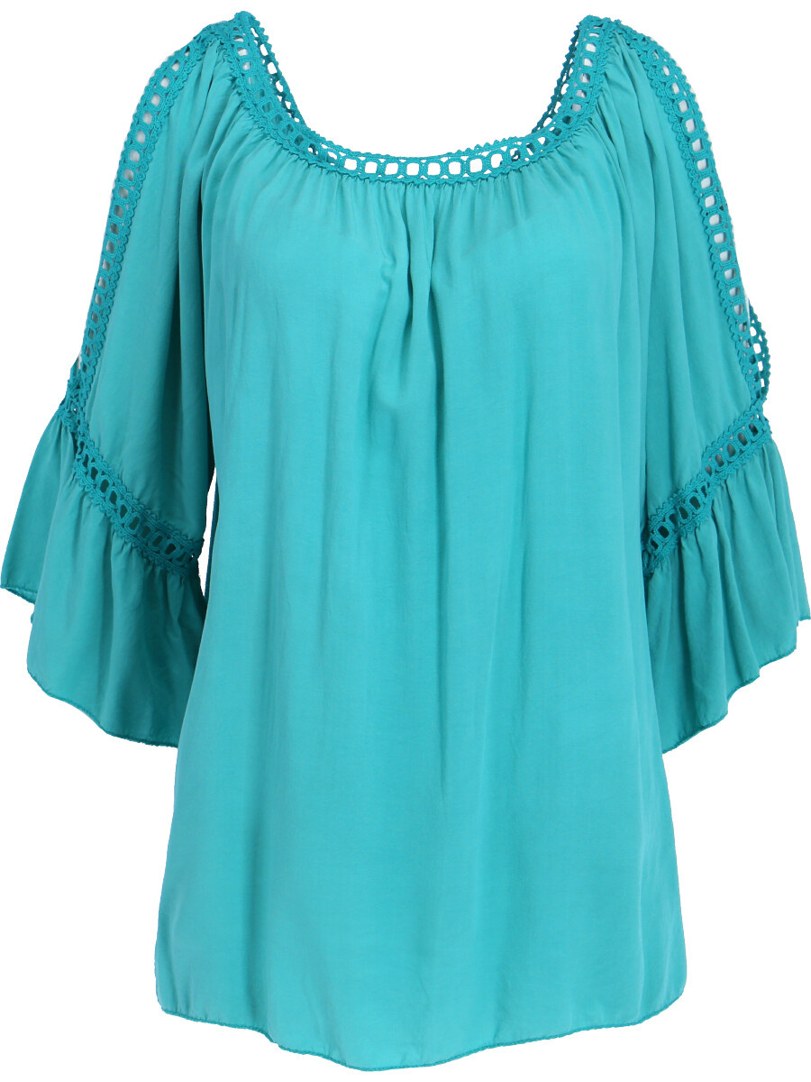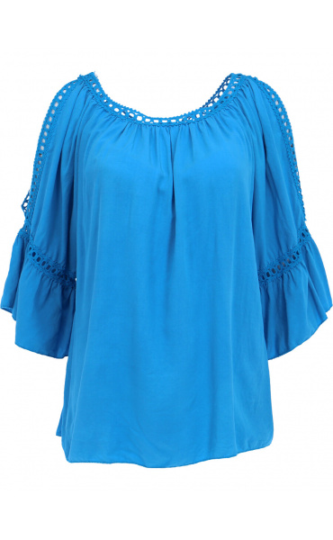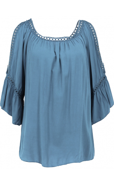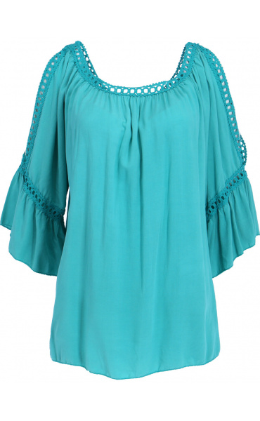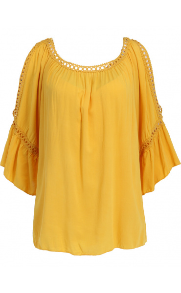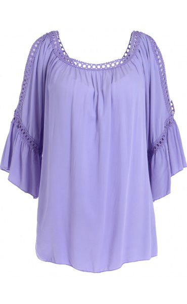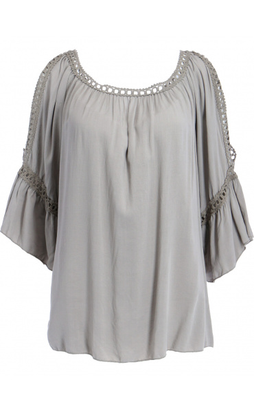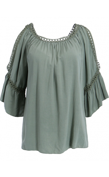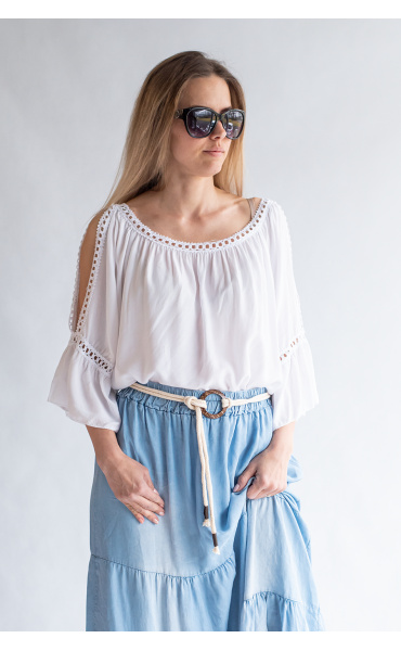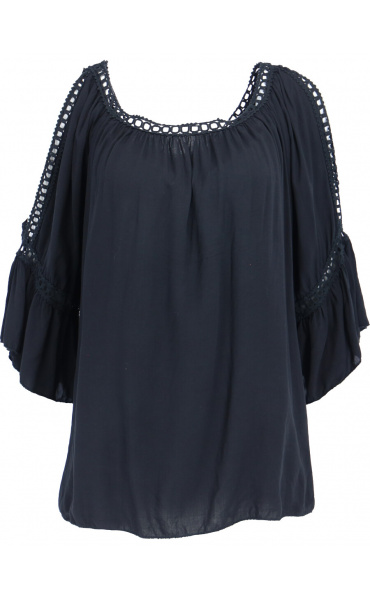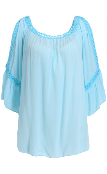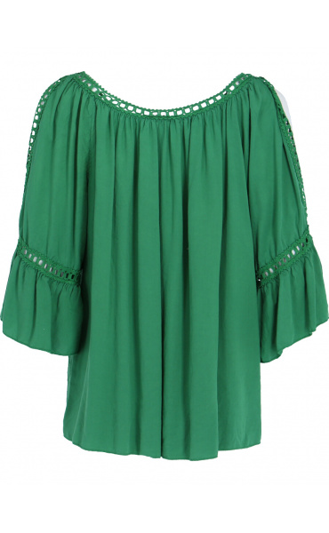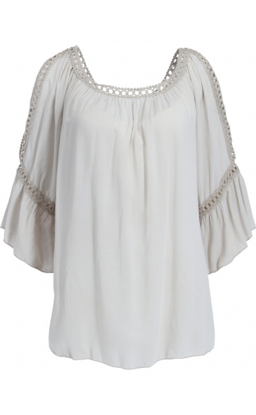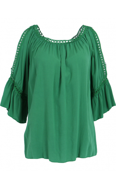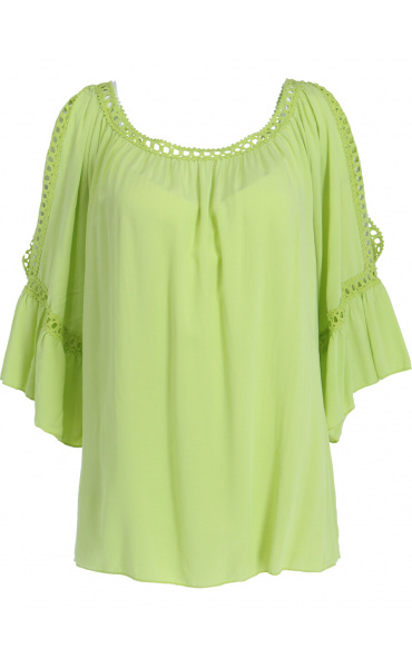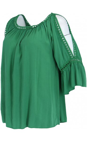 Módní halenka s krátkým rukávem, krajkou a prostřihem nad rukávem.