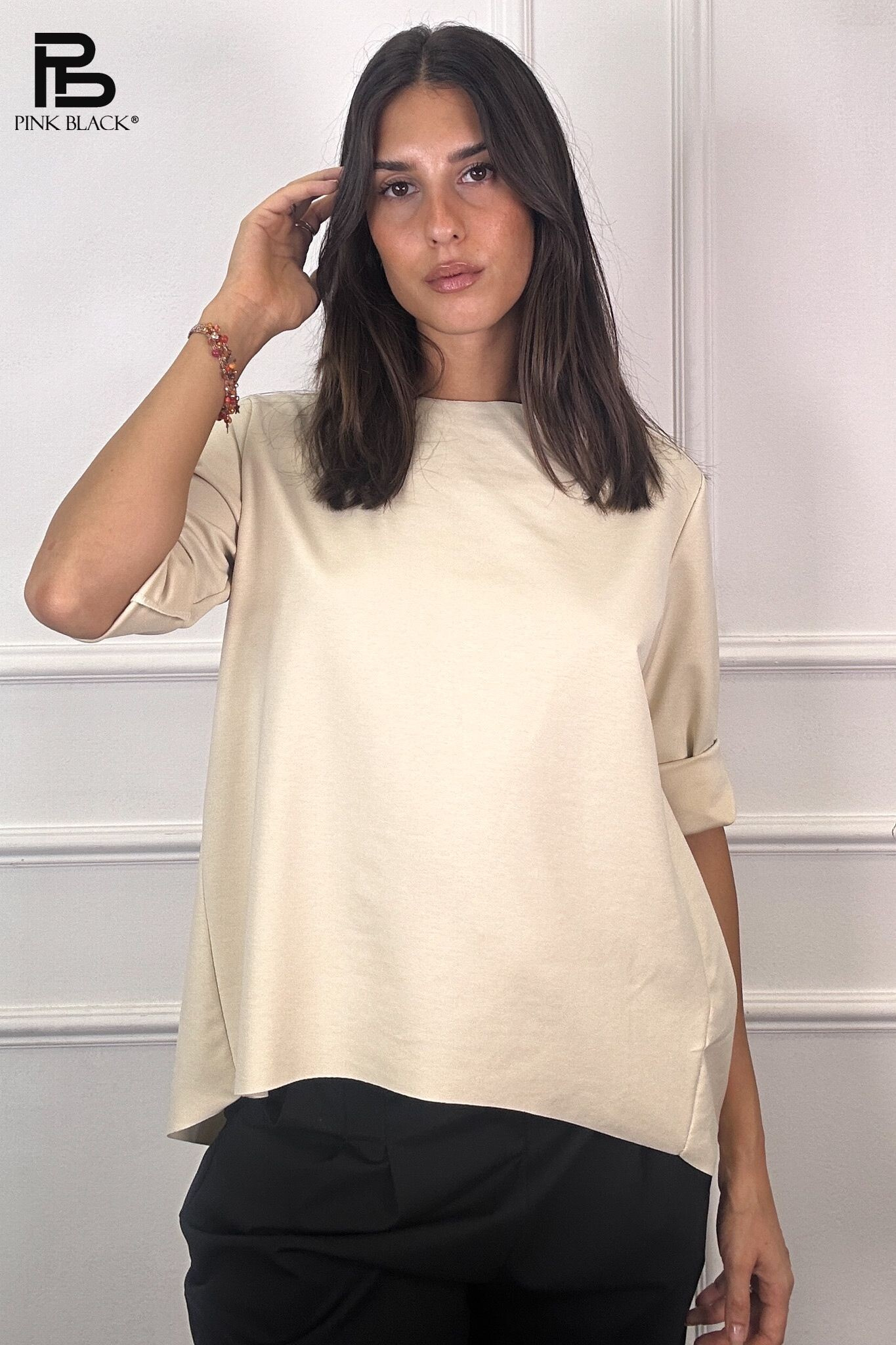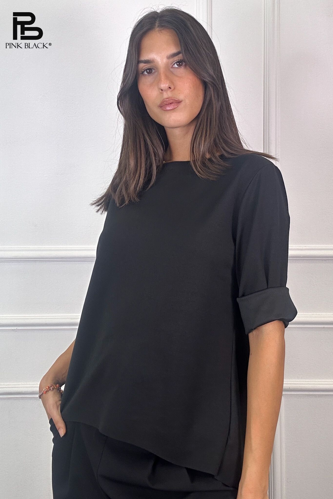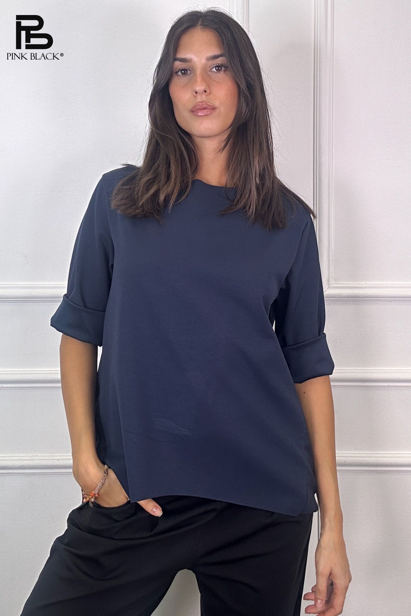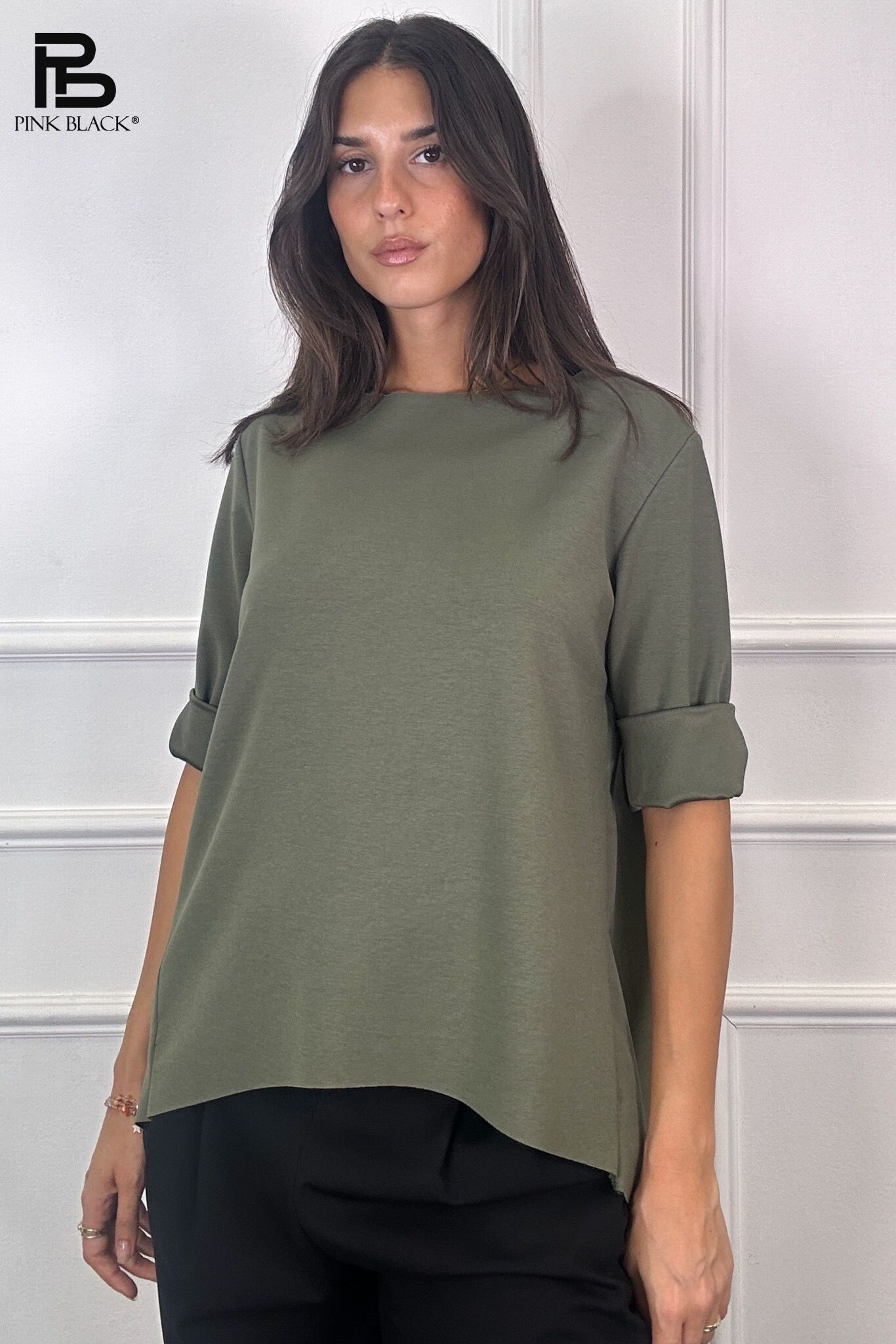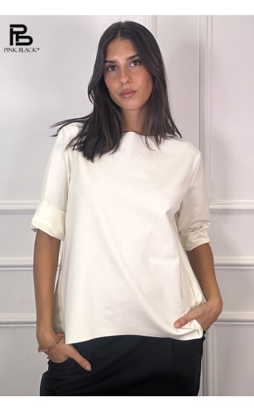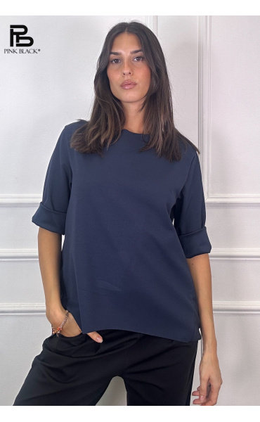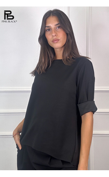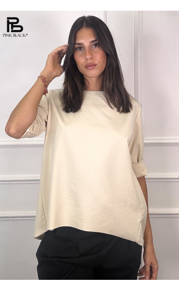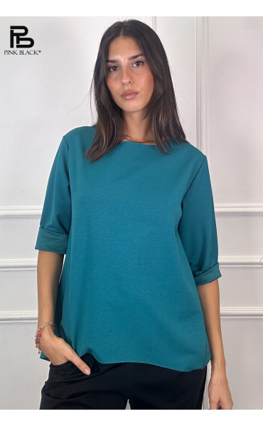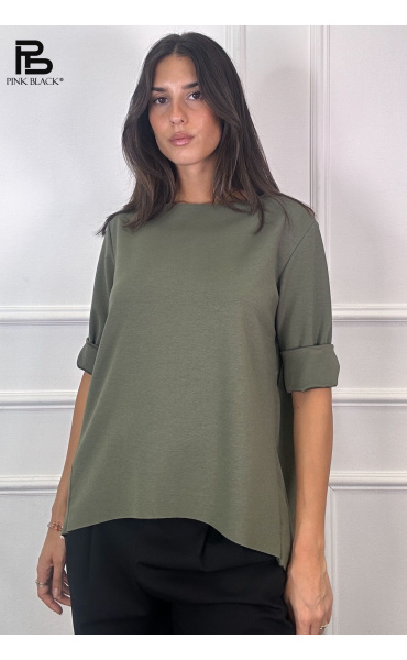 Basic halenka s prodlouženou zadní délkou. Halenka má kulatý výstřih a 3/4 rukáv. Velmi příjemný materiál. Dovoz z Itálie.