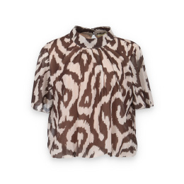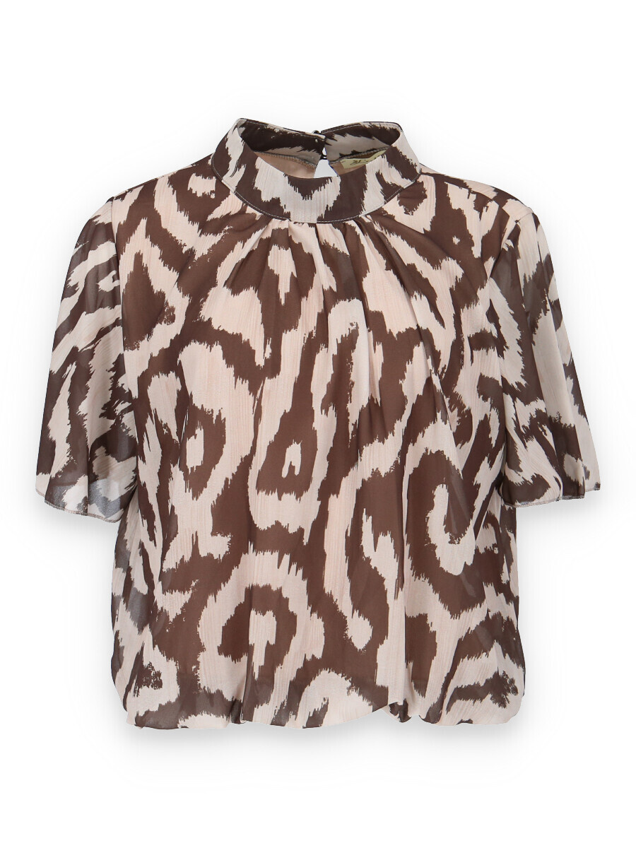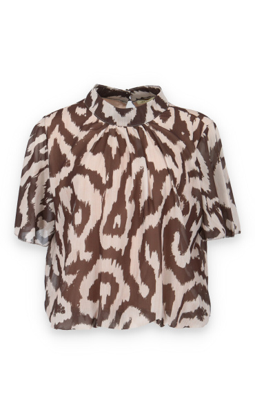 Dámská pohodlná halenka se spodním lemem, zapínání u krku.