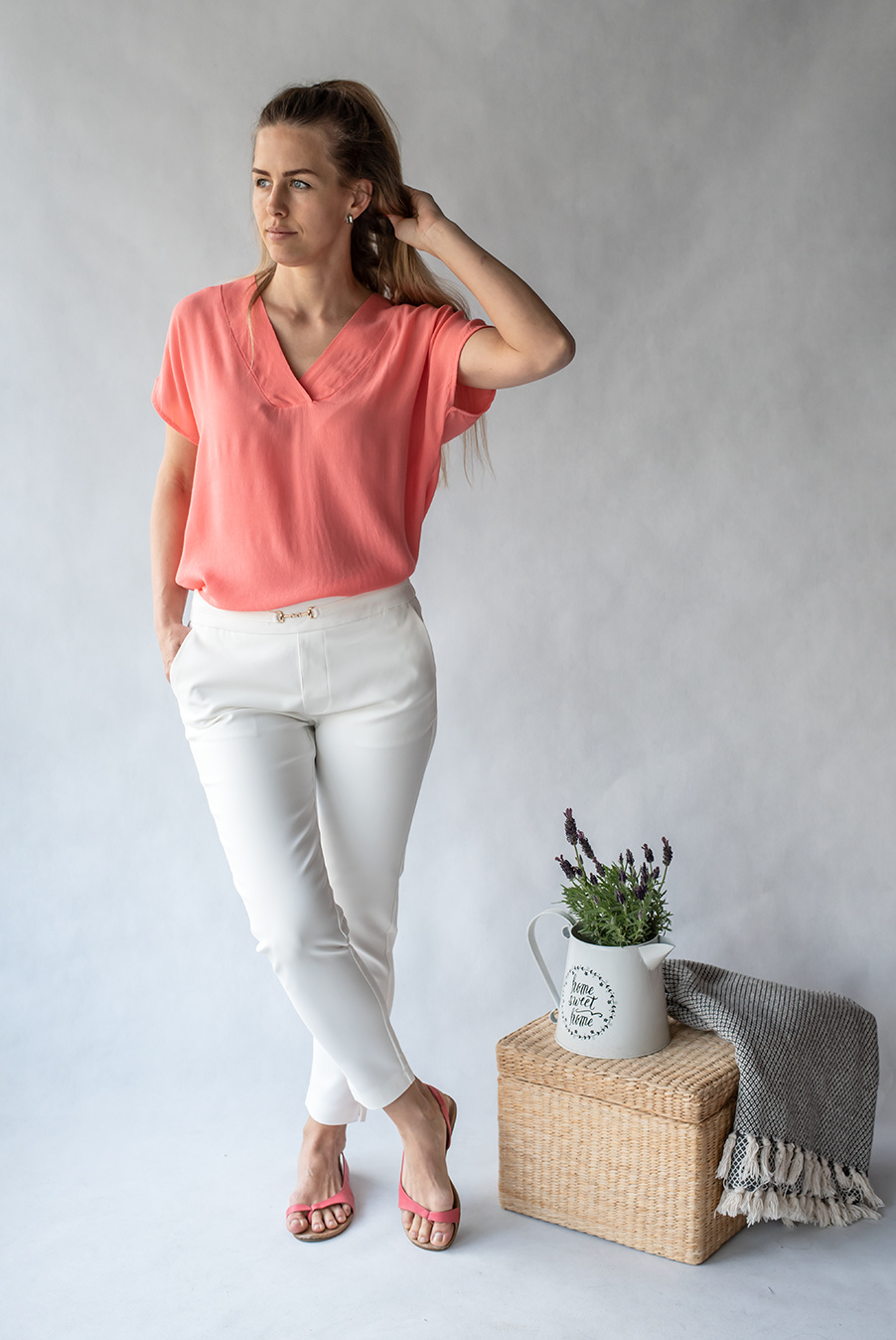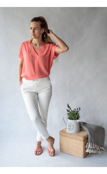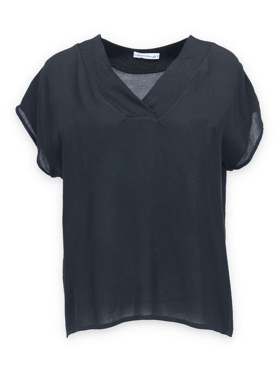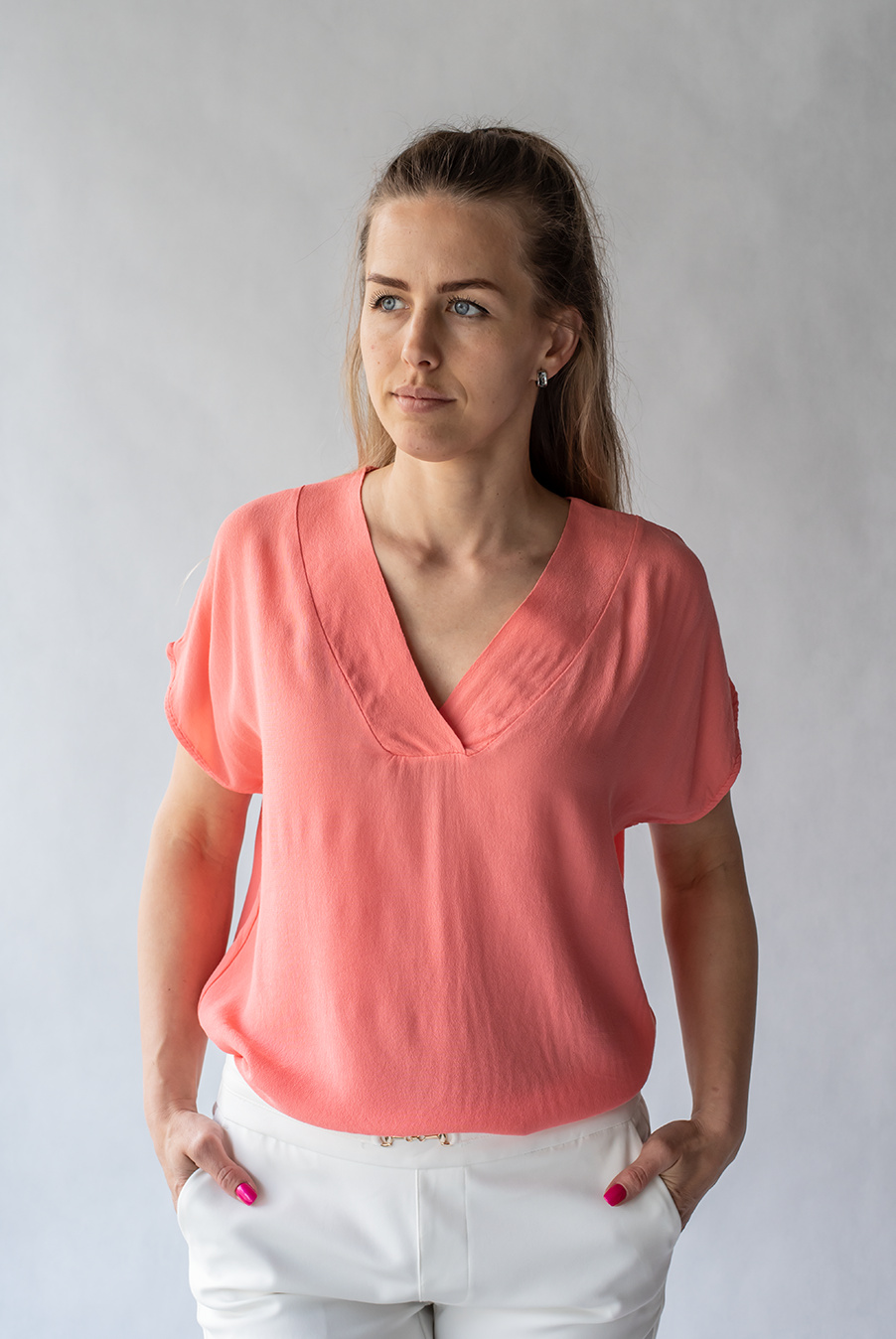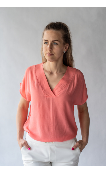 Halenka s krátkým rukávem a véčkovým výstřihem, pro každodenní pohodlné nošení.