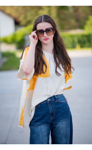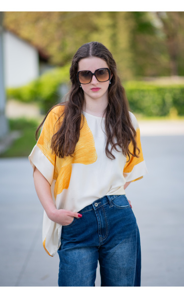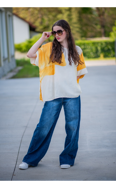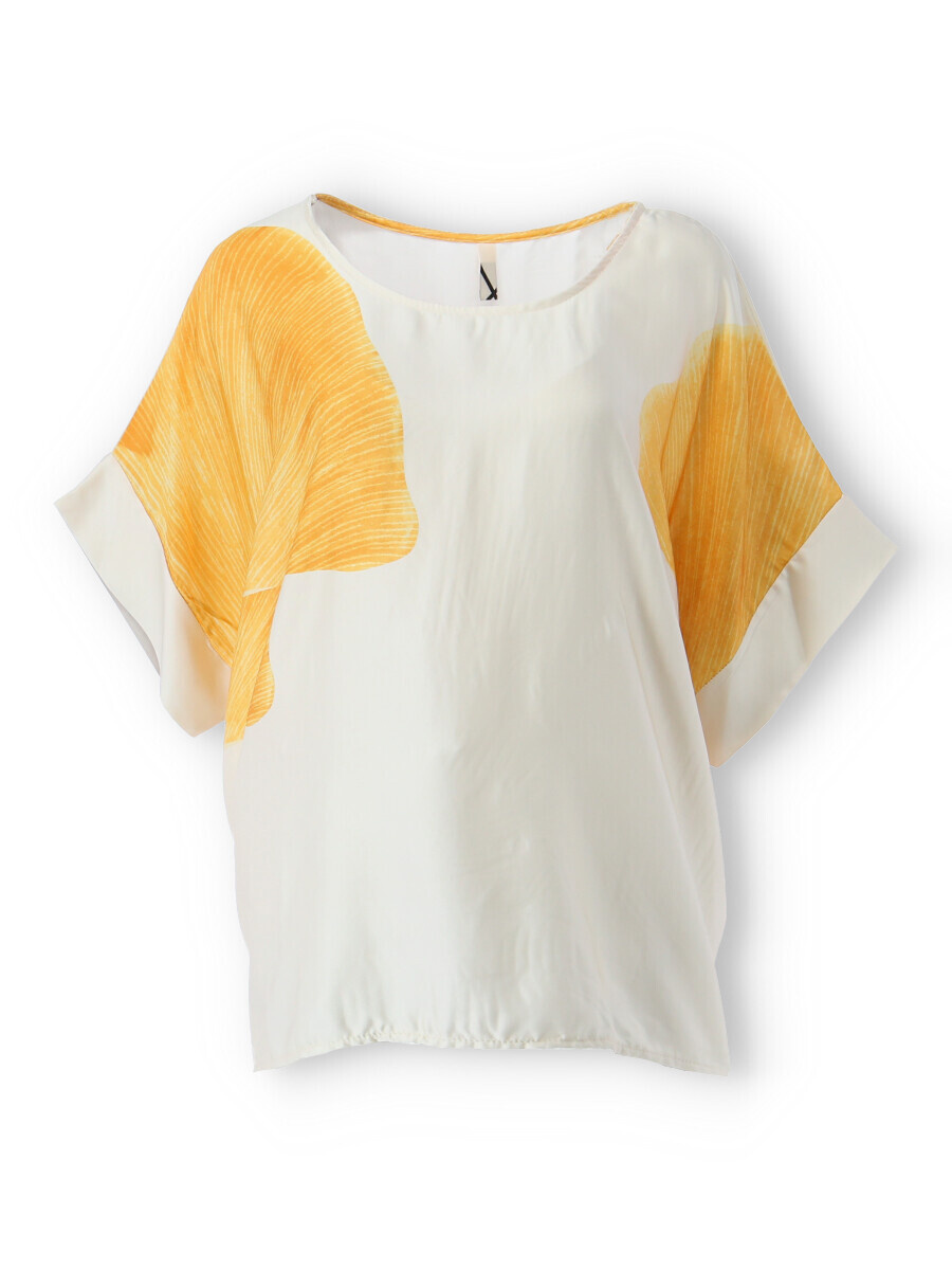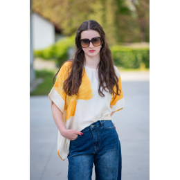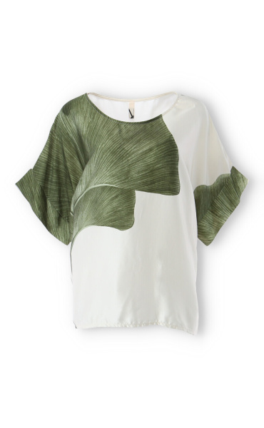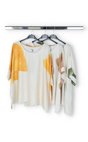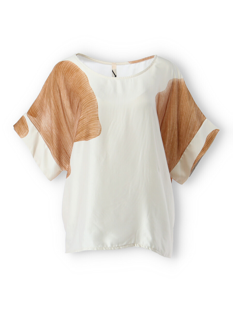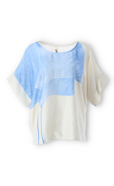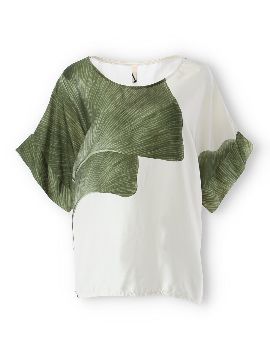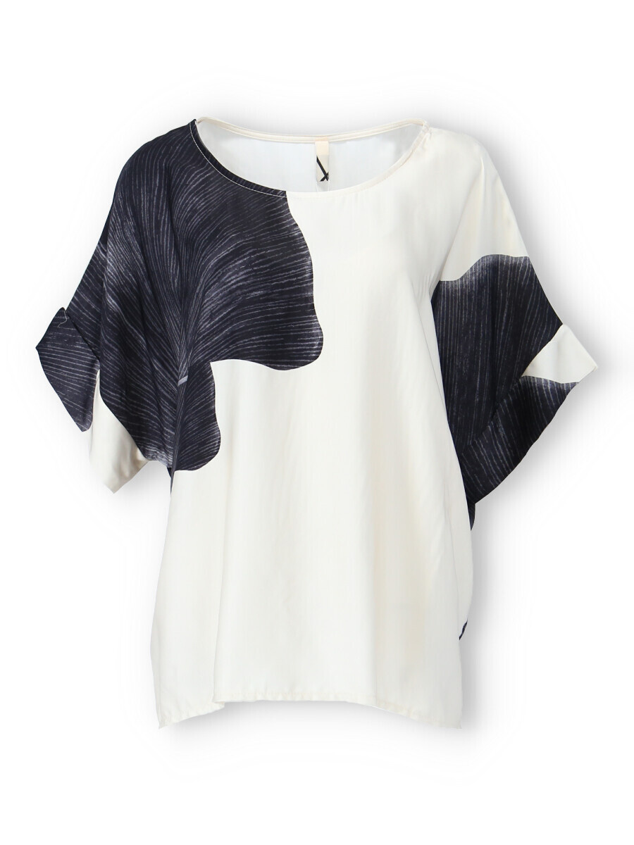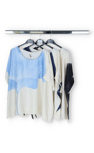 Dámská elegantní halenka/tunika oversize střihu. Halenka má krátký raglánový rukáv, kulatý výstřih a je z velmi jemného a příjemného materiálu. Dovoz Itálie