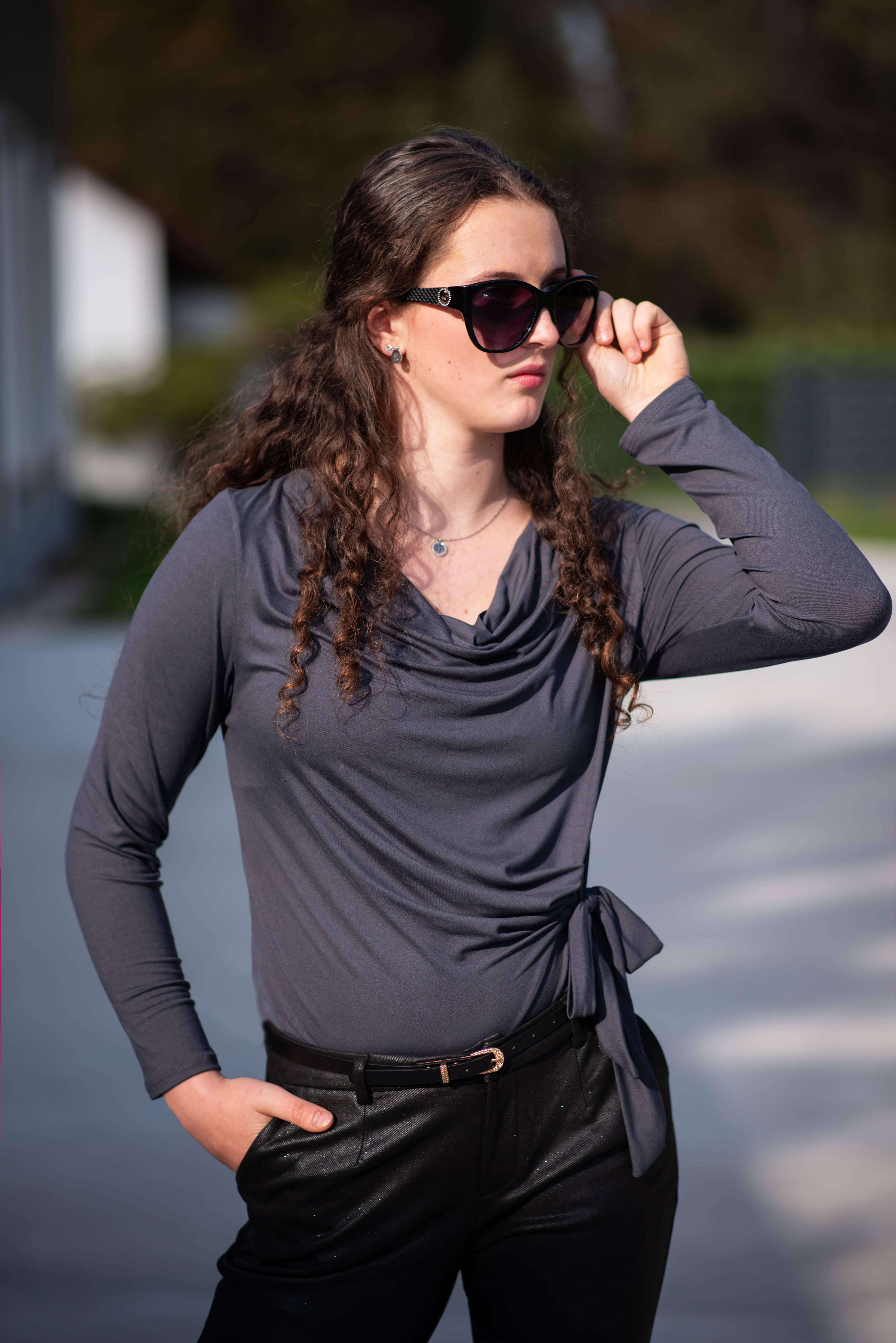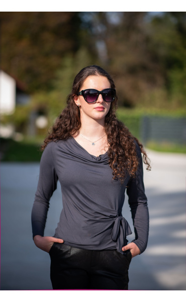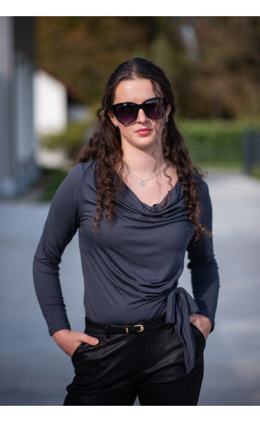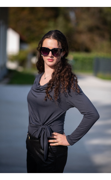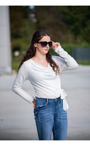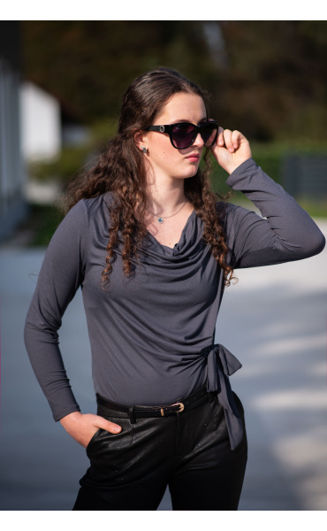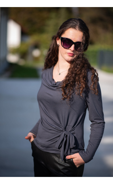 Halenka s dlouhým rukávem a vázáním v pase. Elegantní halenka z velmi příjemného materiálu.