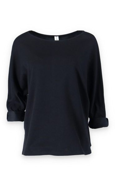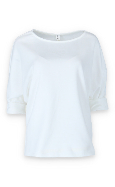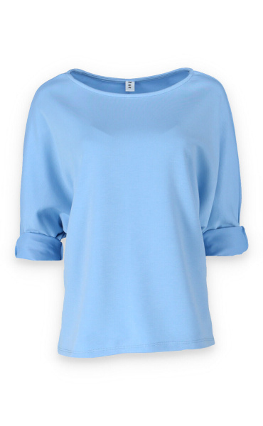 Halenka je volnějšího střihu a má kulatý výstřih.